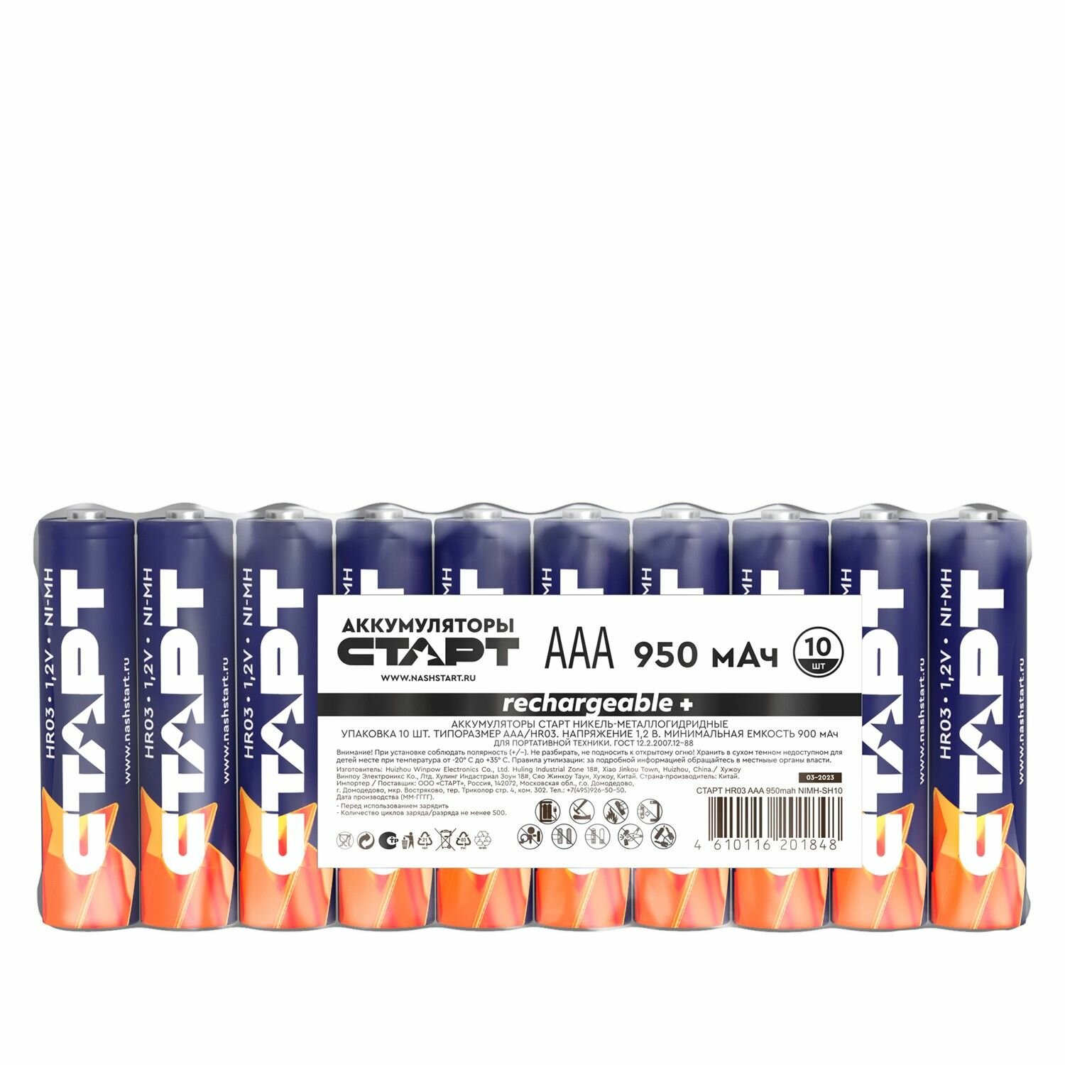 Аккумуляторные батарейки ААА СТАРТ, 1,2В, ёмкость 1100mAh, блистер 2 штуки