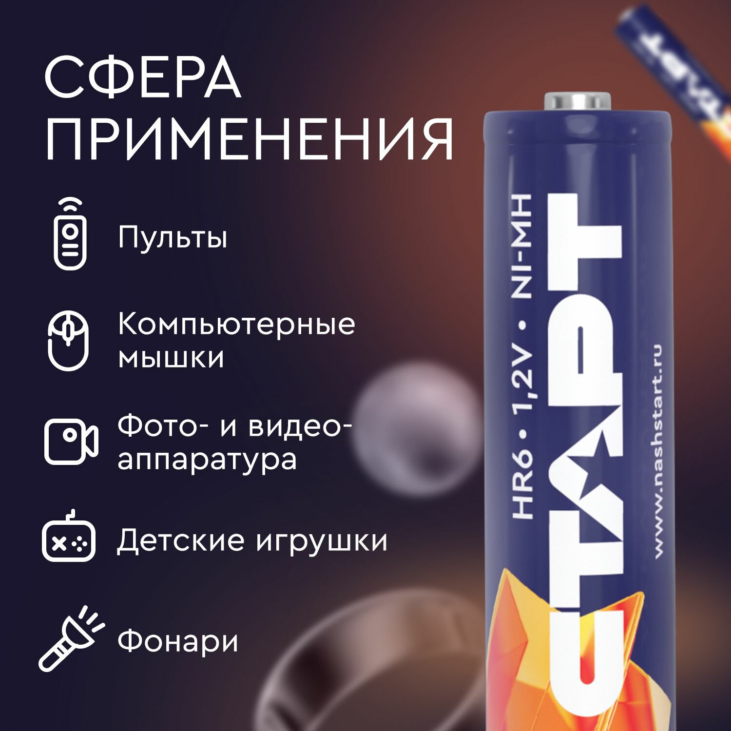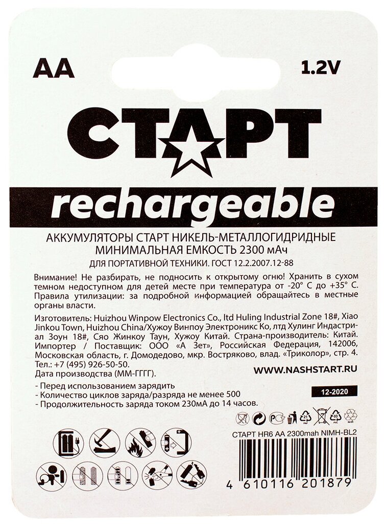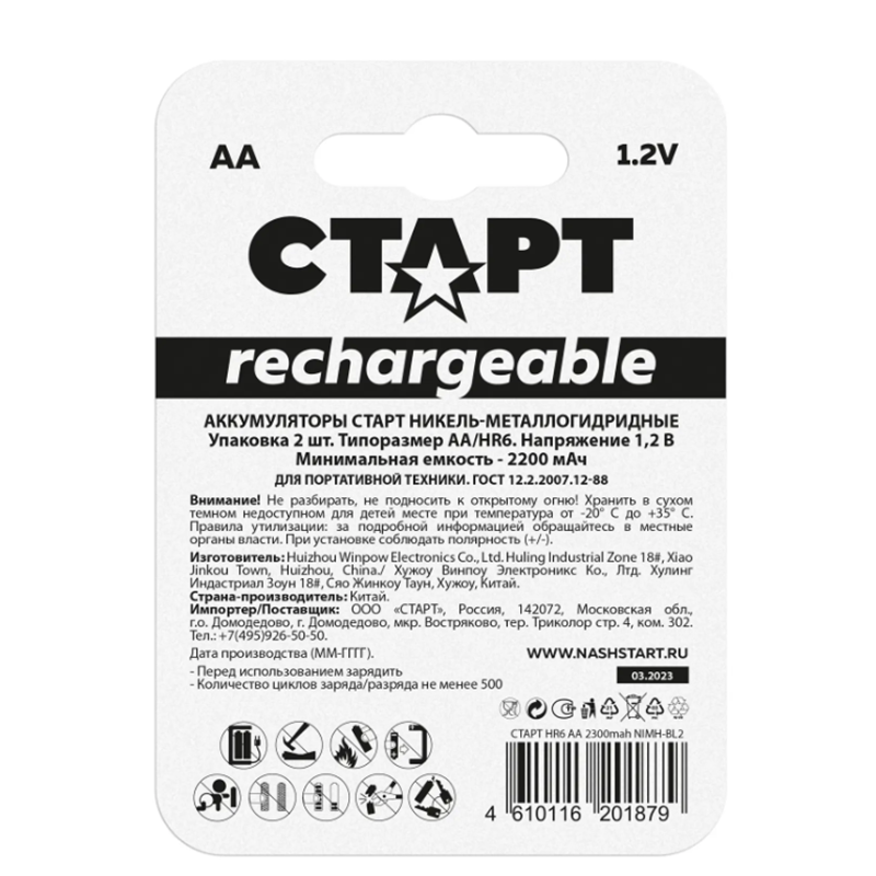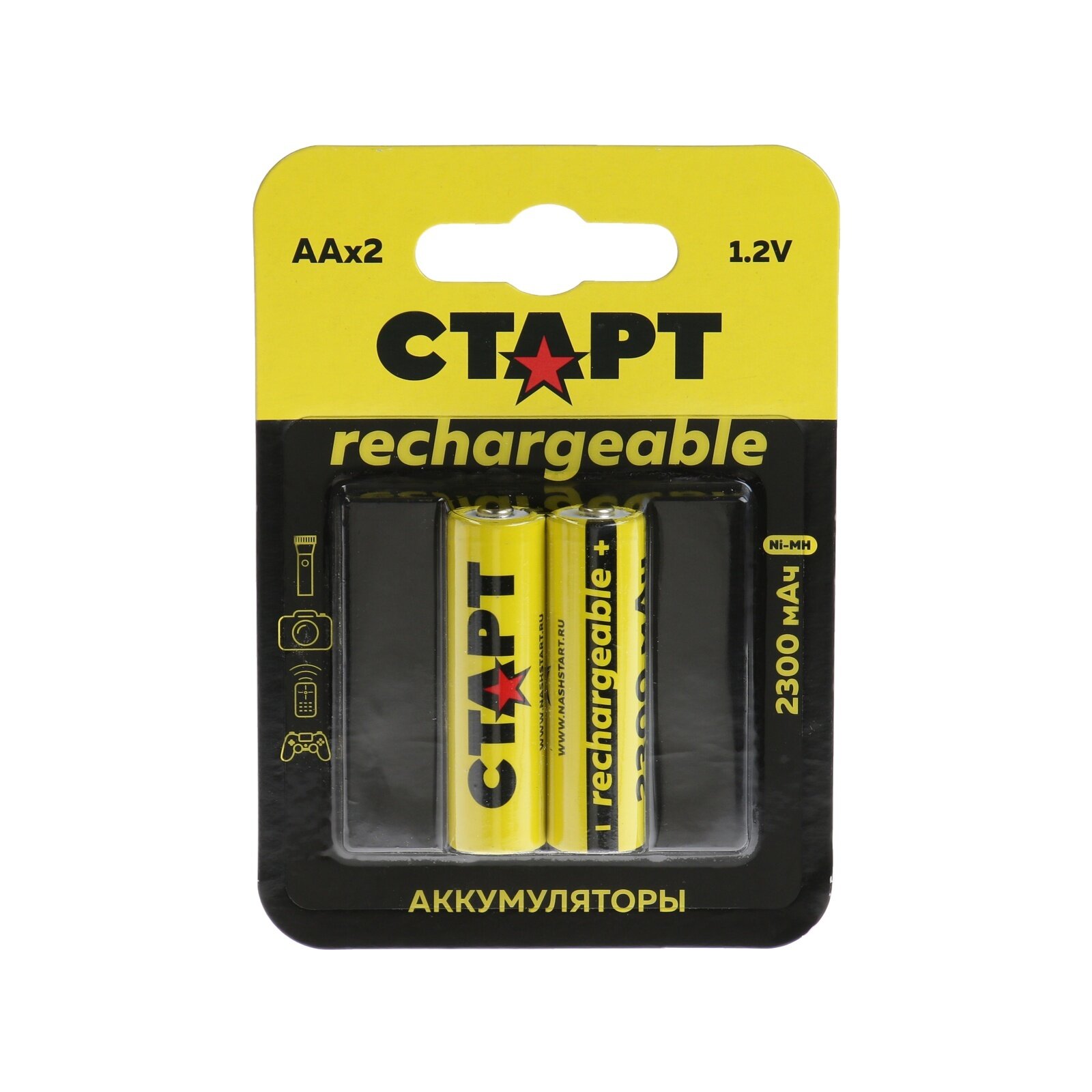 Аккумуляторные батарейки АА (HR6) СТАРТ, 1800 мАч, 1,2 В, 2 штуки