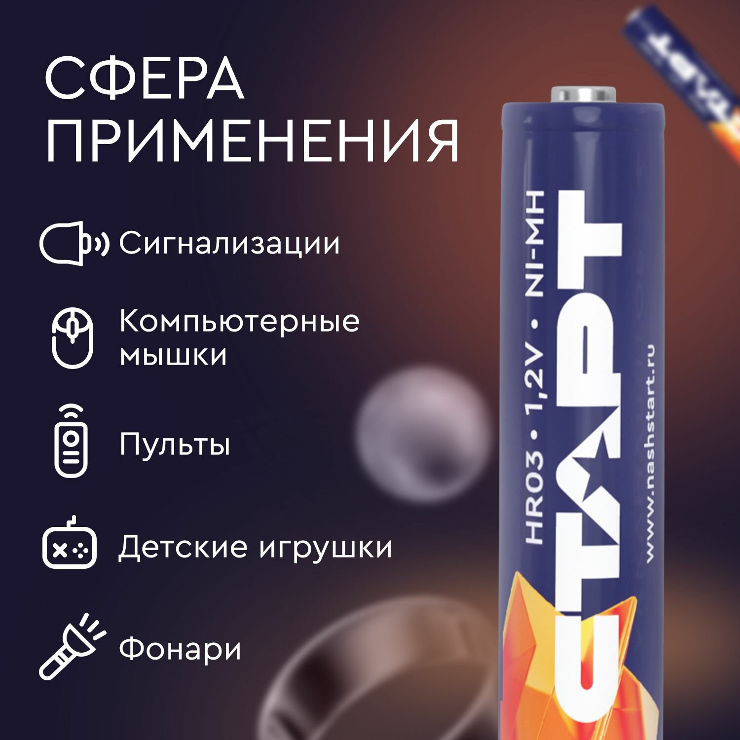 Аккумуляторные батарейки ААА СТАРТ, мизинчиковые аккумуляторы, 600 мАч, 2 штуки