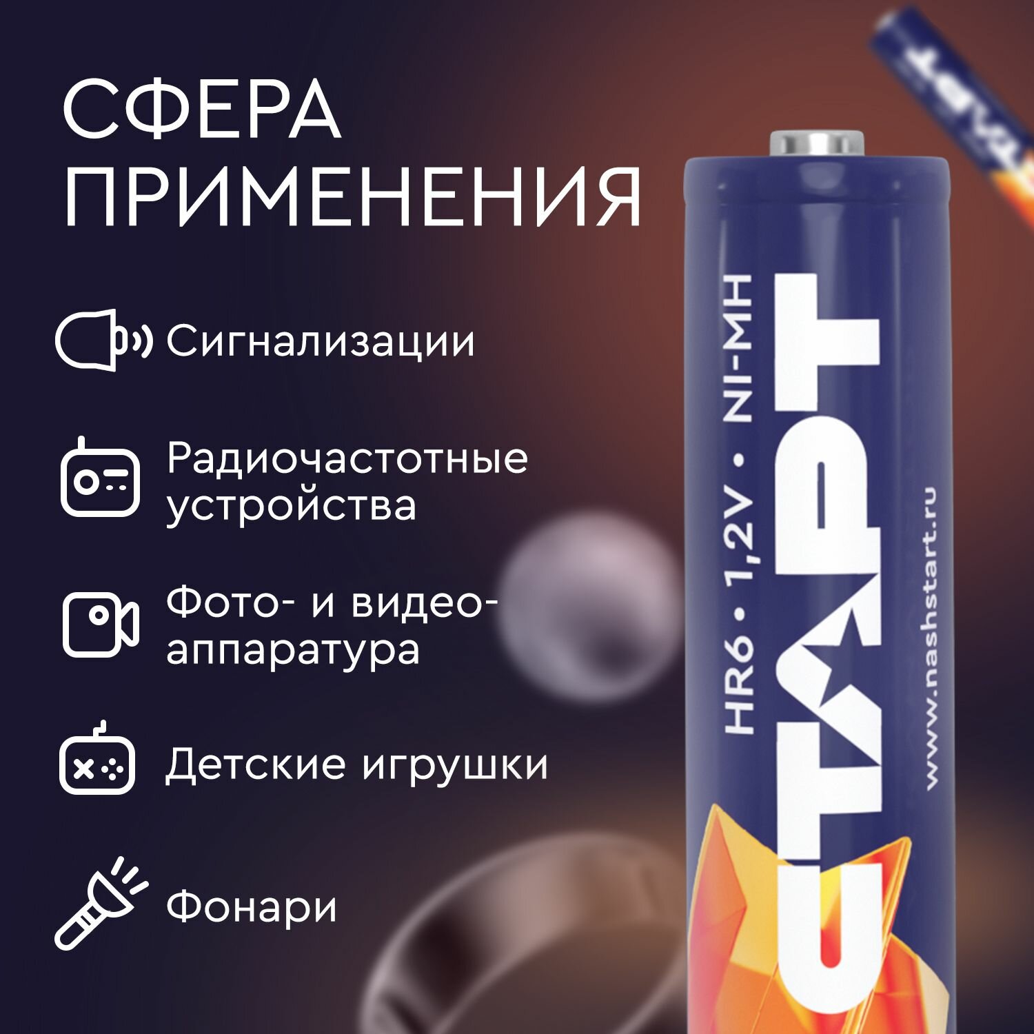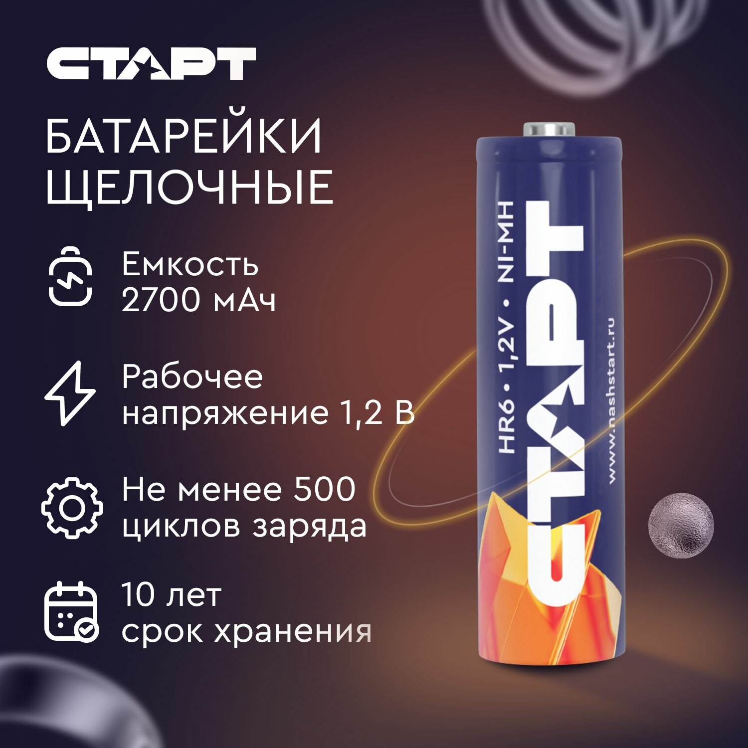 Аккумуляторные батарейки АА (HR6) СТАРТ, 1800 мАч, 1,2 В, 2 штуки