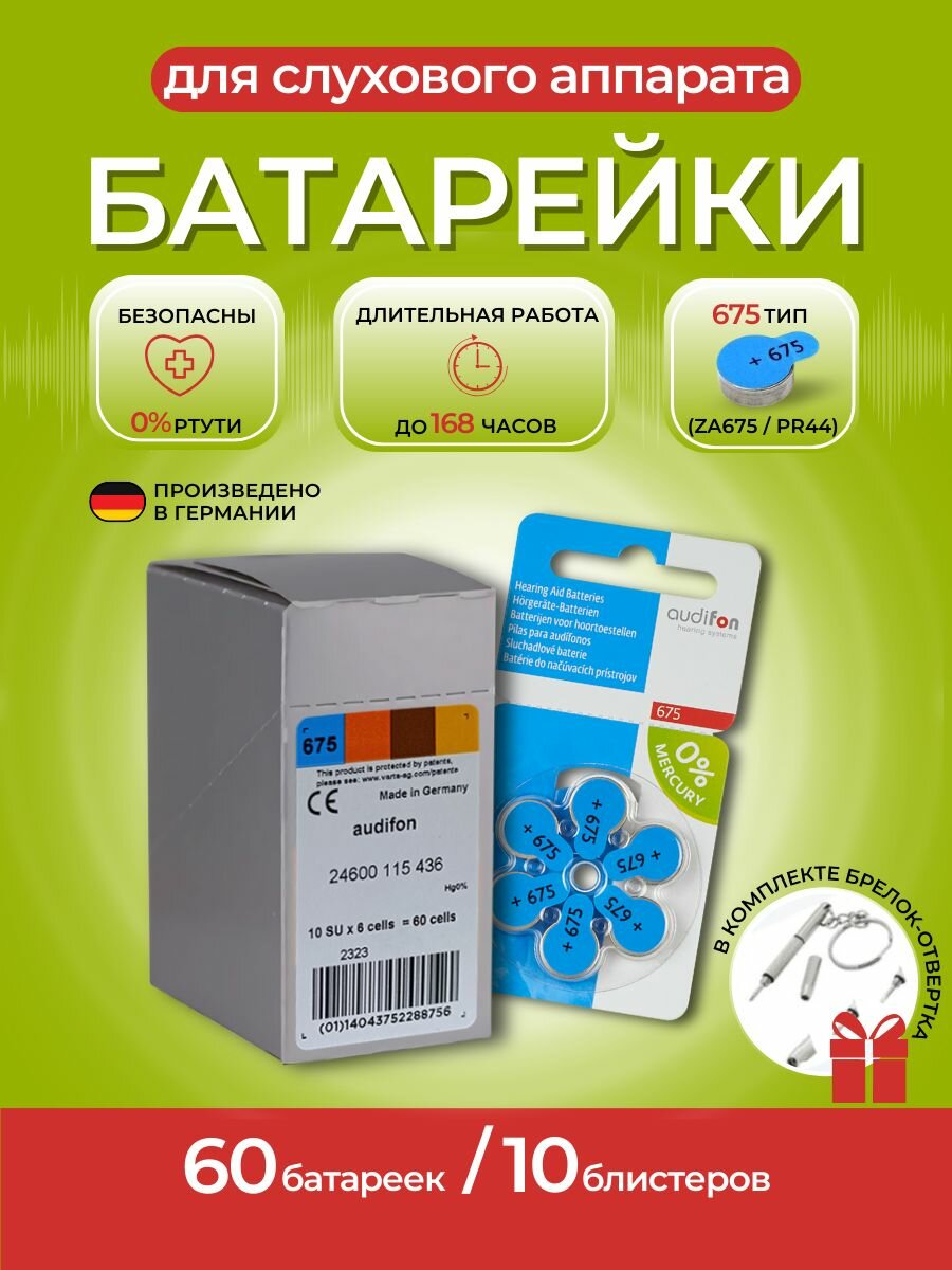 Купить Батарейки для слуховых аппаратов Audifon ZA675 60 штук в упаковке