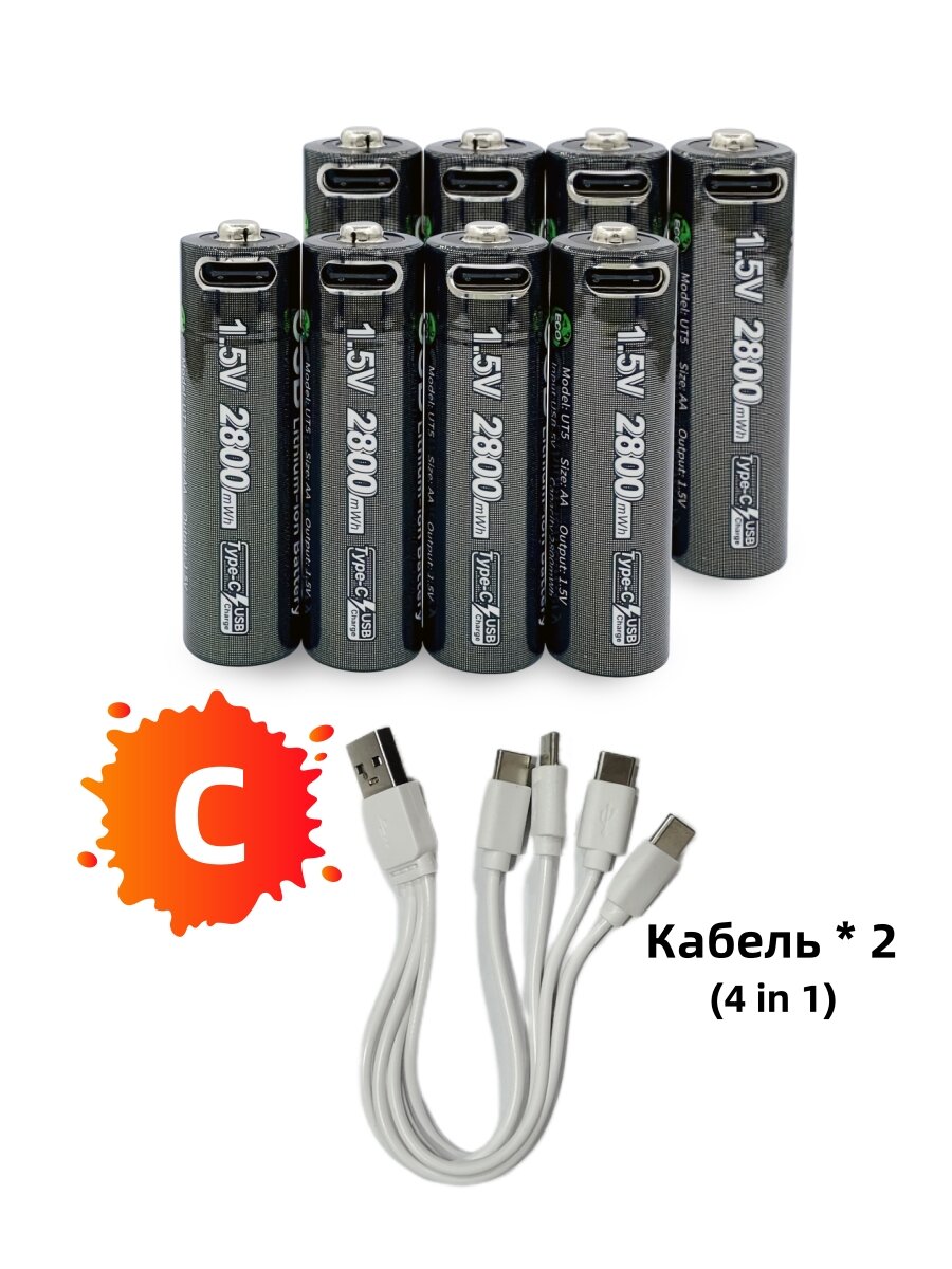 Аккумуляторная батарейка LOTKEE литий-ионный (li ion) AAA (мизинчиковые) 1100mWh, Зарядка через USB, 1,5В, 8 шт + Кабель
