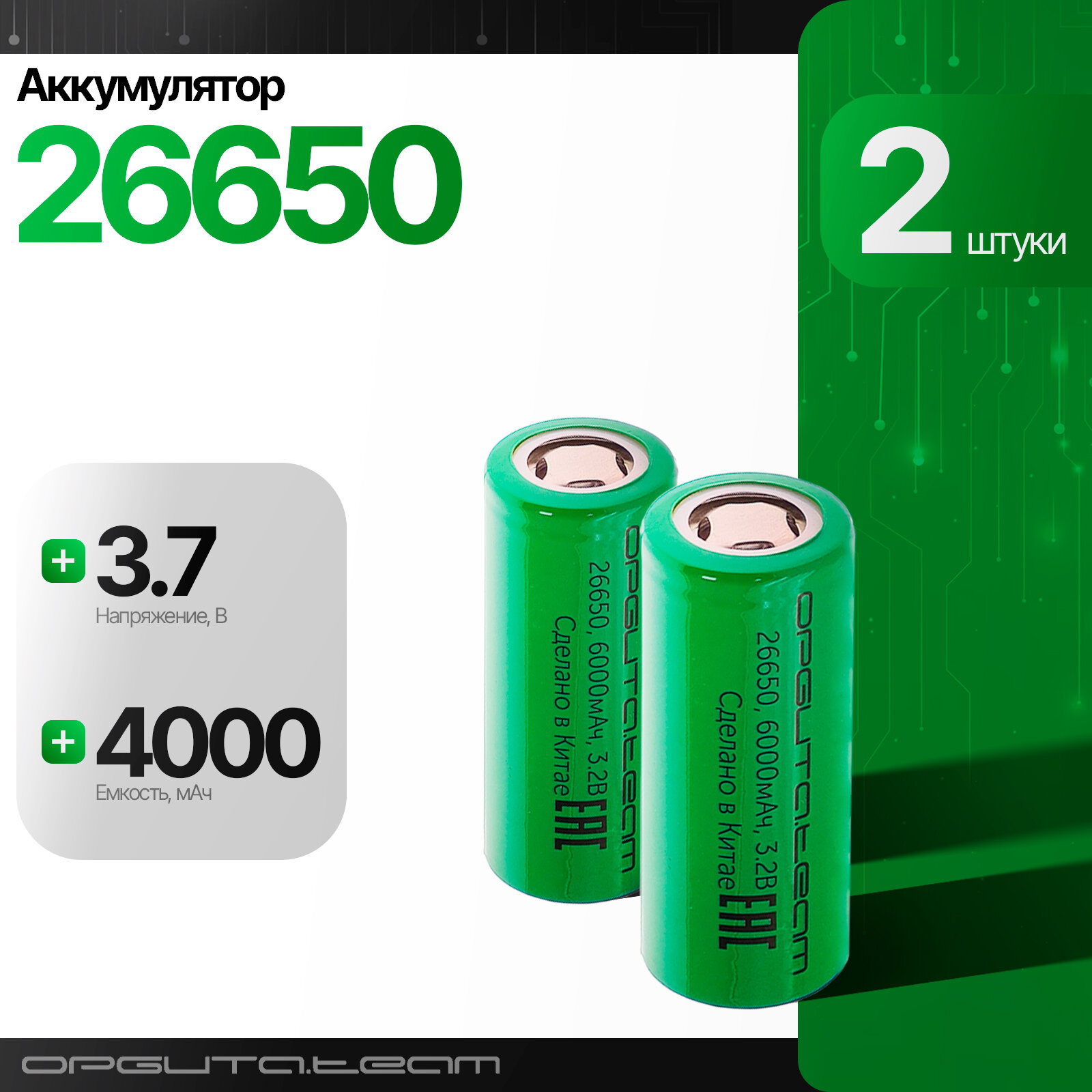 Купить Аккумулятор 26650, 6000мАч, плоский пин, 2шт Орбита