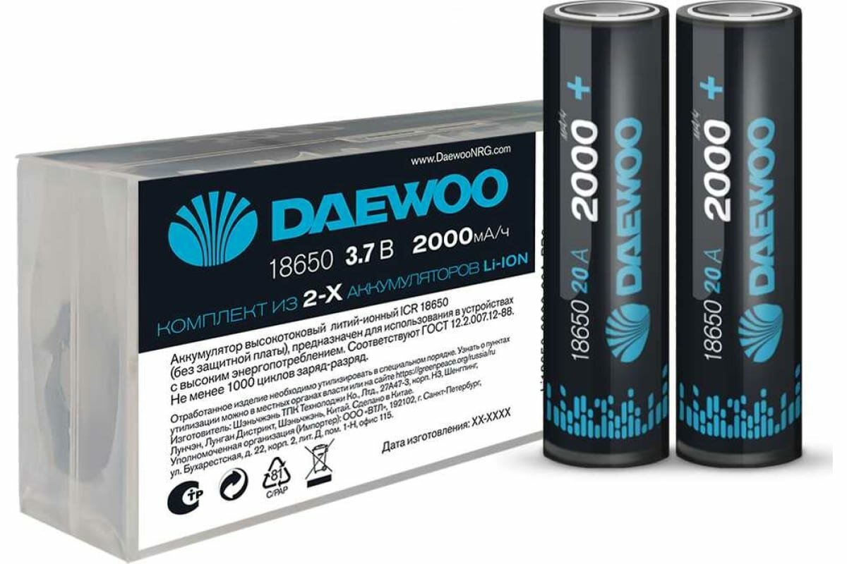 Купить Комплект литий-ионных аккумуляторов Daewoo 18650 2000мАч 20А 2 шт.