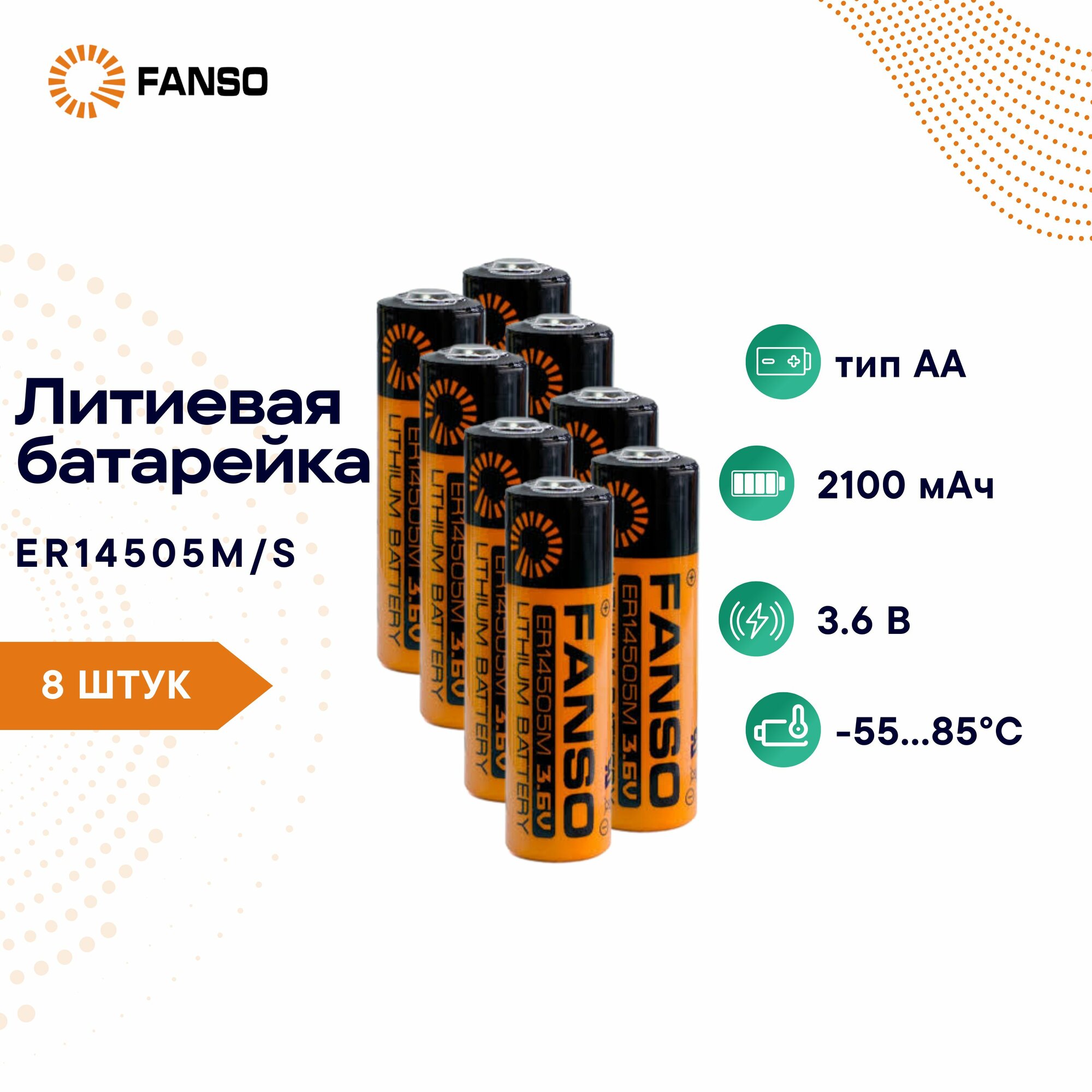 FANSO ER14505M/S Литиевая батарейка 8 шт цилиндрическая для приборов, счетчиков, автомобилей и GPS, тип AA, высокотоковая, Li-SOCl2 интересное: