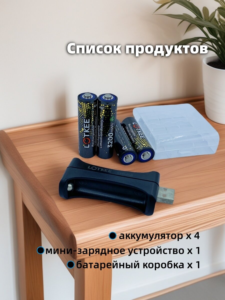 Аккумуляторные Батарейки LOTKEE, 3200mWh, AA, с USB зарядкой, 4шт интересное: