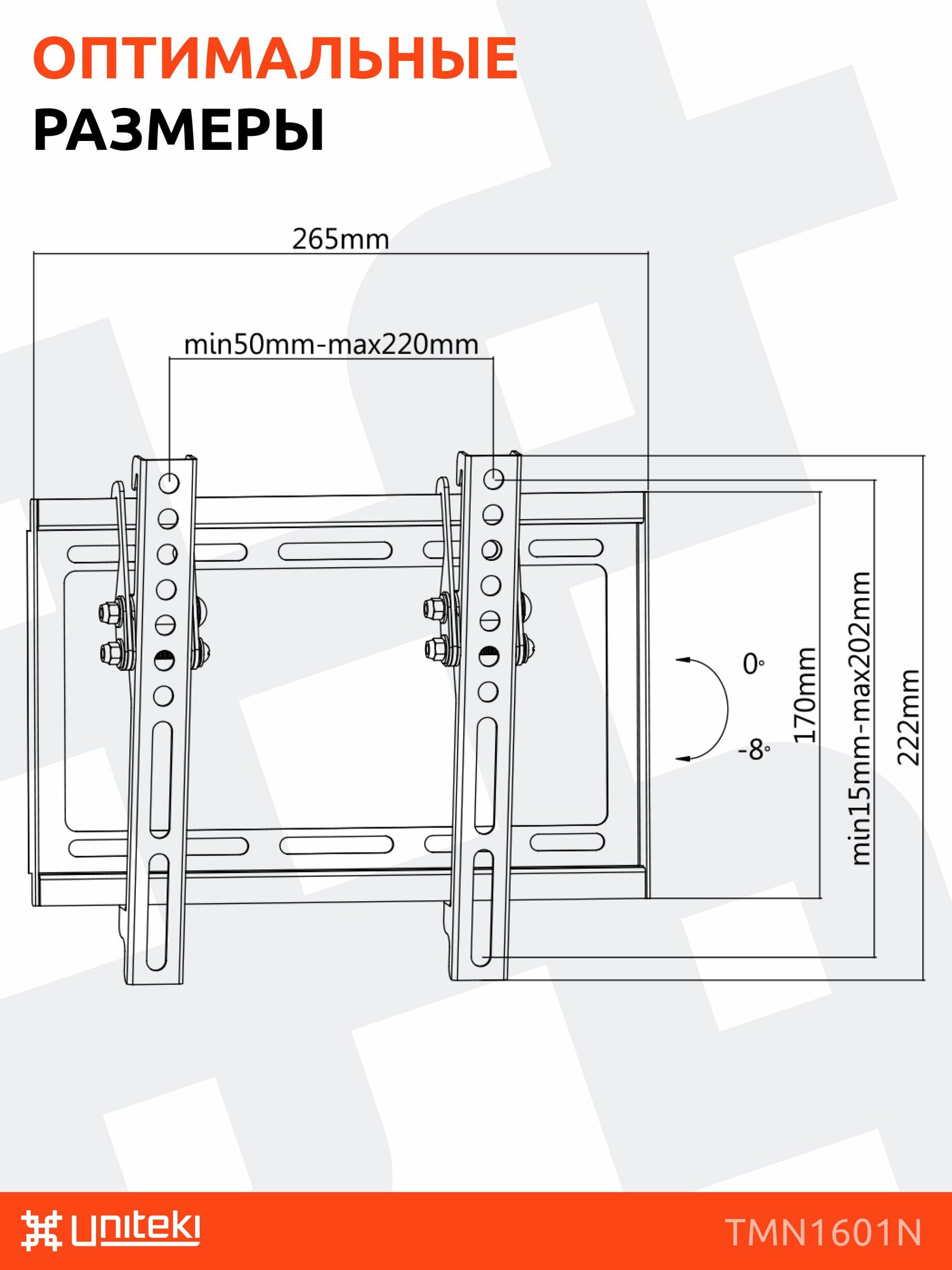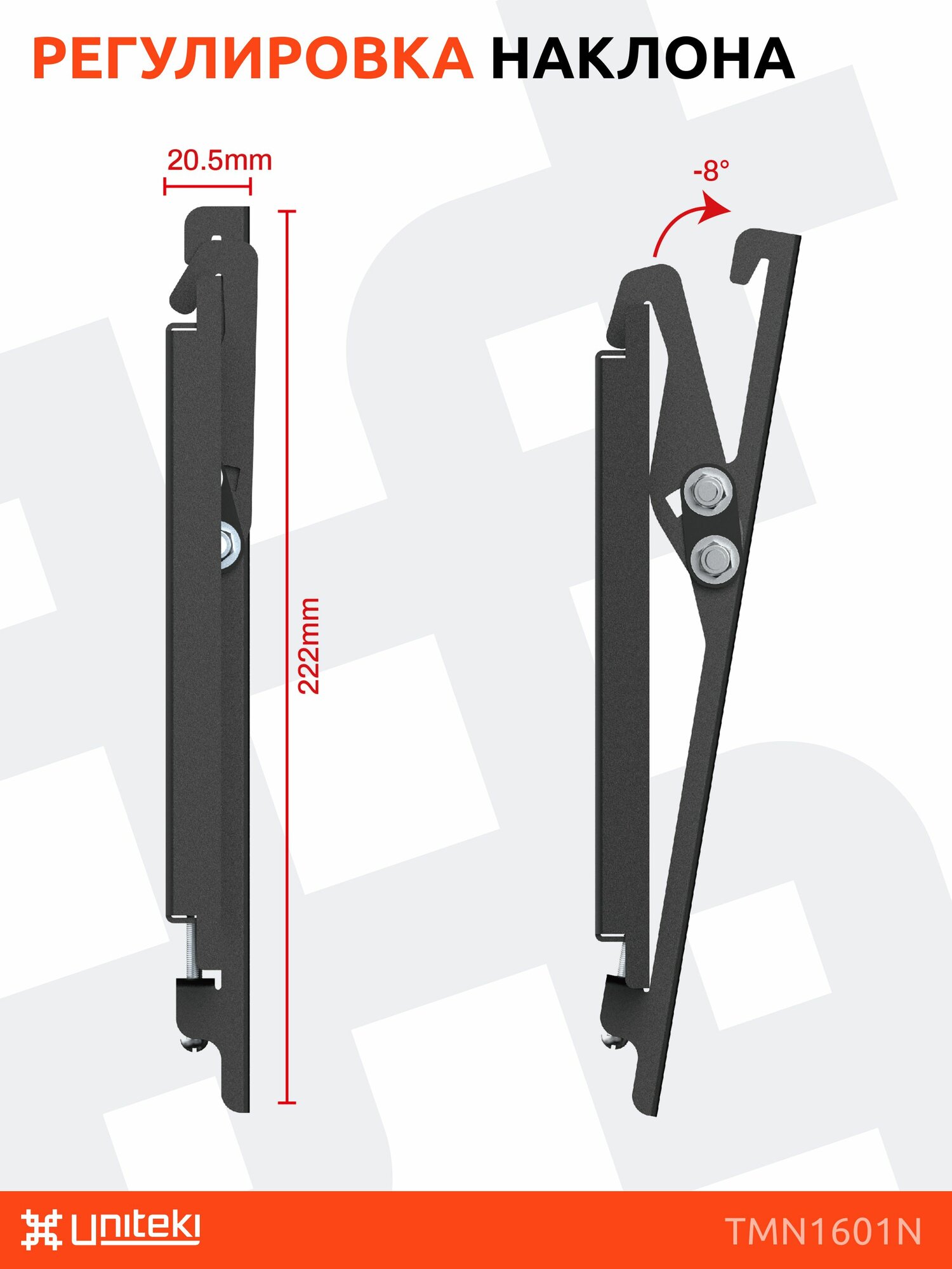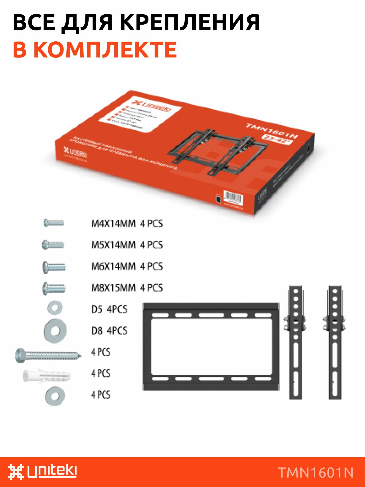 Кронштейн на стену для телевизора или монитора с наклоном UNITEKI TMN1601N черный диагональ 23-43 дюйма, крепление для монитора интересное: