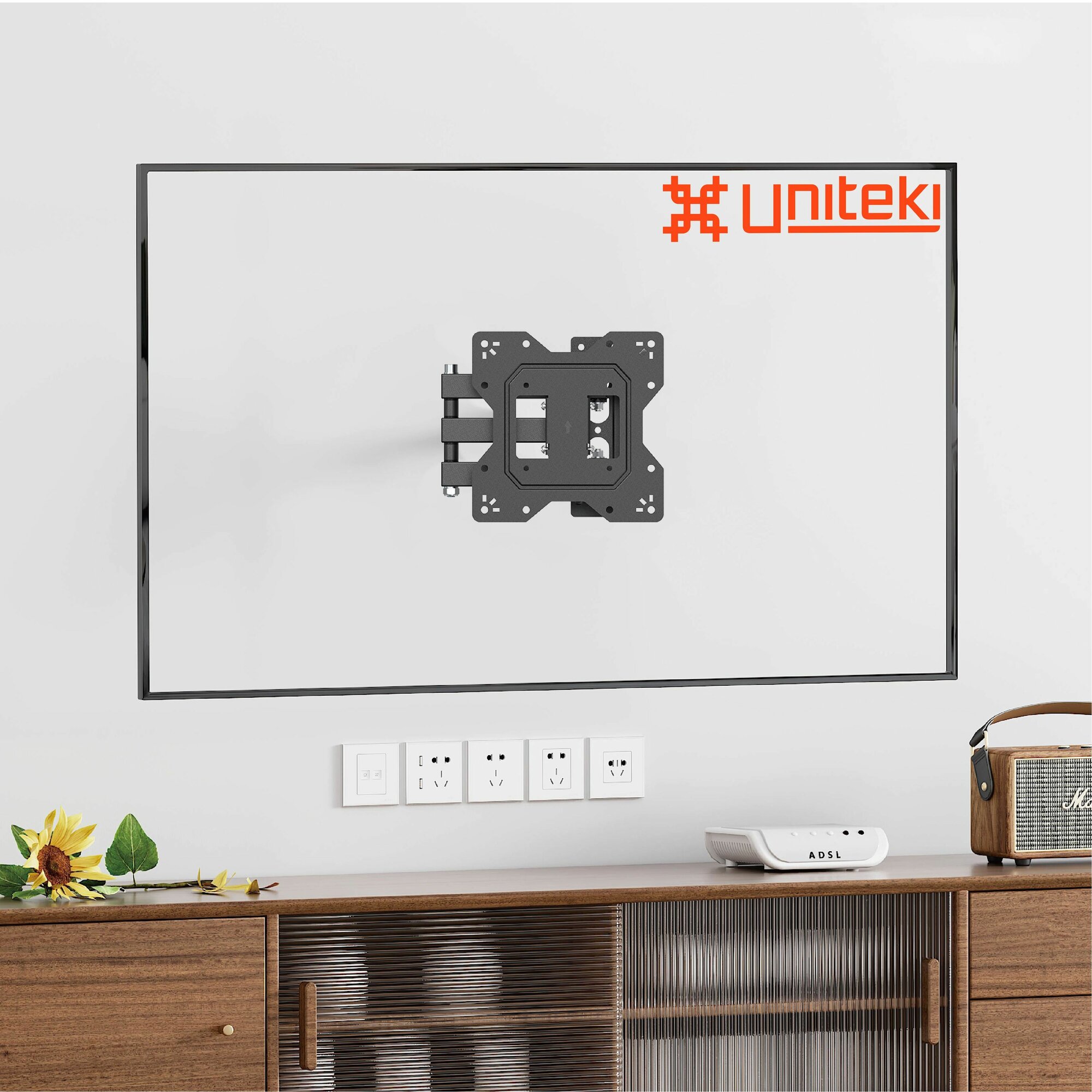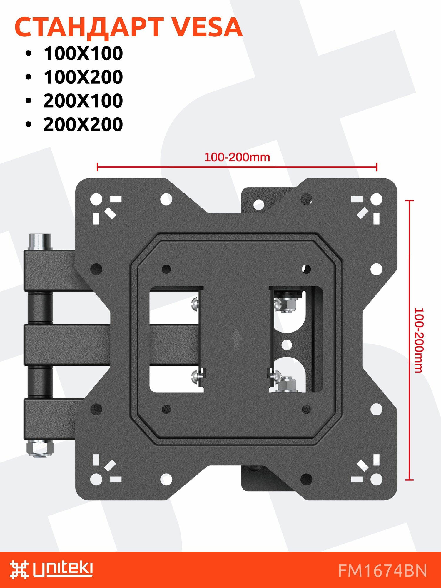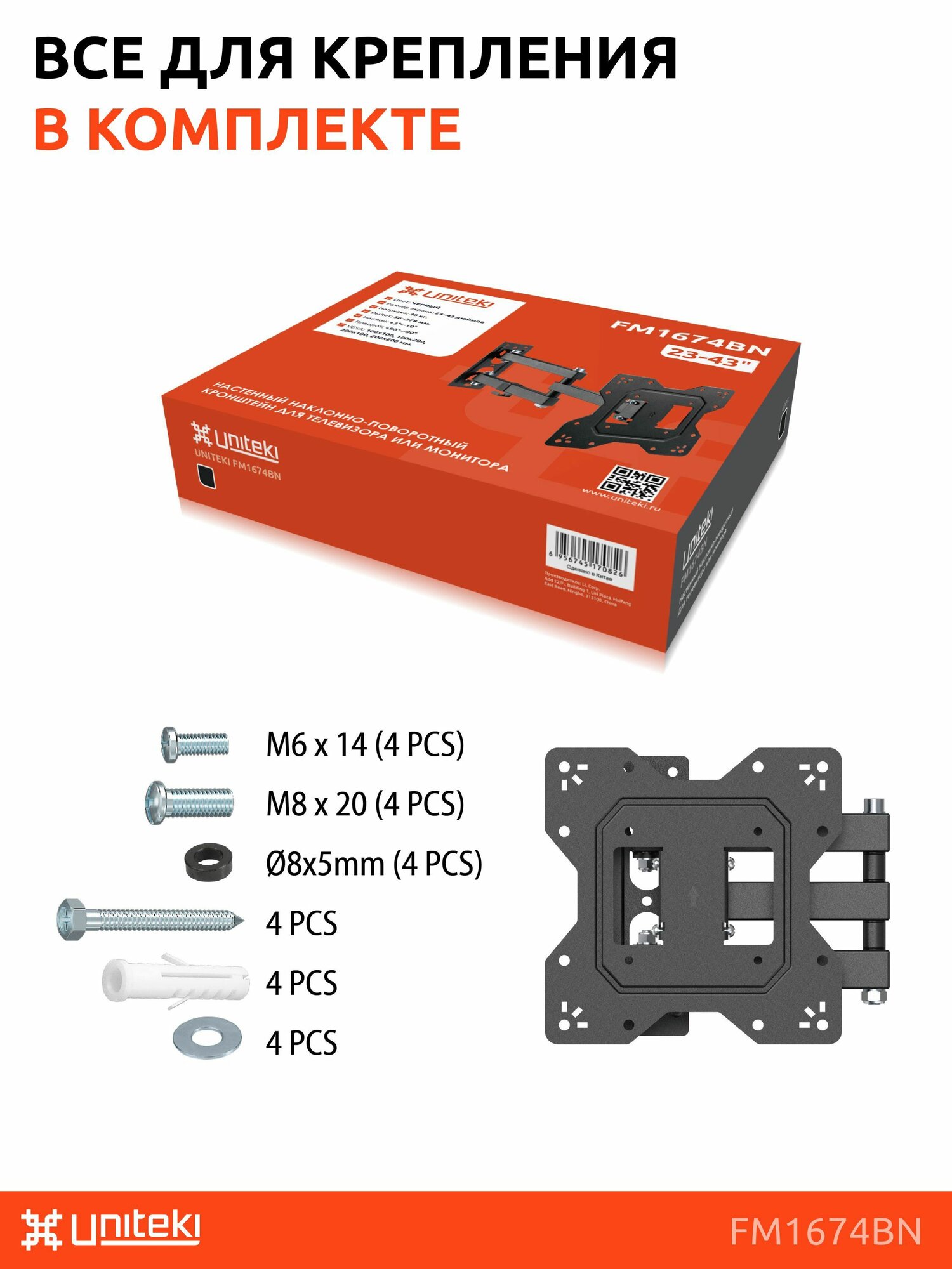 Кронштейн для телевизора или монитора на стену выдвижной, наклонно поворотный UNITEKI FM1674BN черный диагональ 23-43 дюйма интересное: