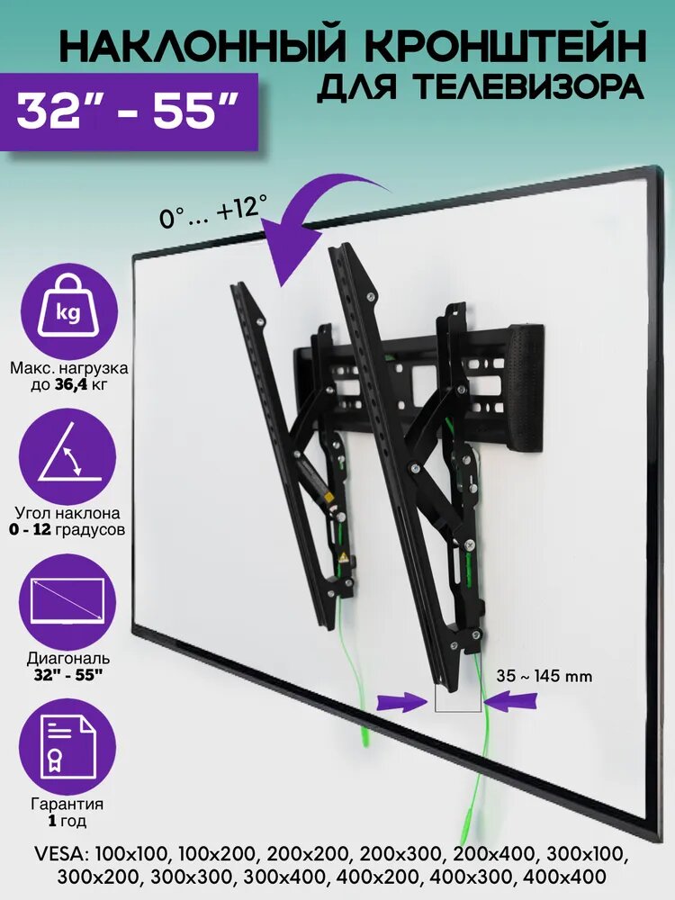 Кронштейн NB С2-T, для ТВ 32" - 55", наклонный, нагрузка до 36 кг, чёрный интересное: