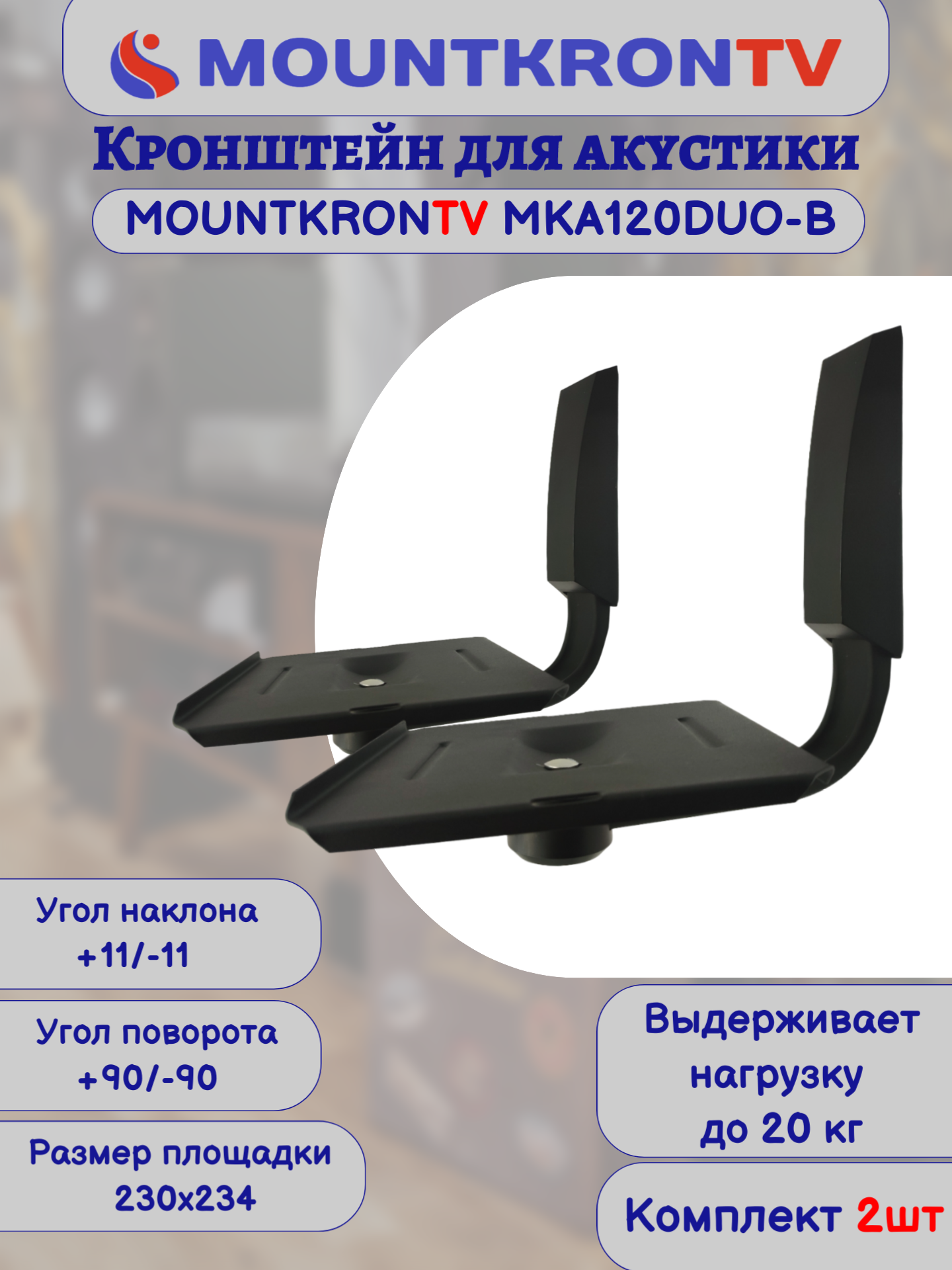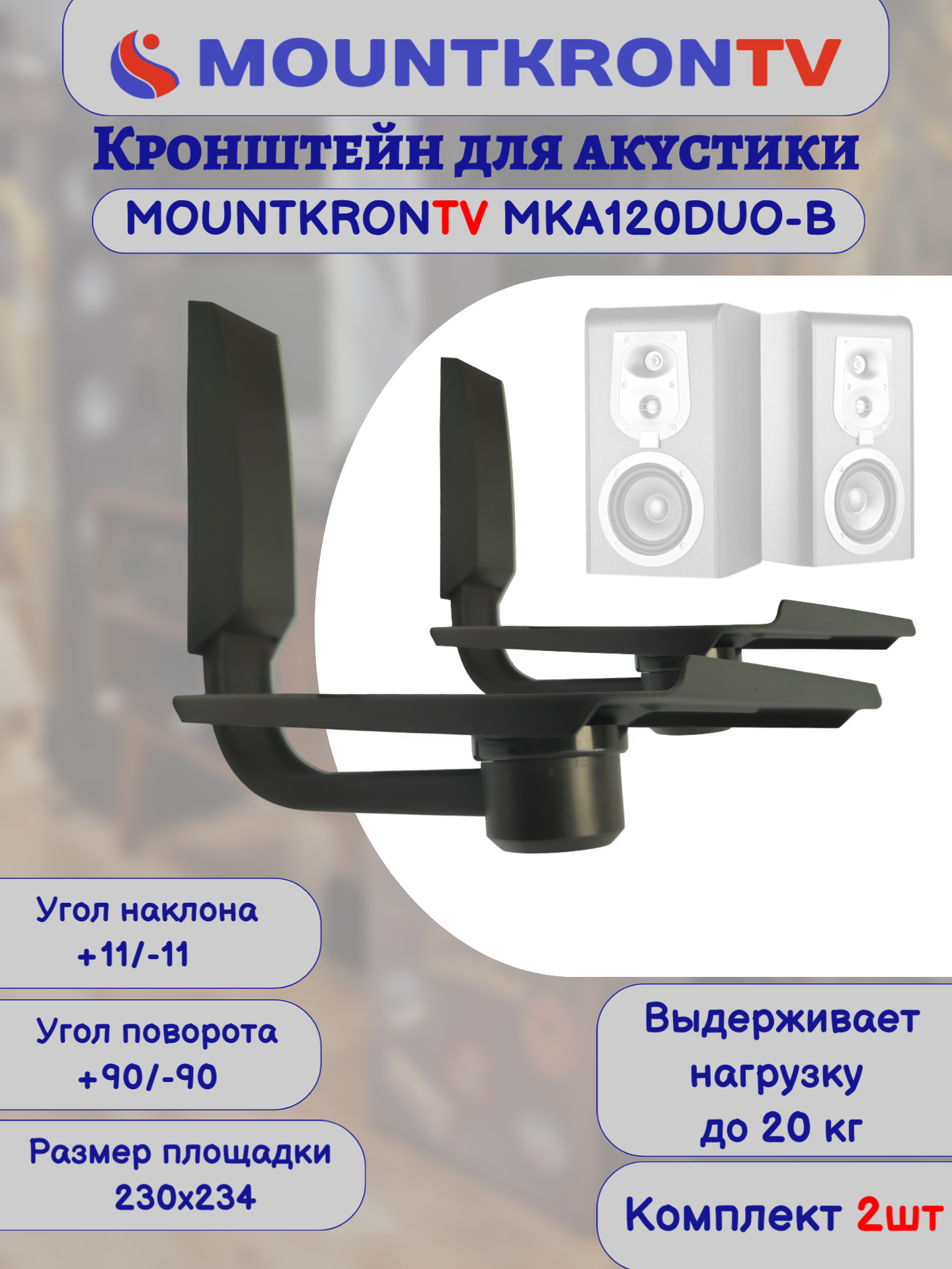 Кронштейн для акустики MOUNTKRONTV MKA120DUO-B на стену, комплект 2шт, наклонно-поворотный, черный интересное: