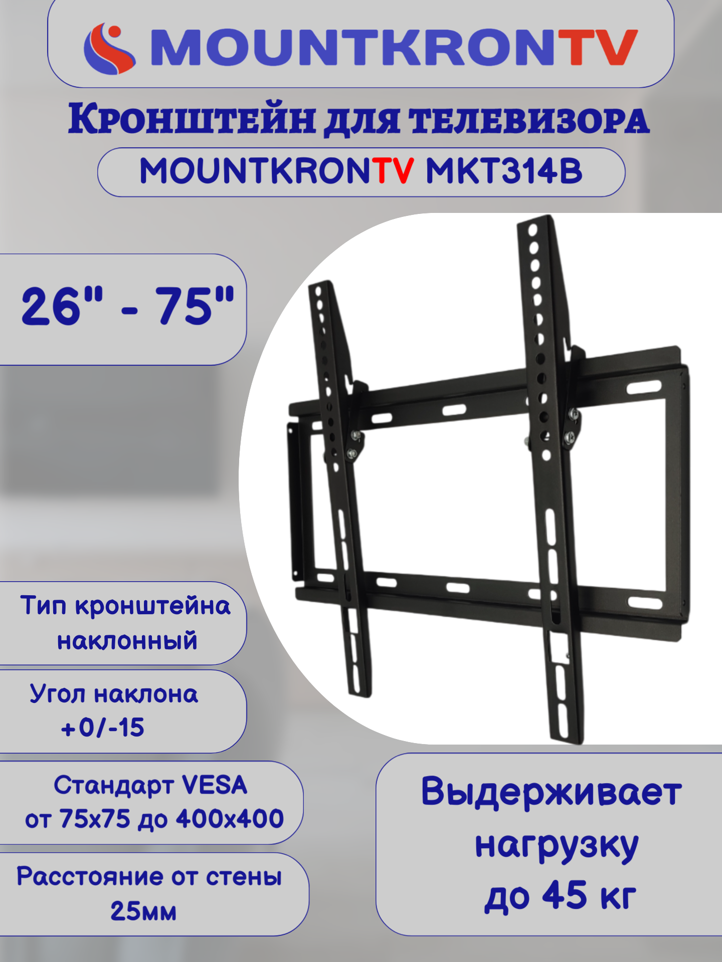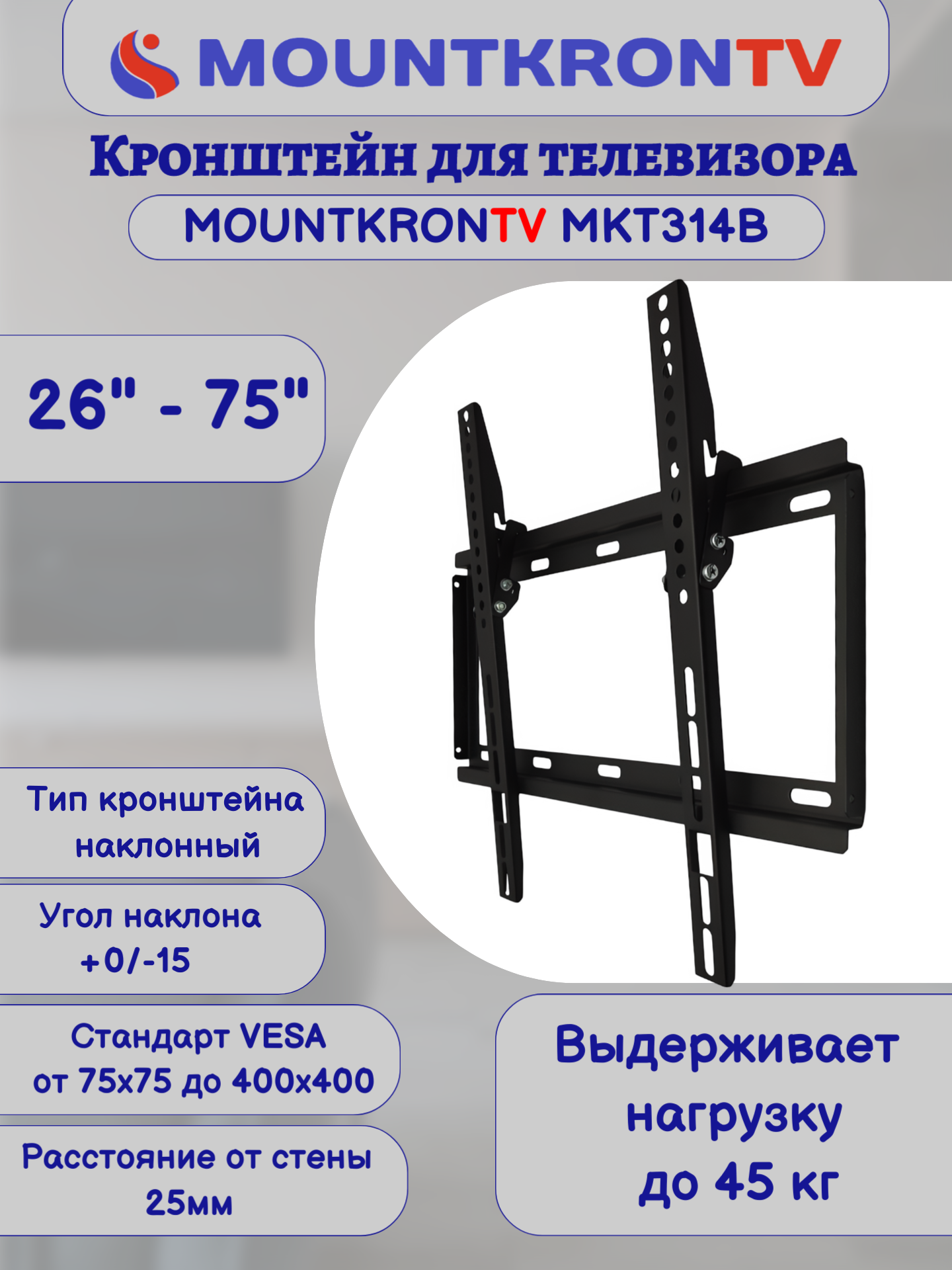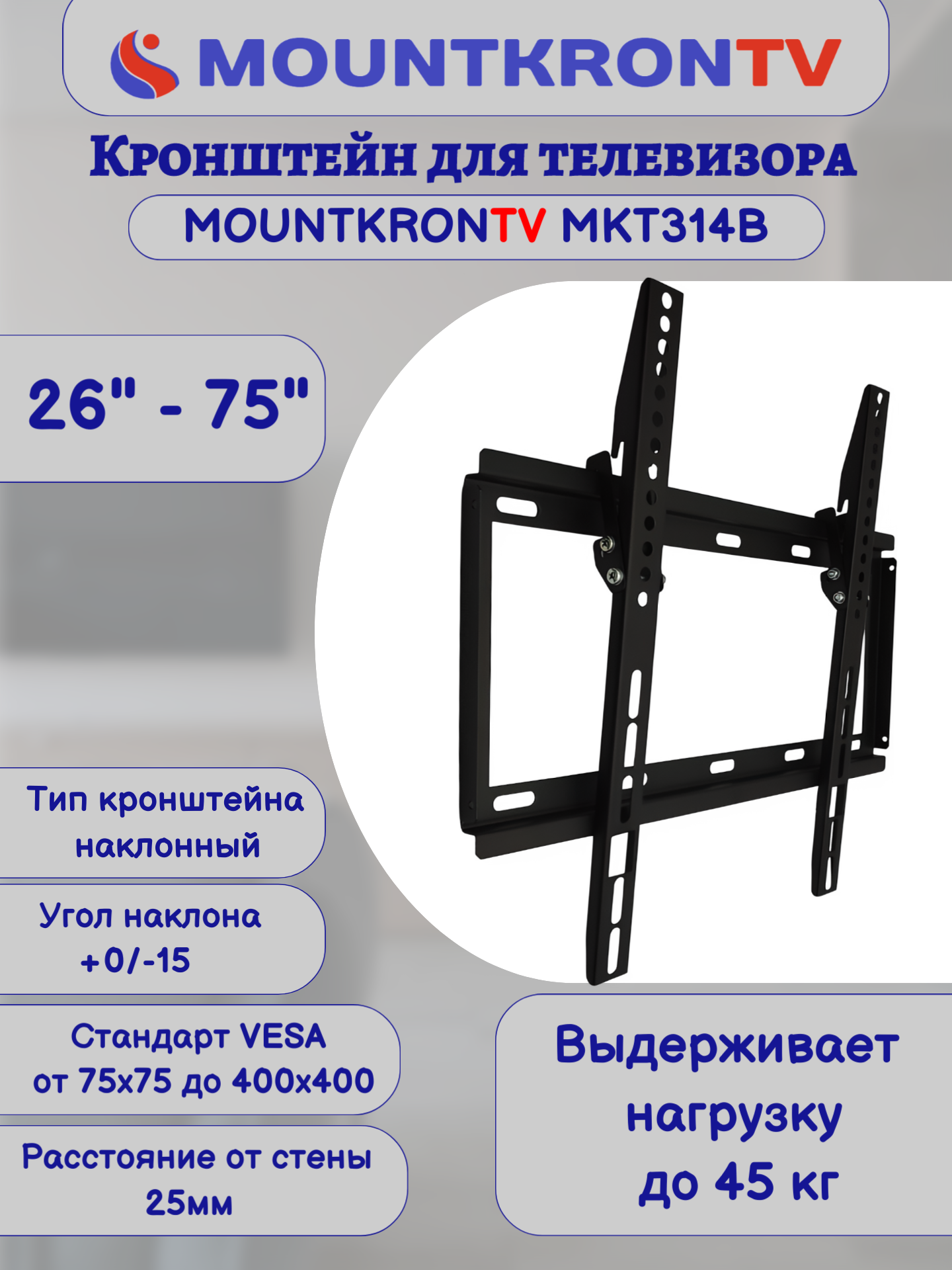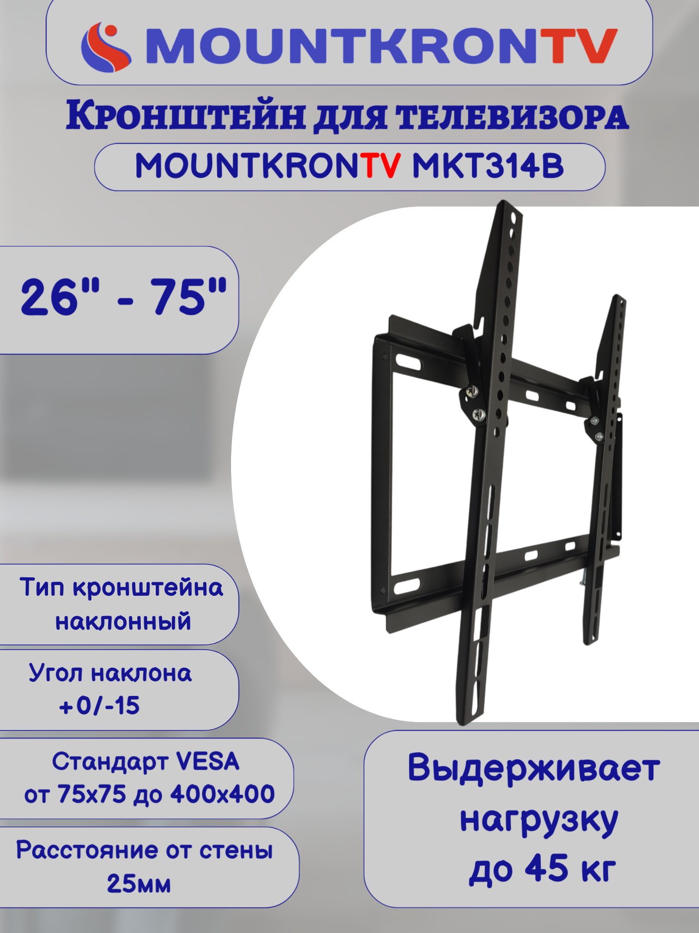 Кронштейн для телевизора MOUNTKRONTV MKT314B на стену, наклонный, диагональ 26"-75", черный интересное: