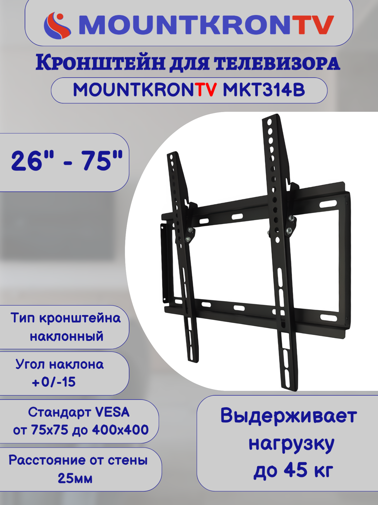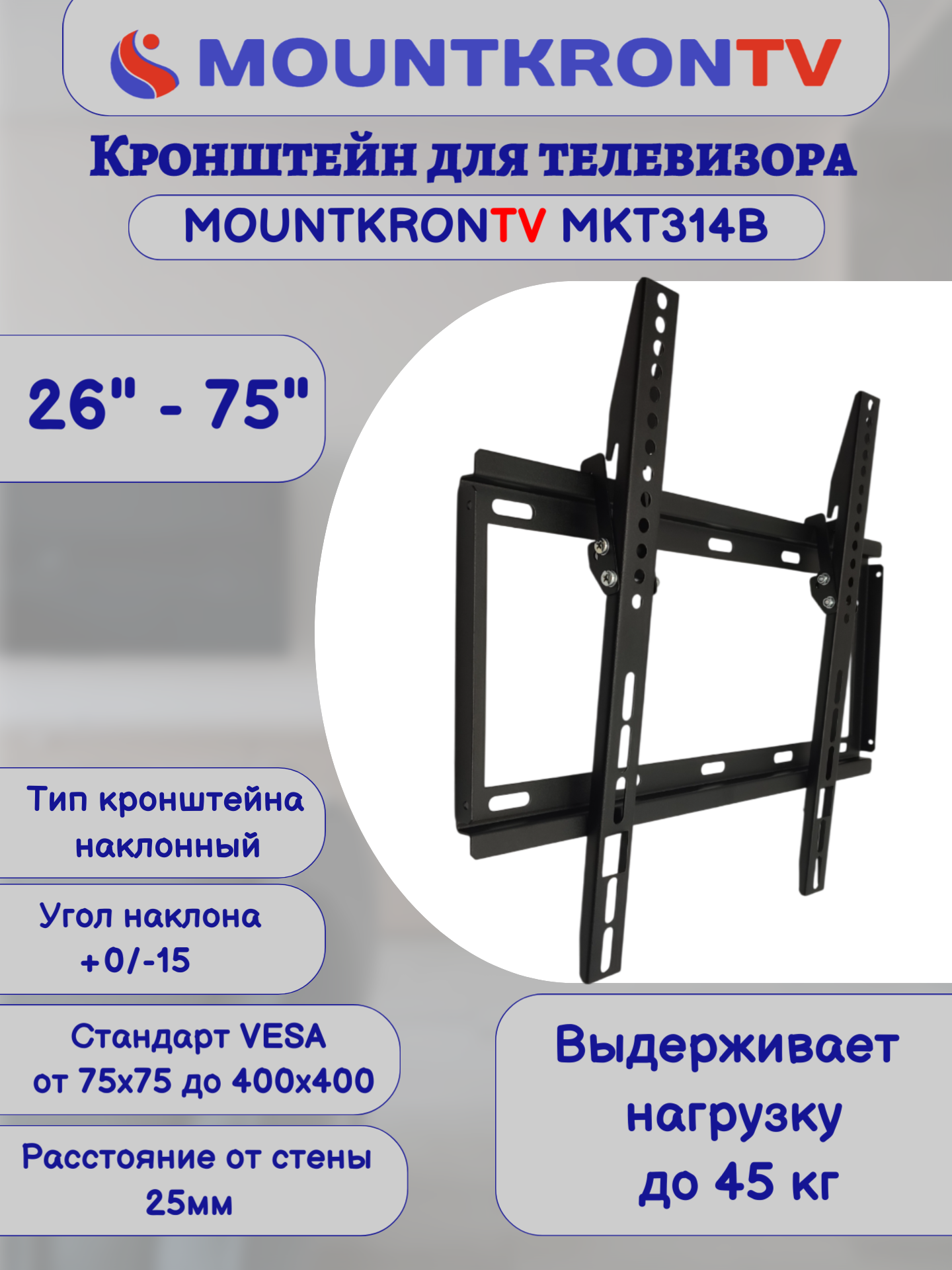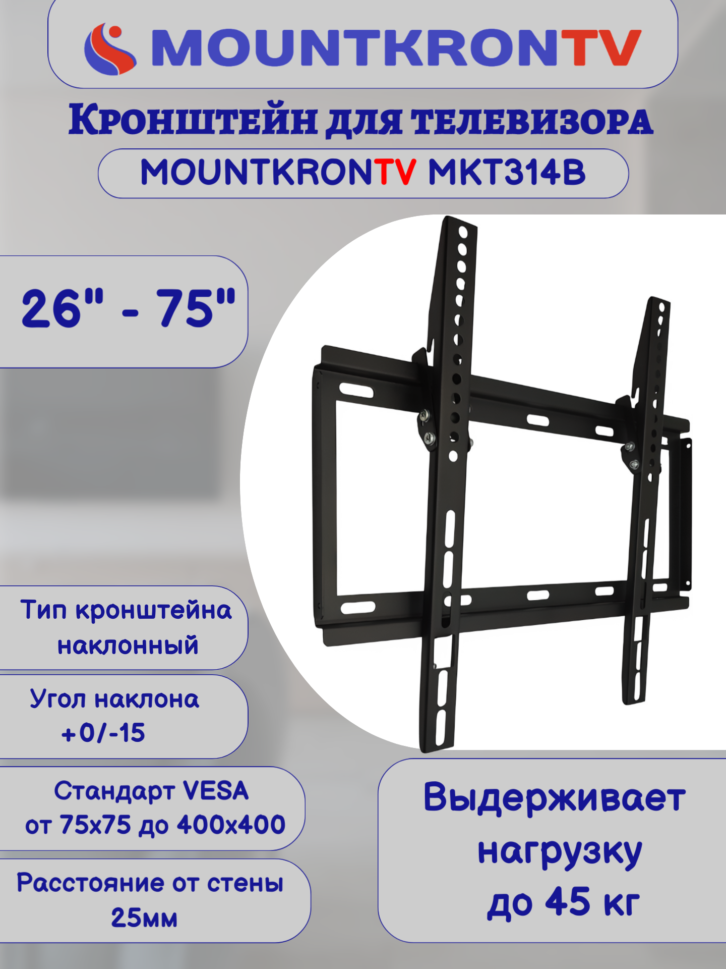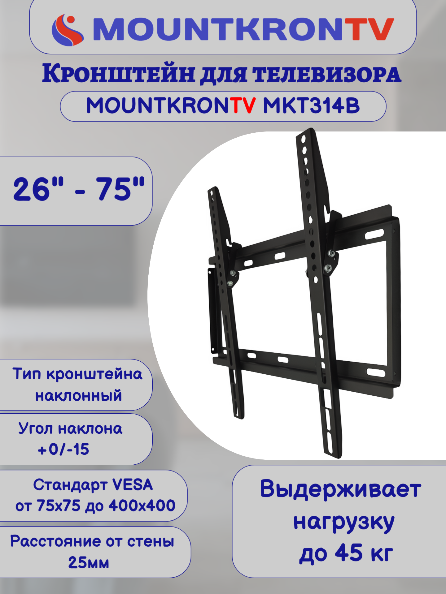 Кронштейн для телевизора MOUNTKRONTV MKT314B на стену, наклонный, диагональ 26"-75", черный интересное: