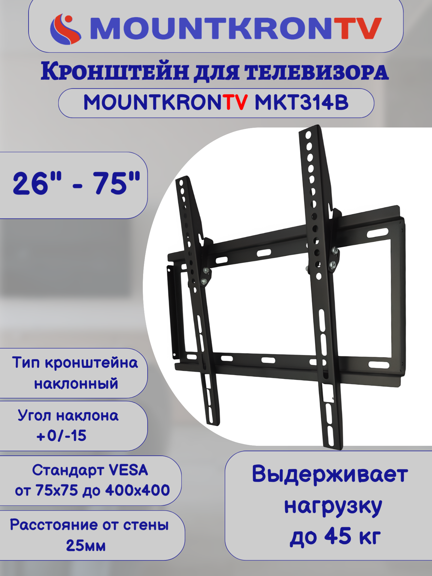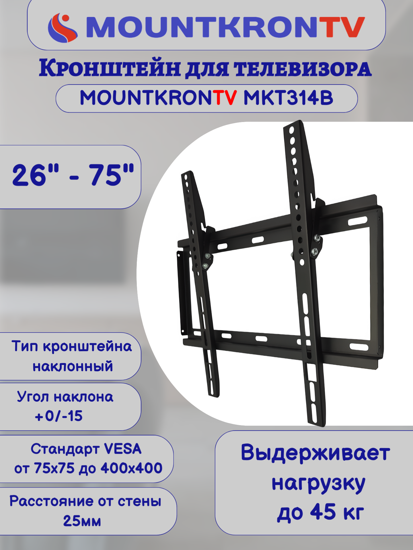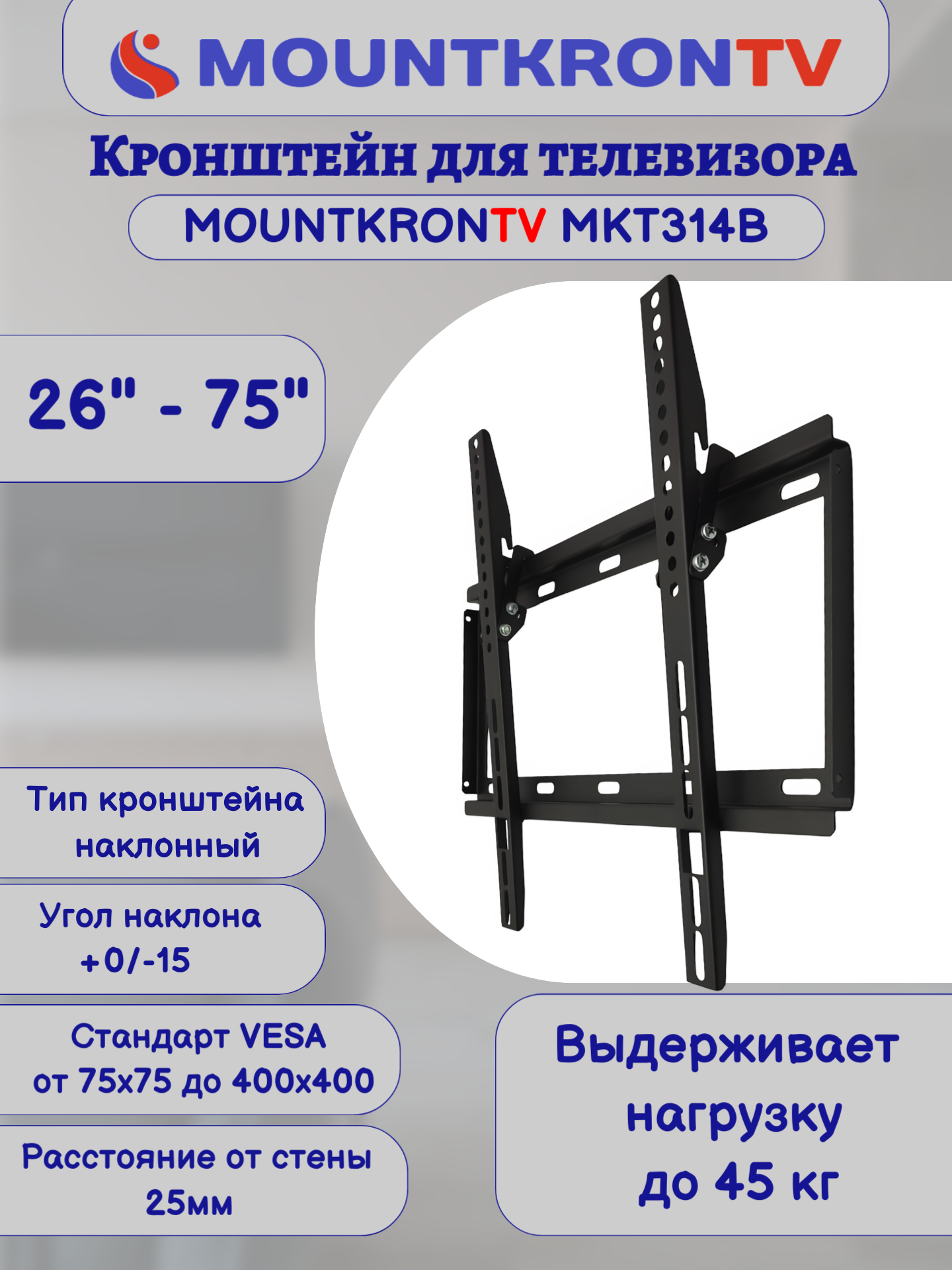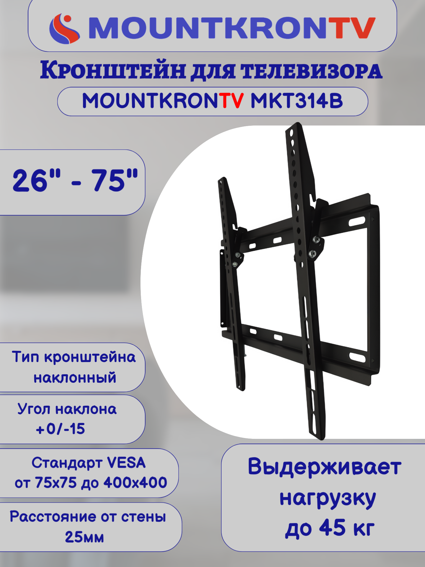 Кронштейн для телевизора MOUNTKRONTV MKT314B на стену, наклонный, диагональ 26"-75", черный интересное: