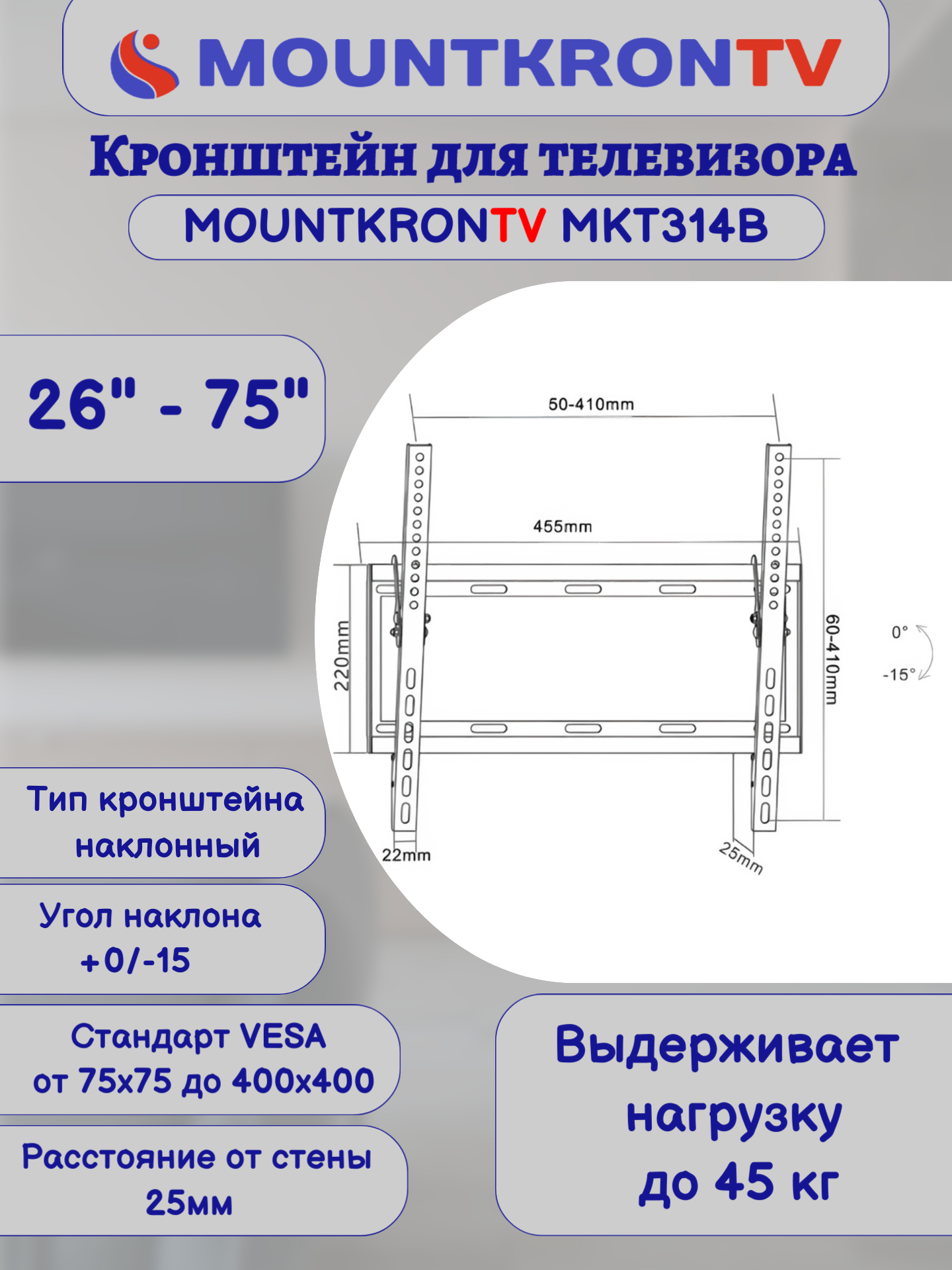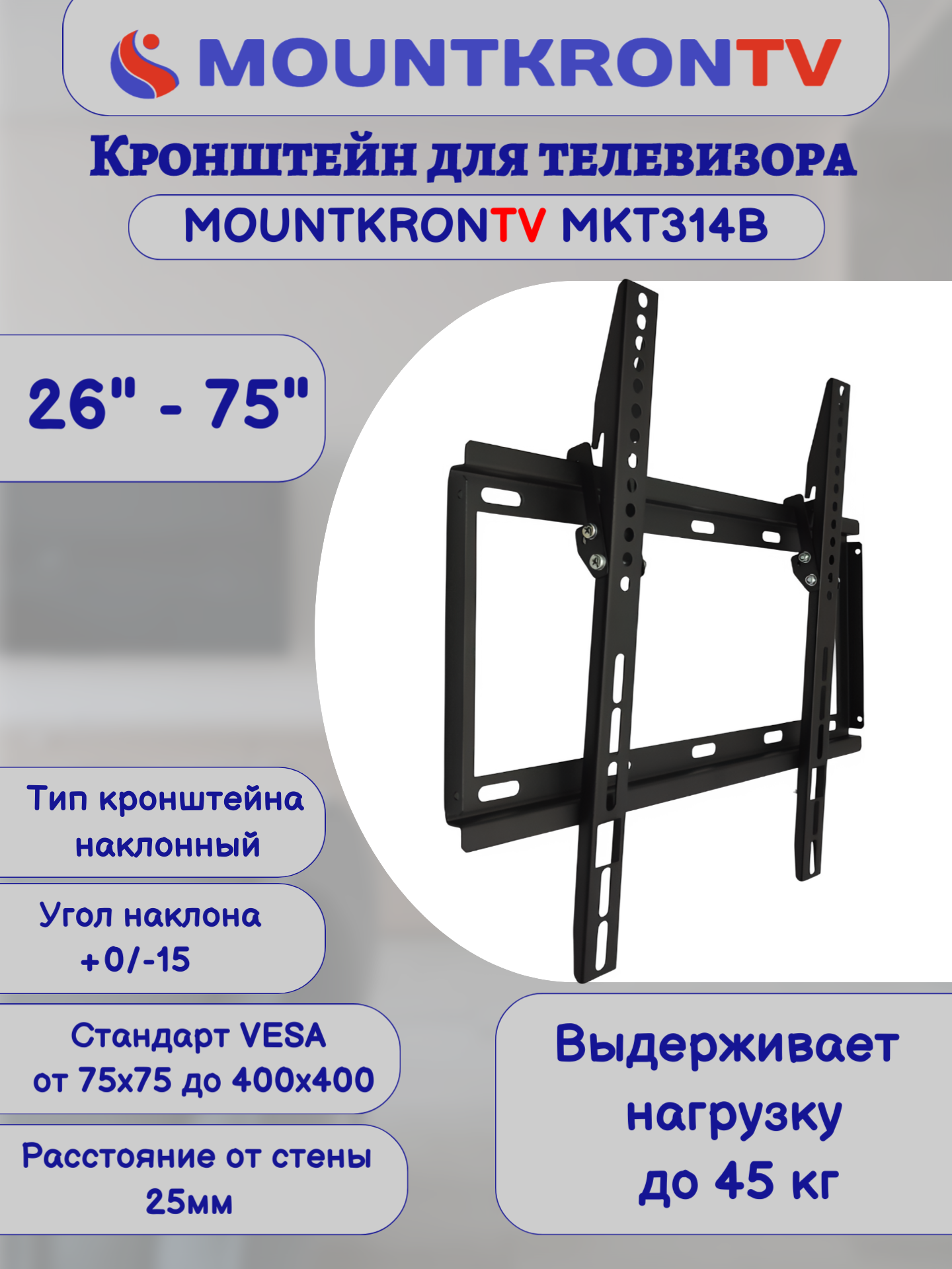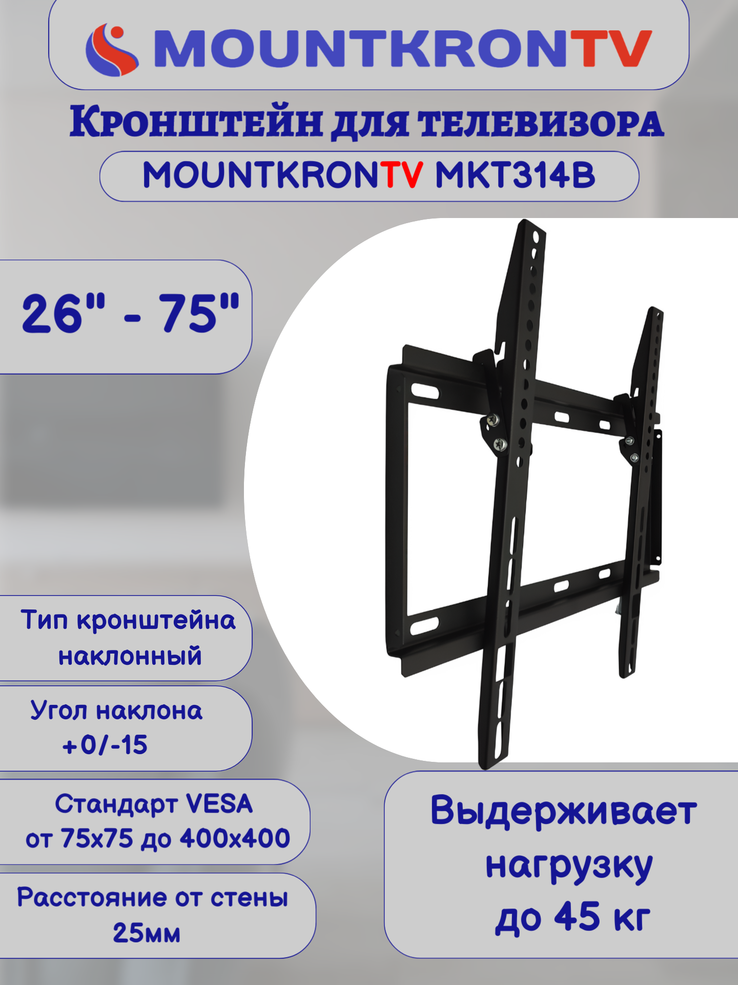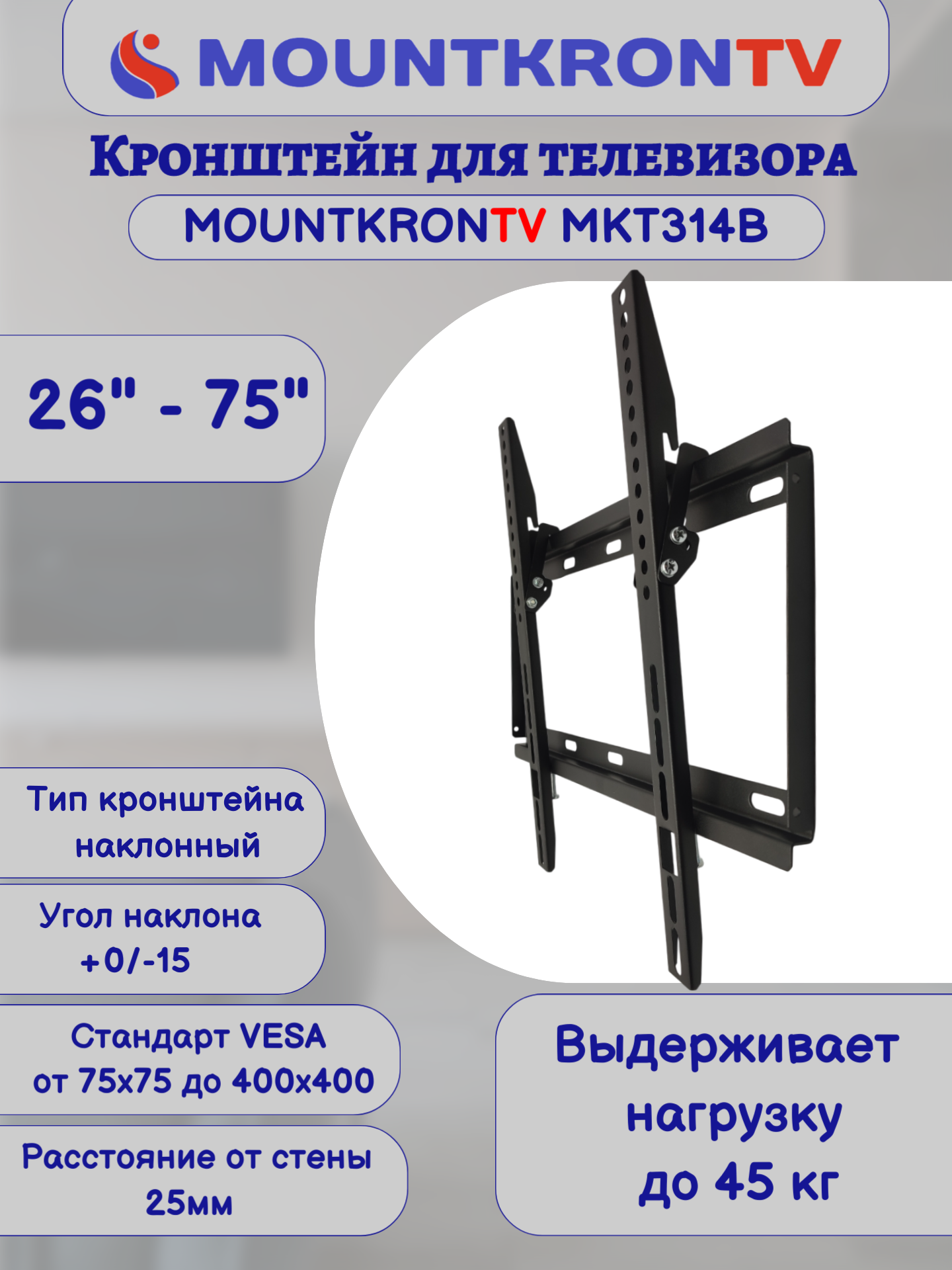 Кронштейн для телевизора MOUNTKRONTV MKT314B на стену, наклонный, диагональ 26"-75", черный интересное: