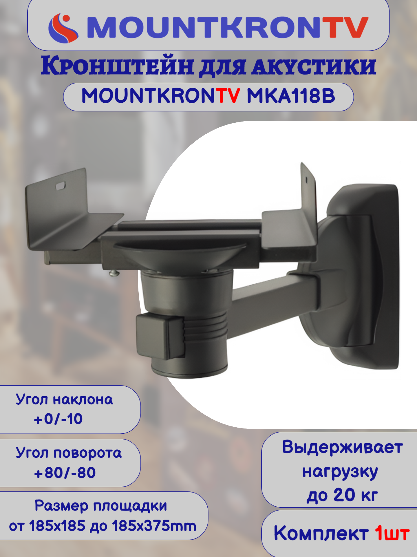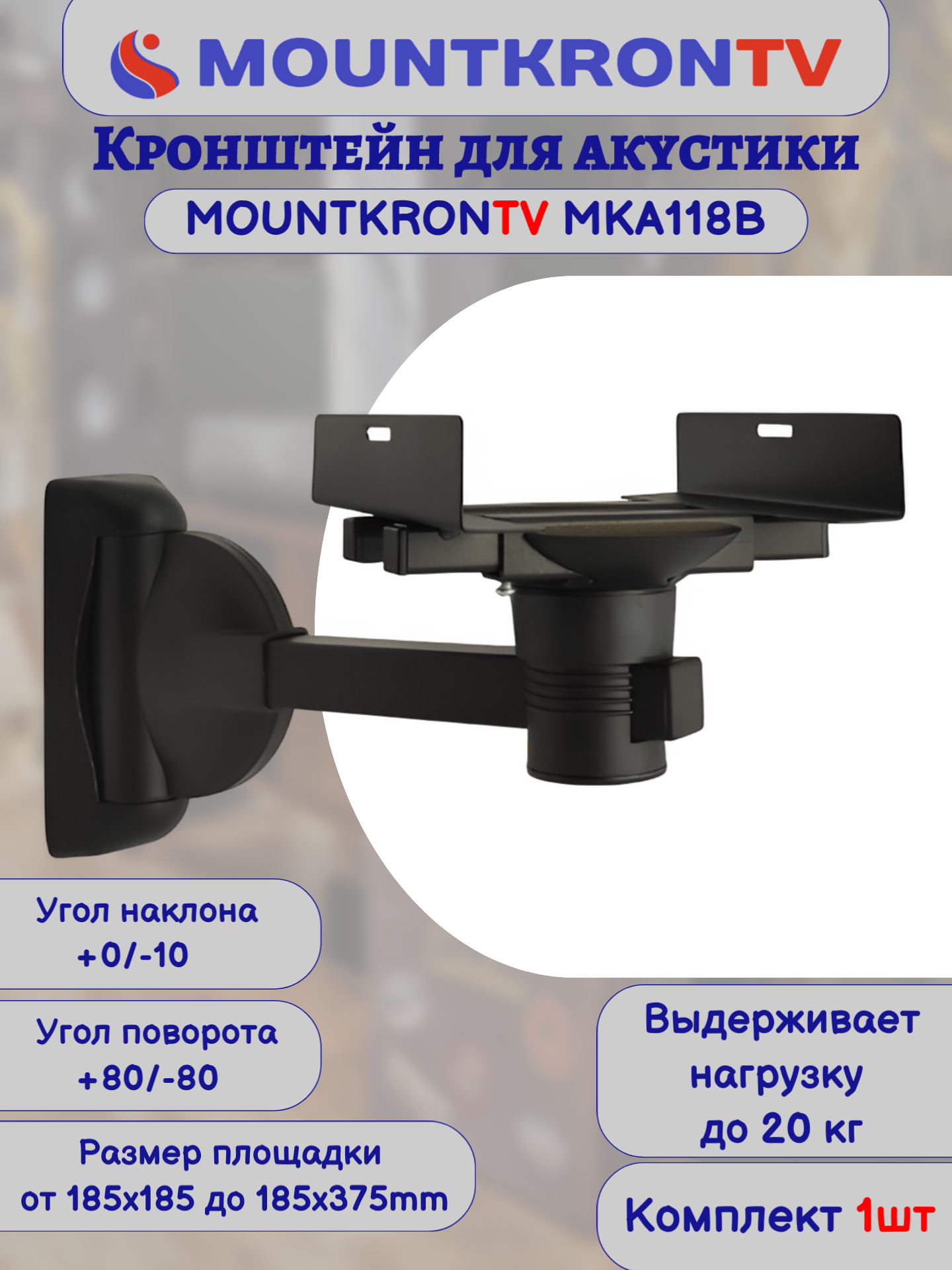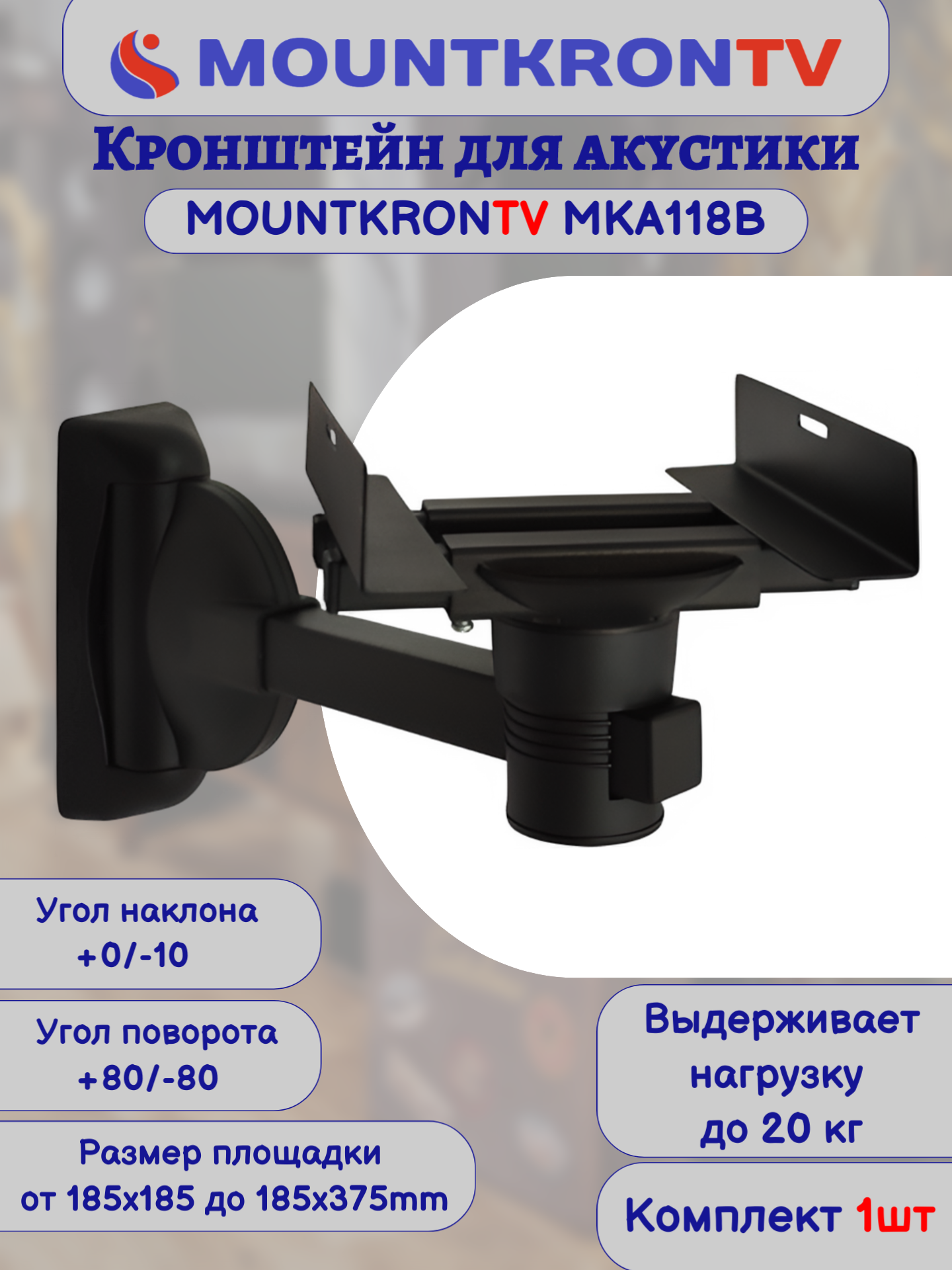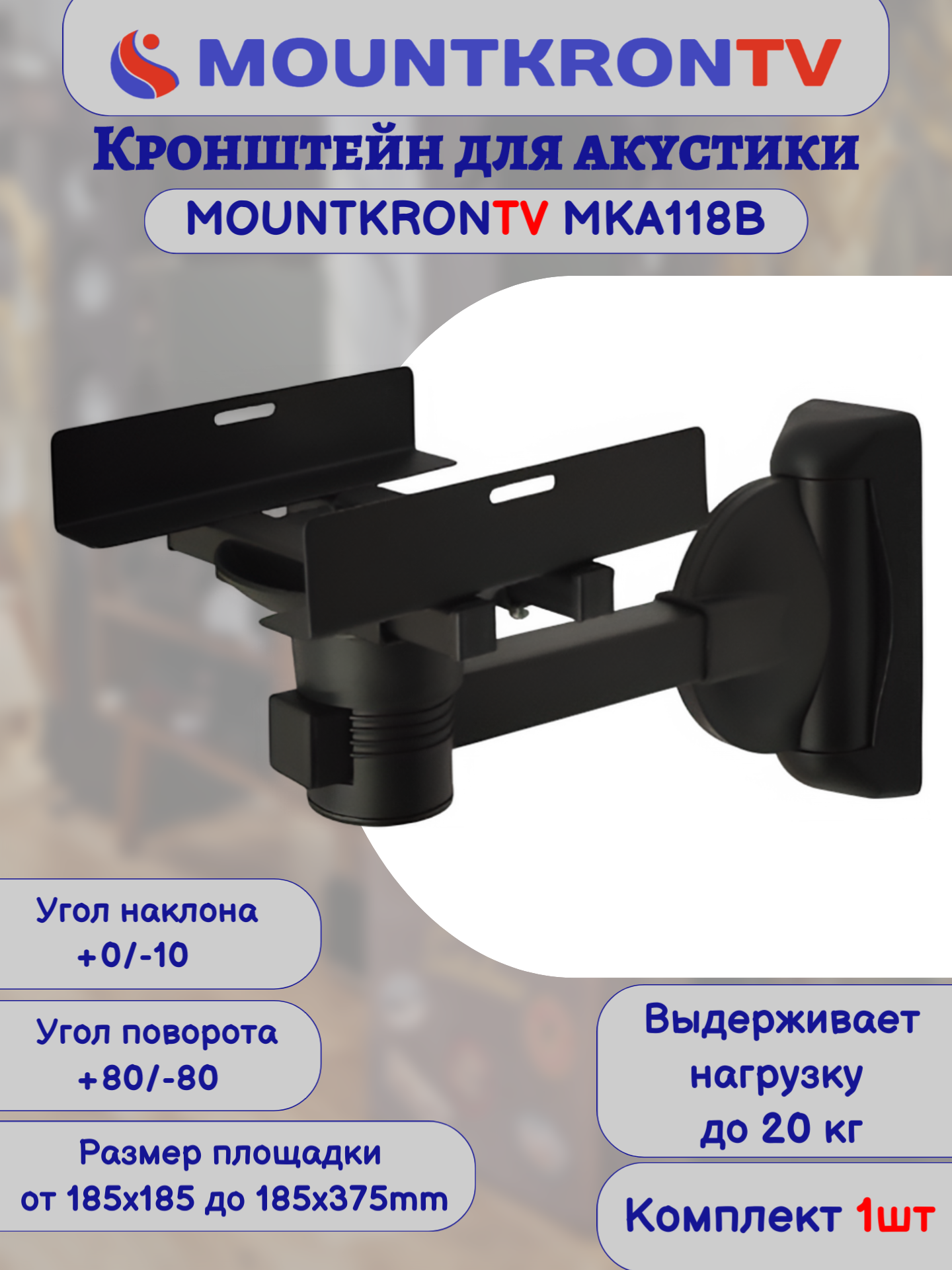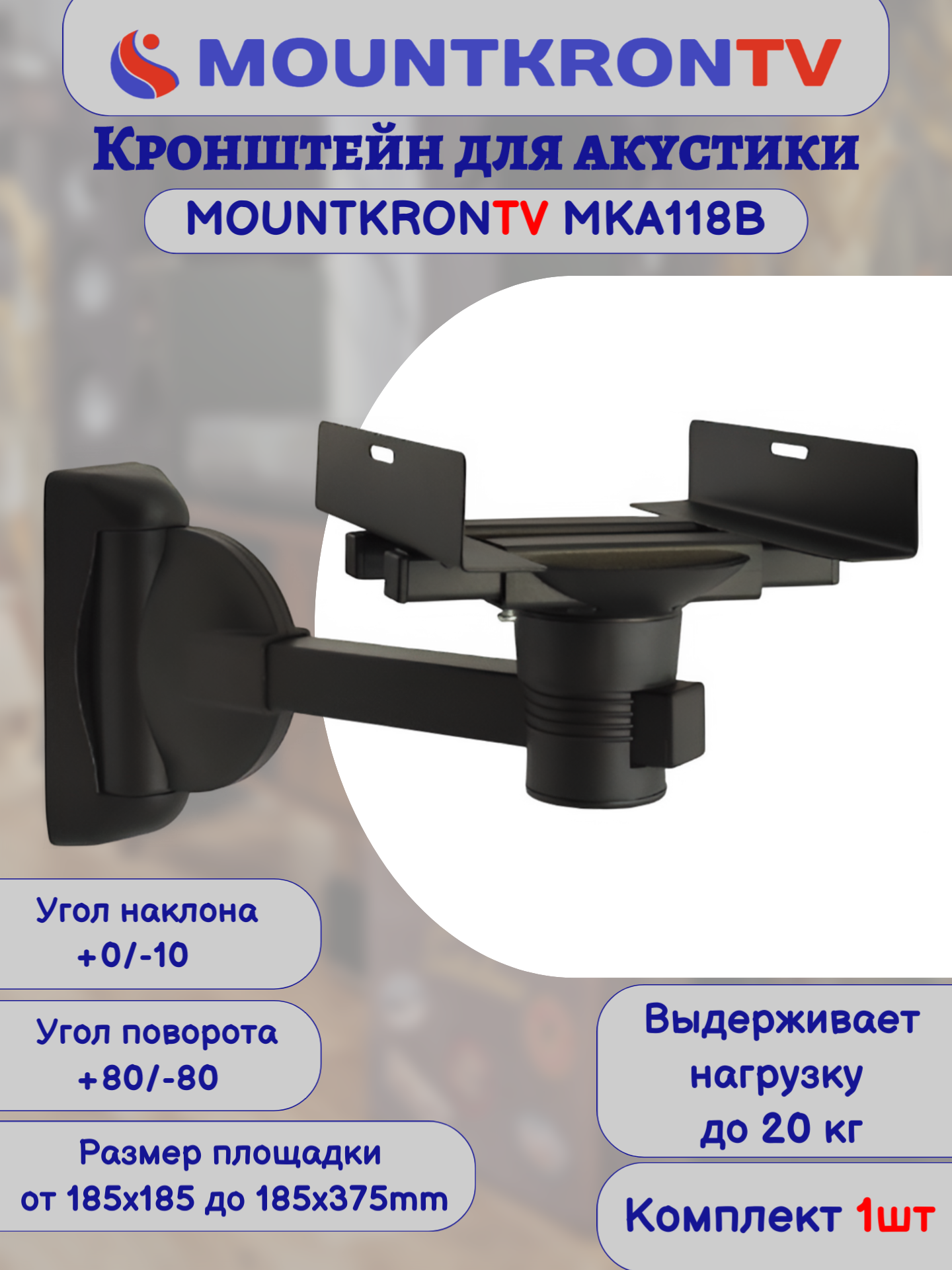 Кронштейн для акустики MOUNTKRONTV MKA118B на стену, наклонно-поворотный, черный интересное: