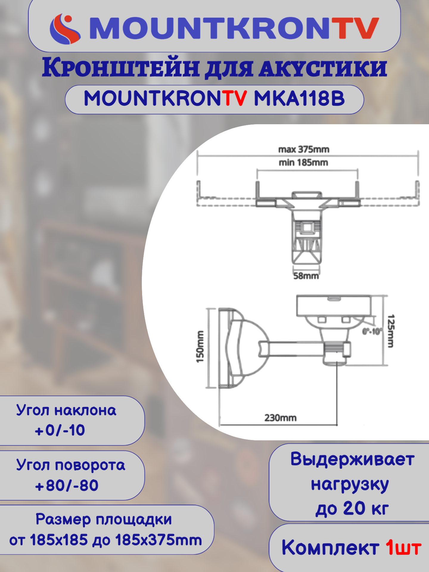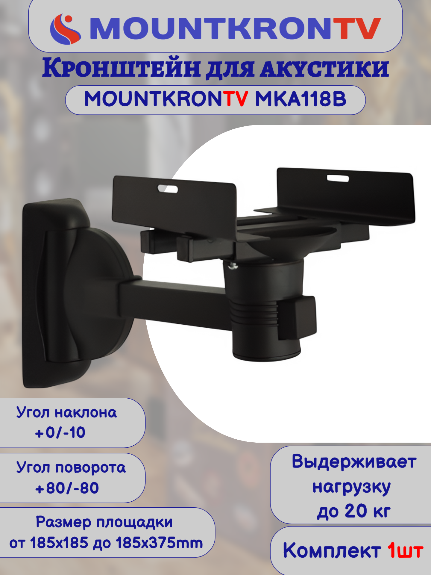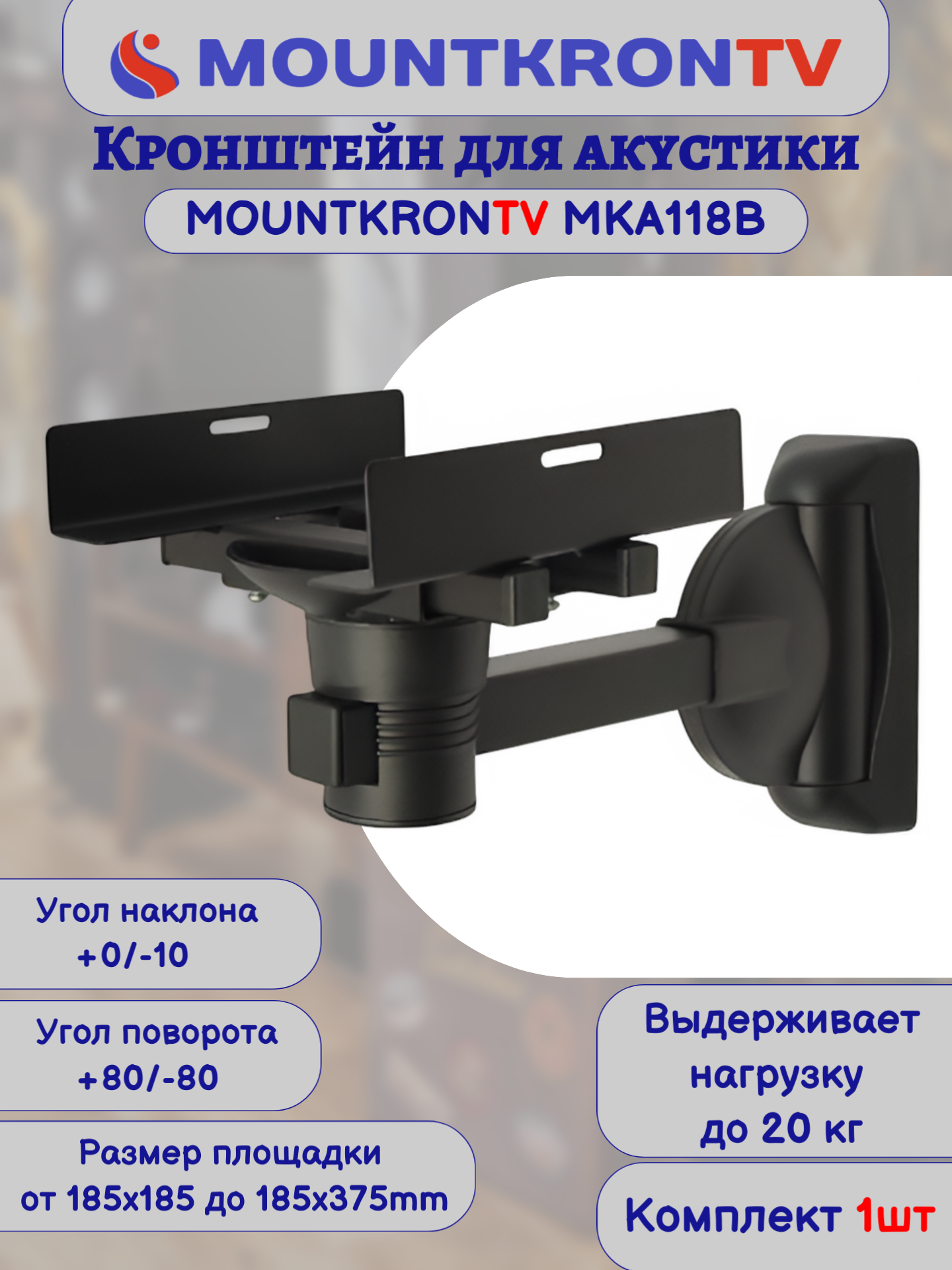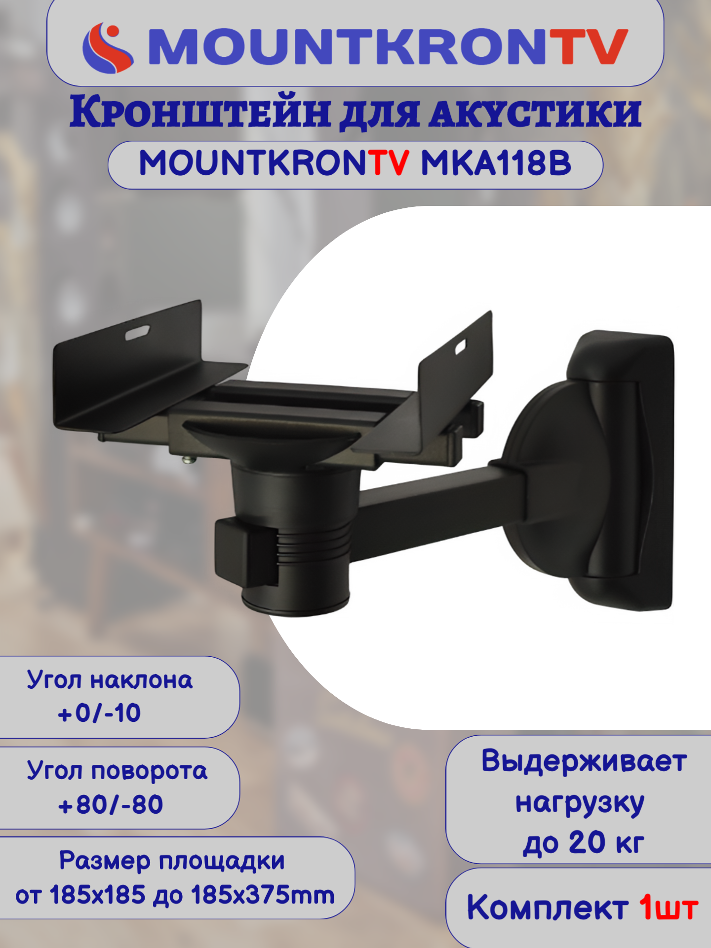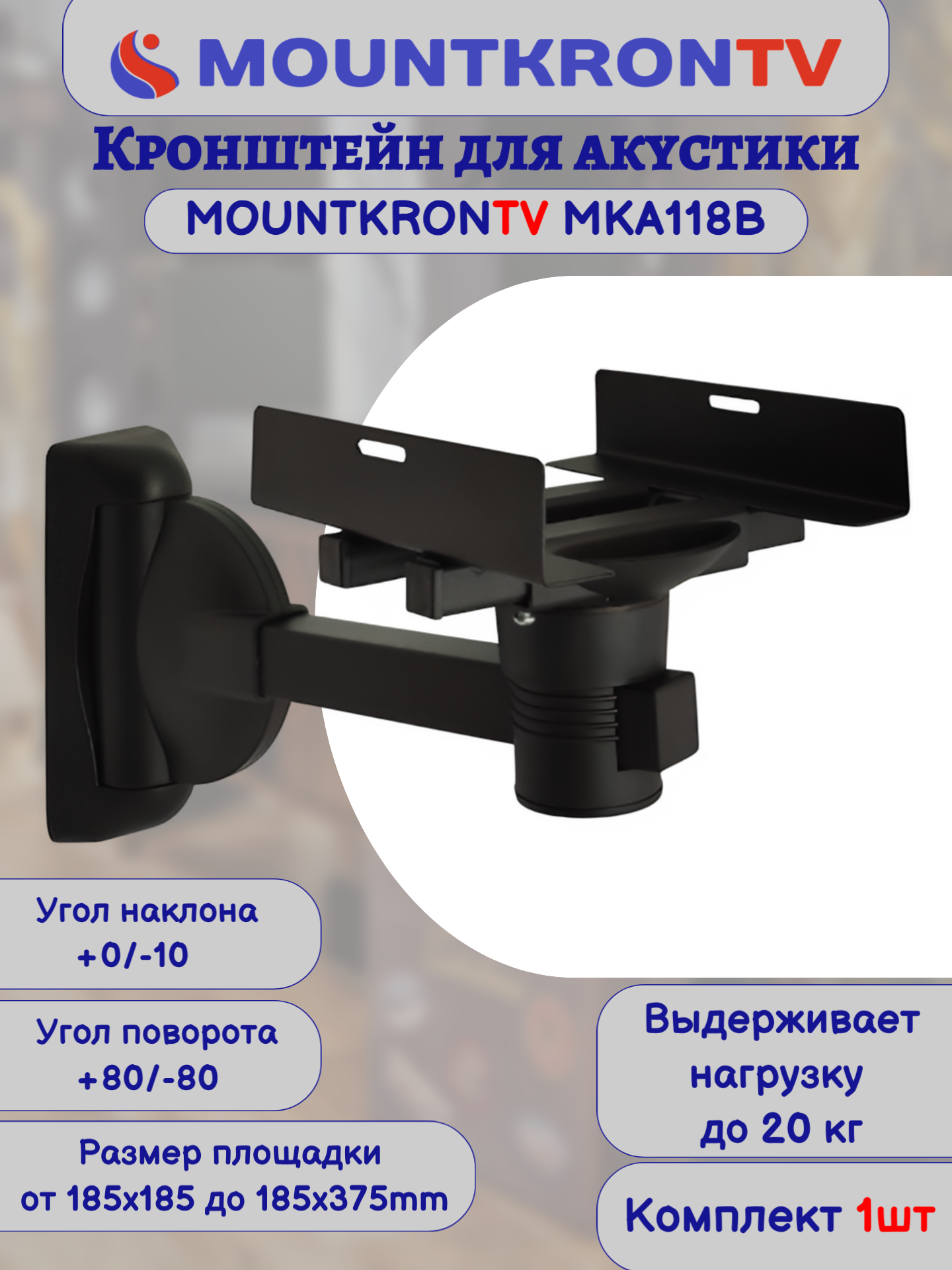 Кронштейн для акустики MOUNTKRONTV MKA118B на стену, наклонно-поворотный, черный интересное: