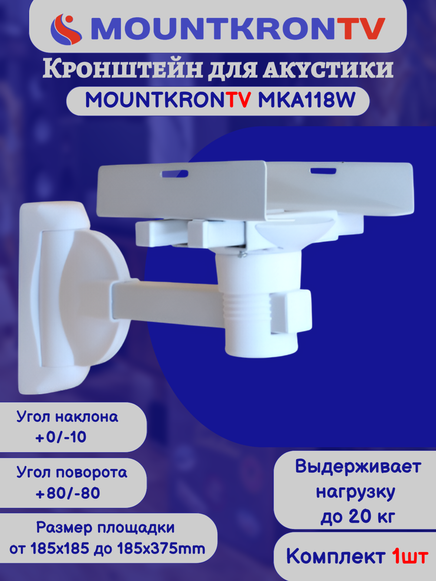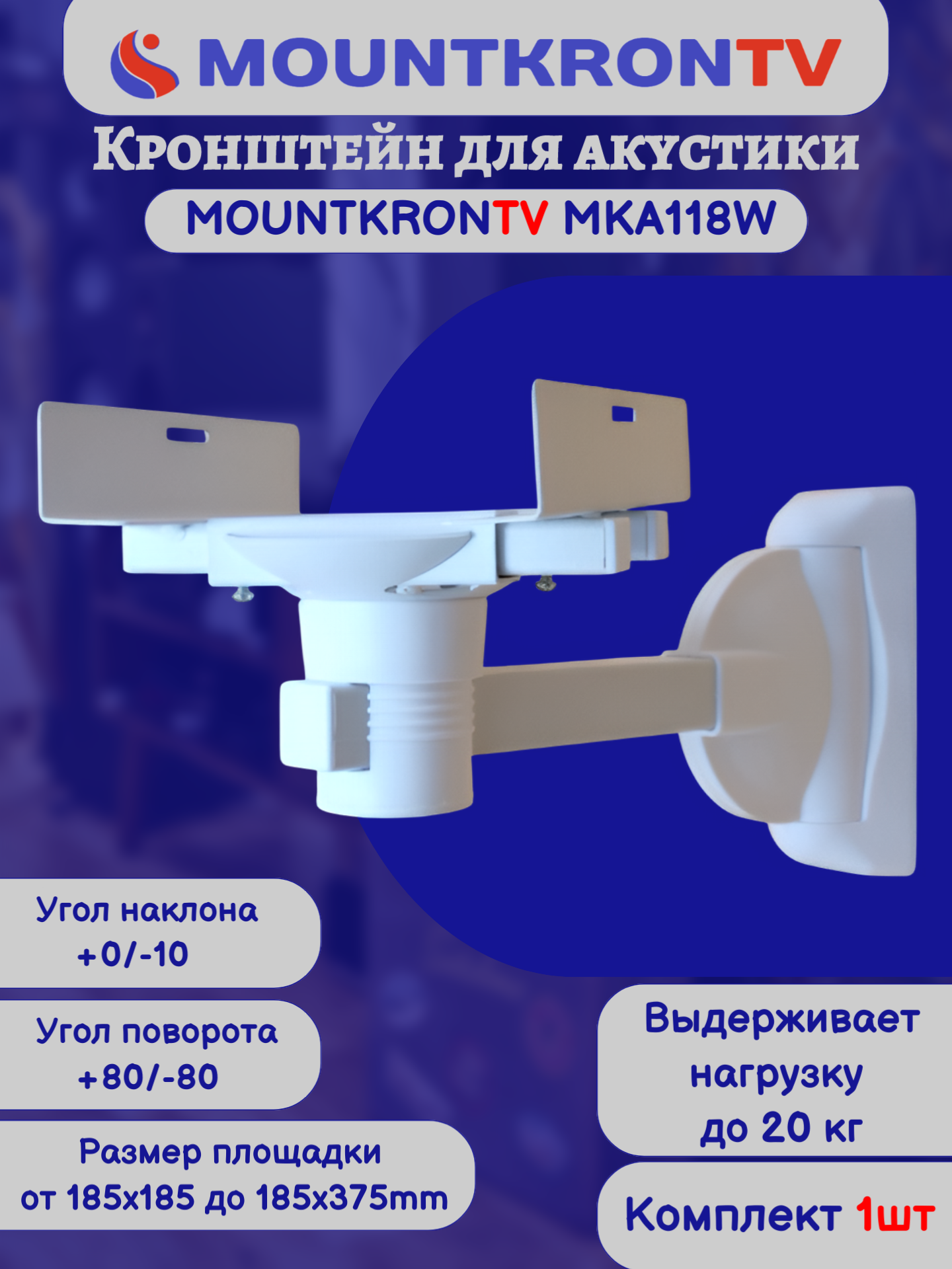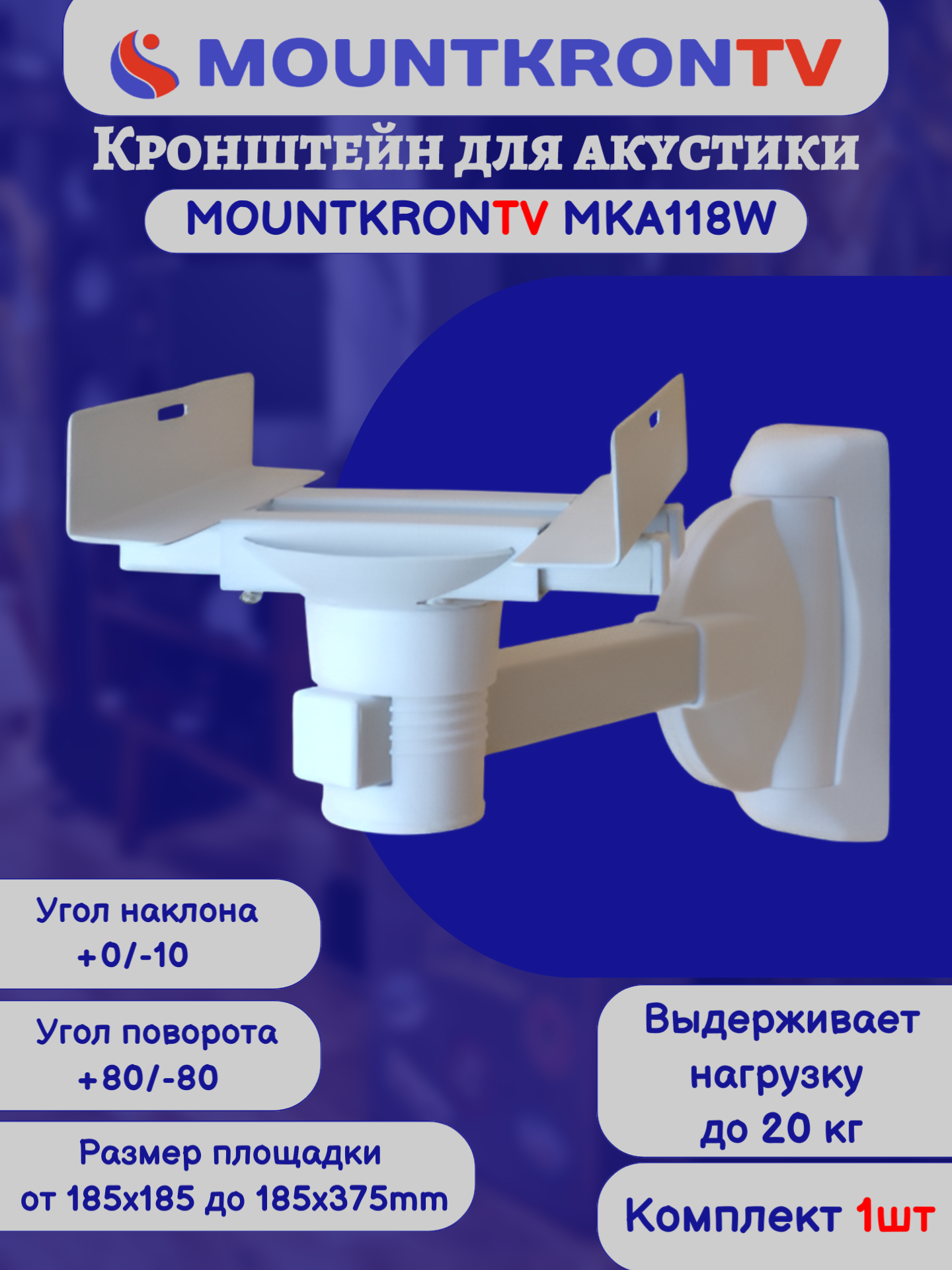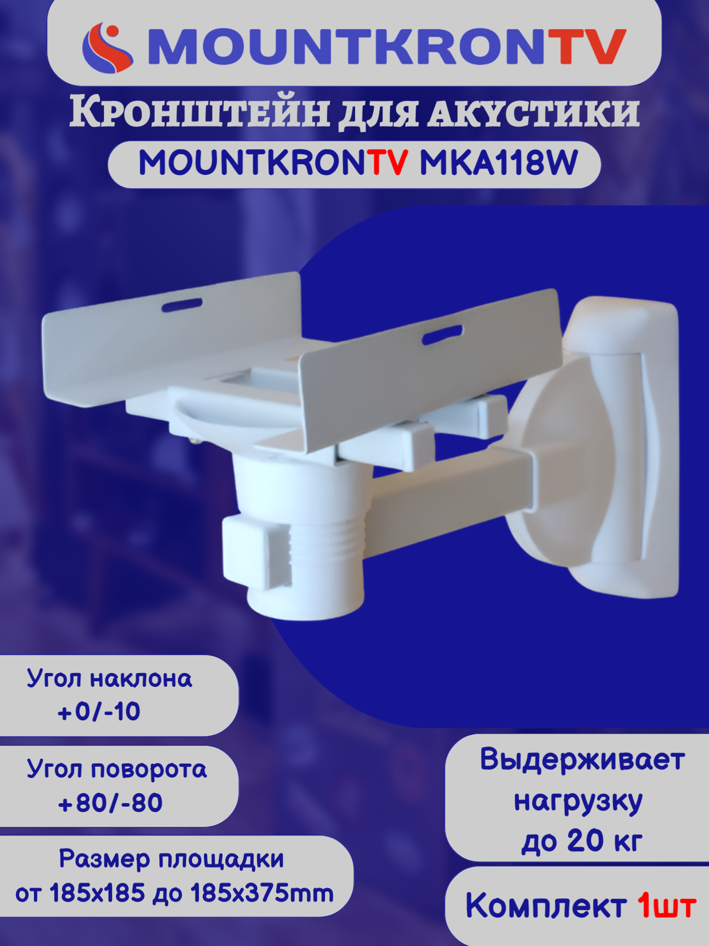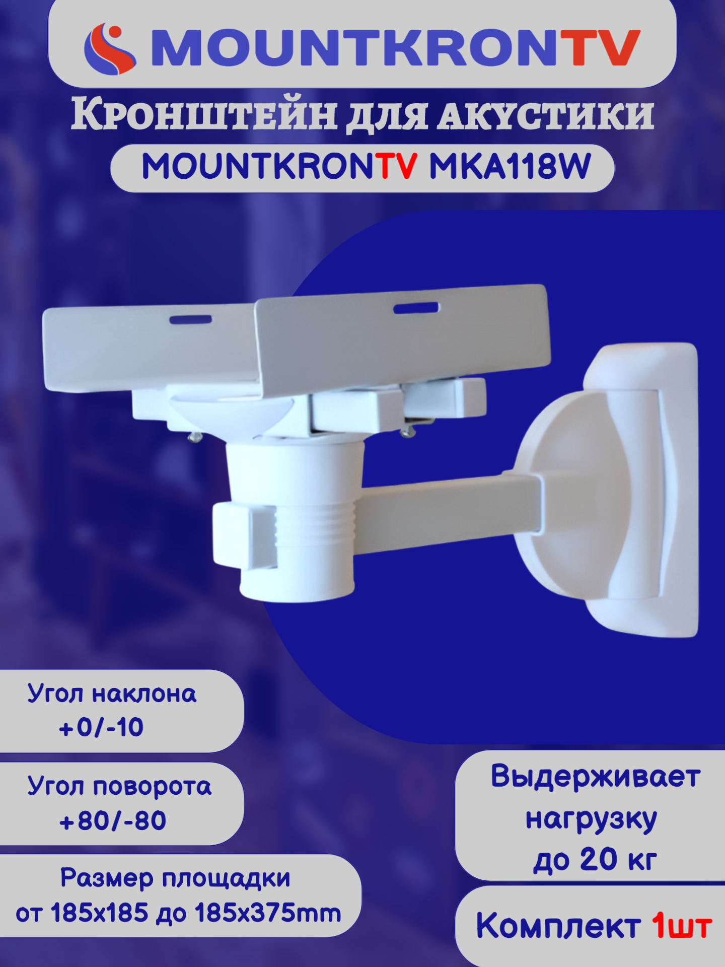 Кронштейн для акустики MOUNTKRONTV MKA118W на стену, наклонно-поворотный, белый интересное: