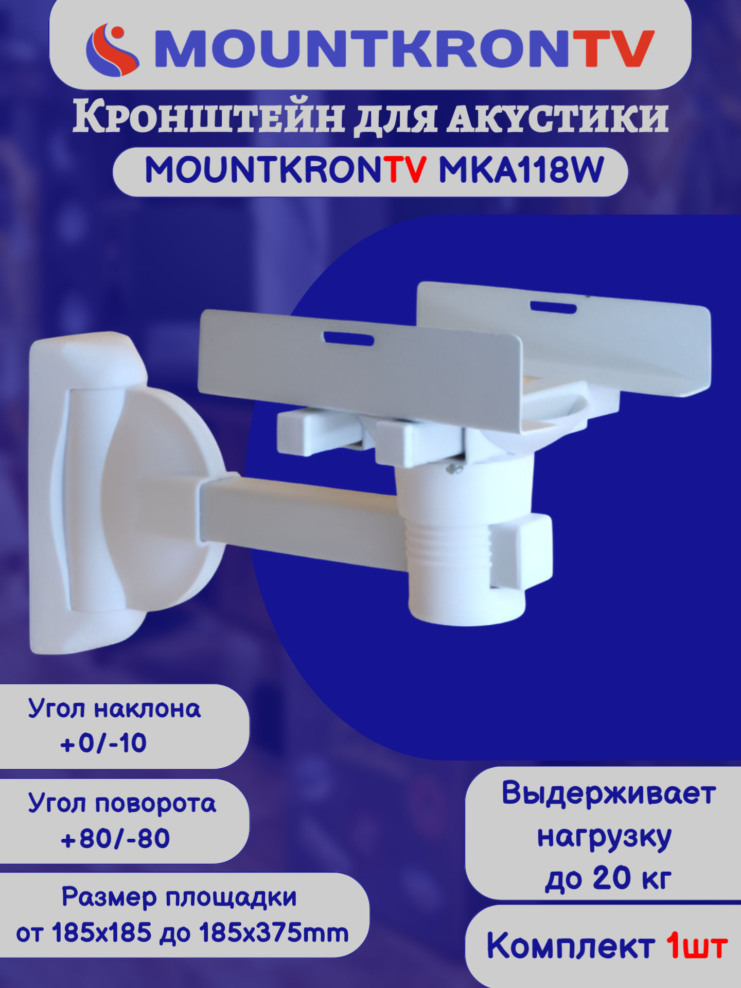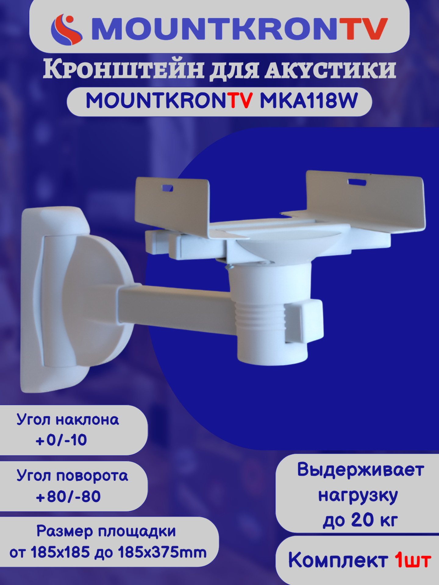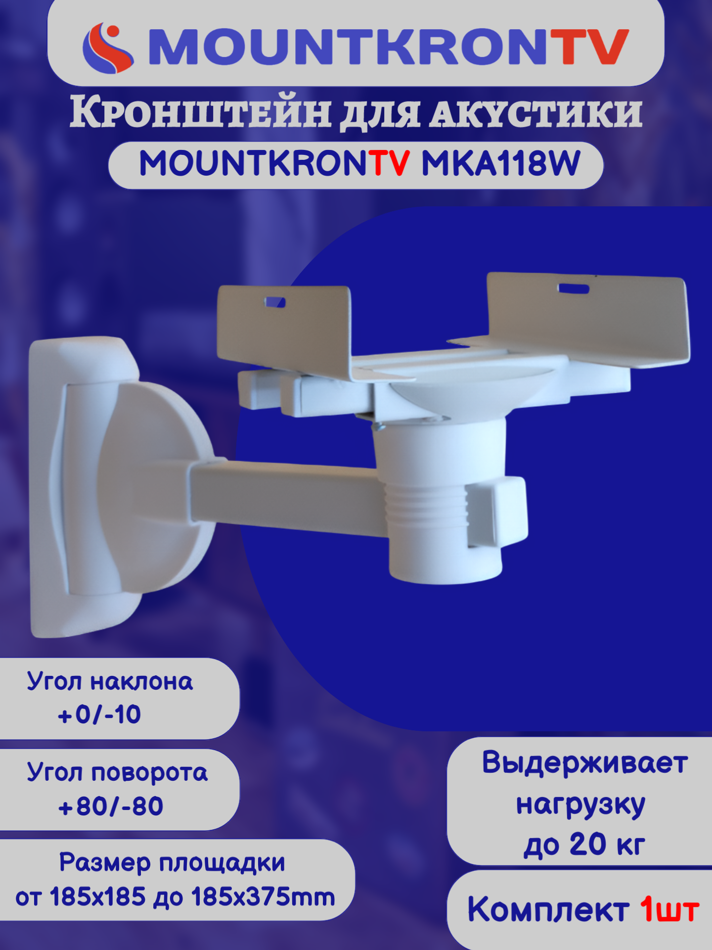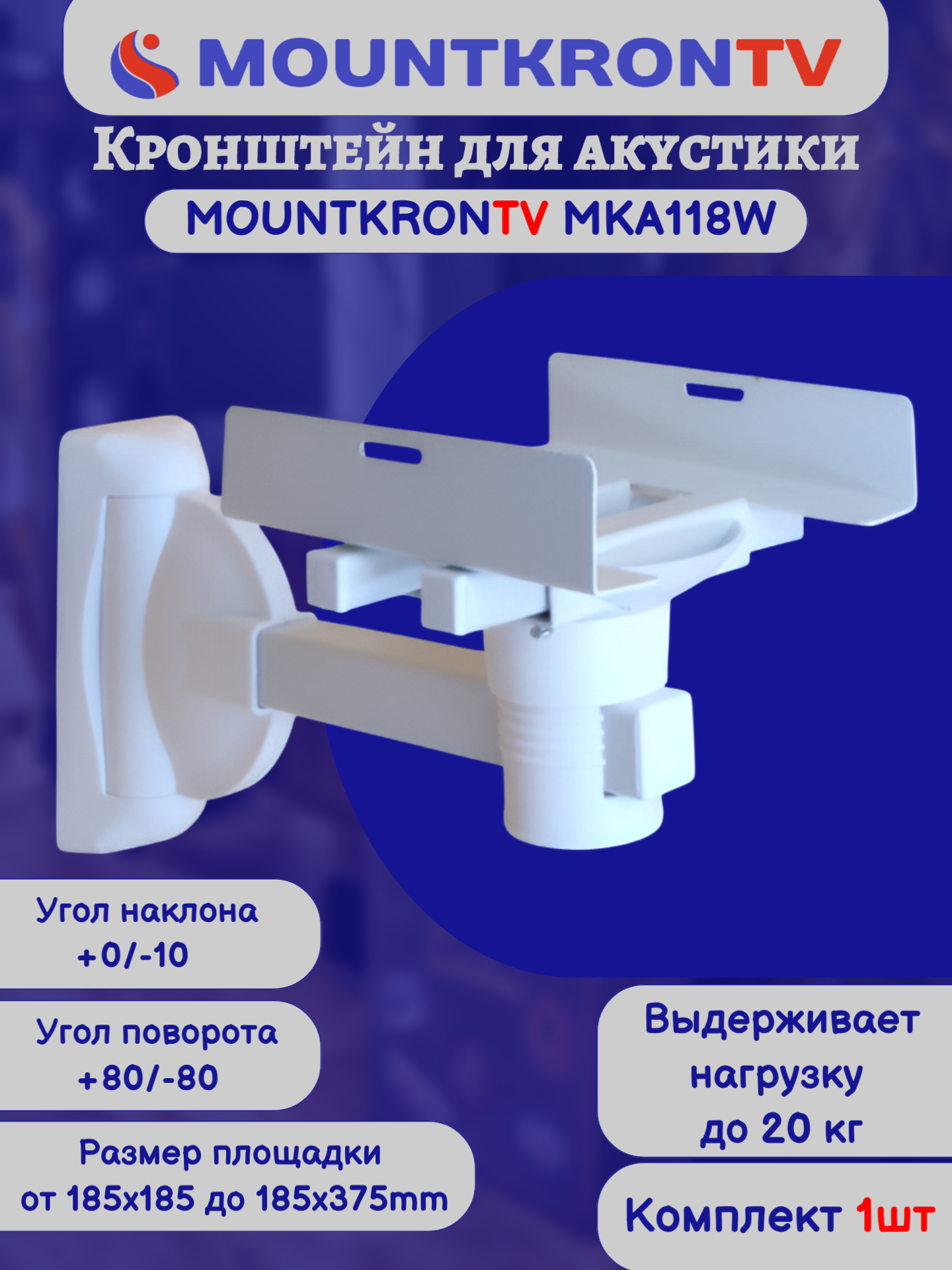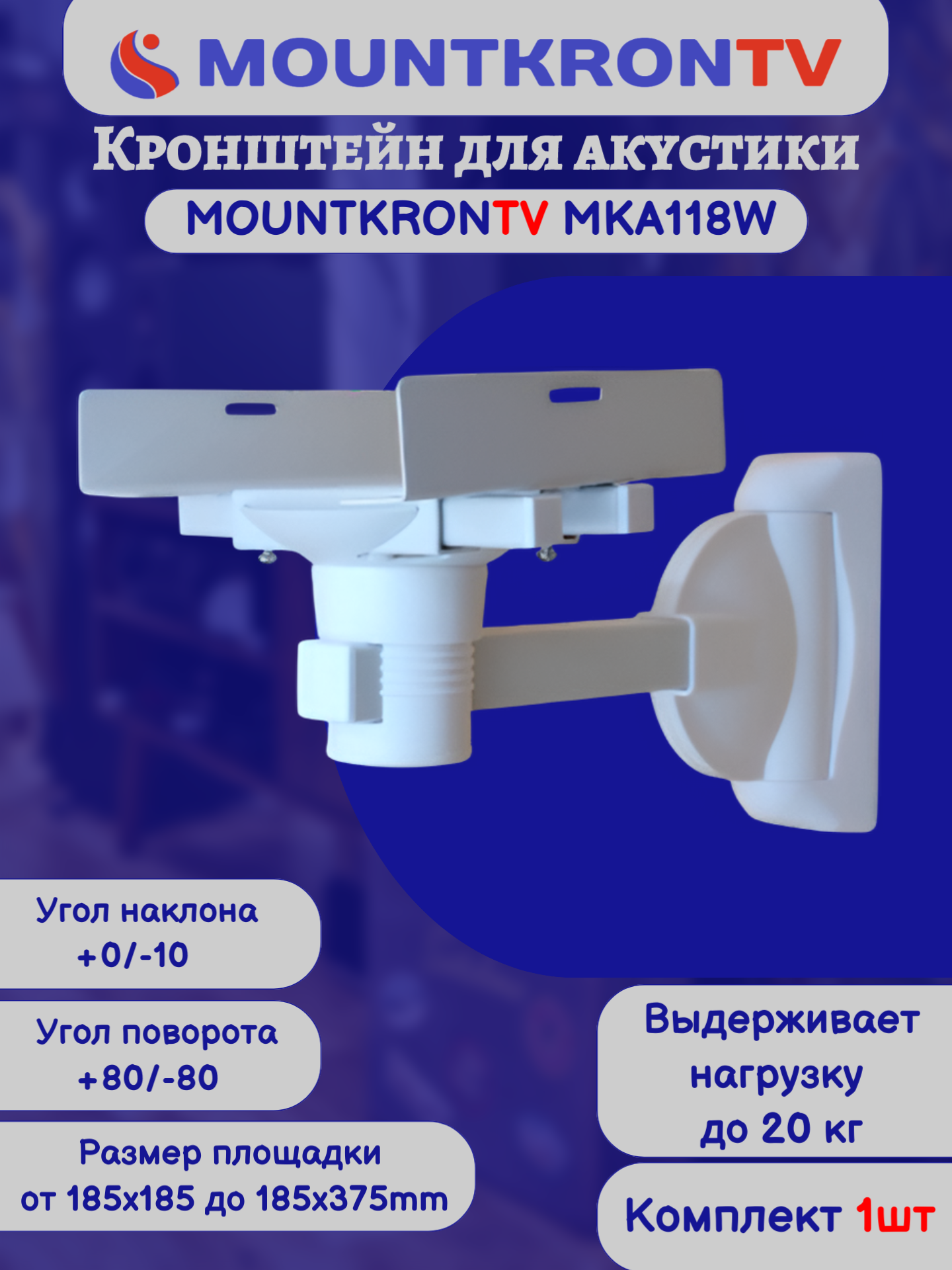 Кронштейн для акустики MOUNTKRONTV MKA118W на стену, наклонно-поворотный, белый интересное: