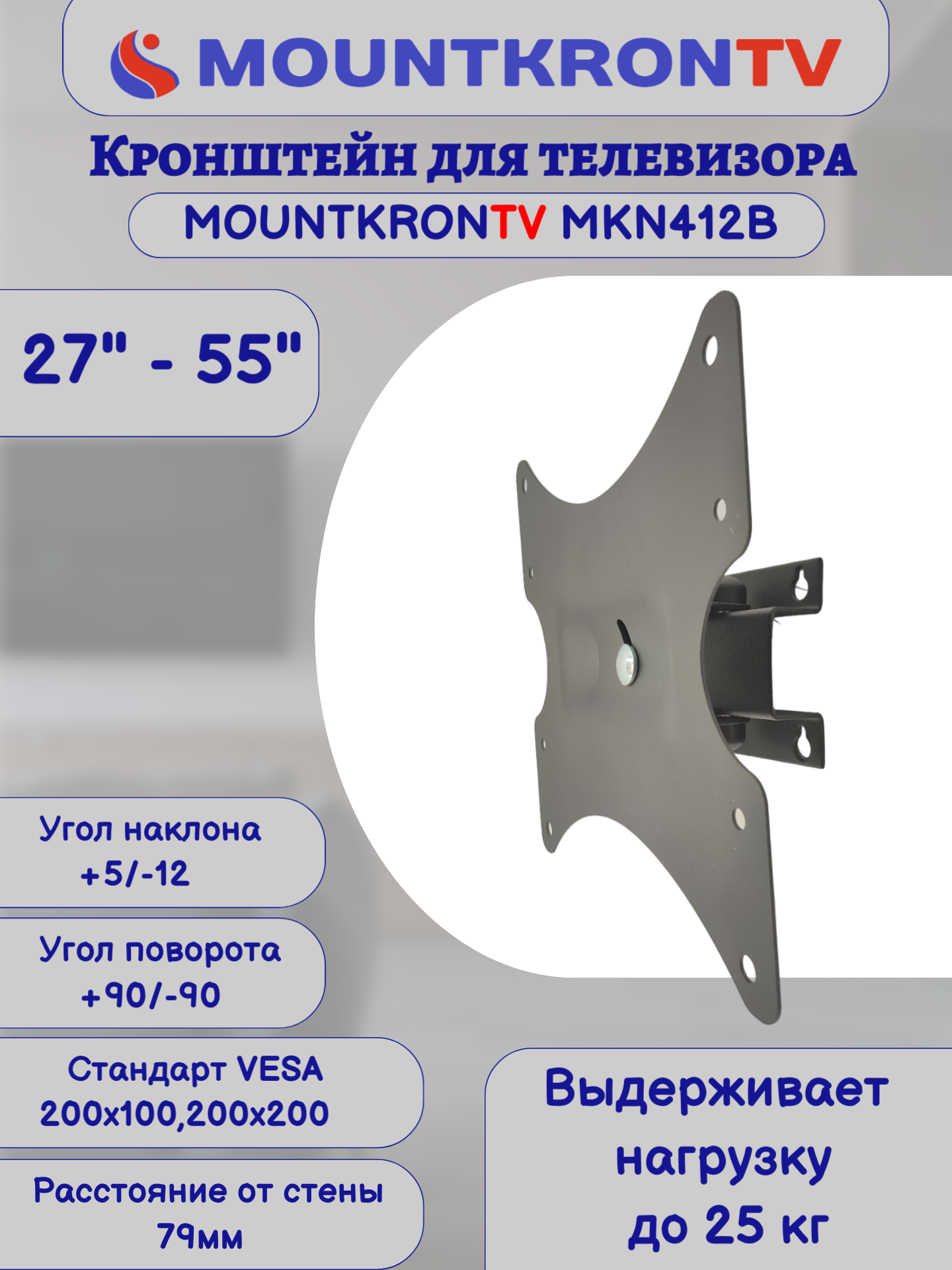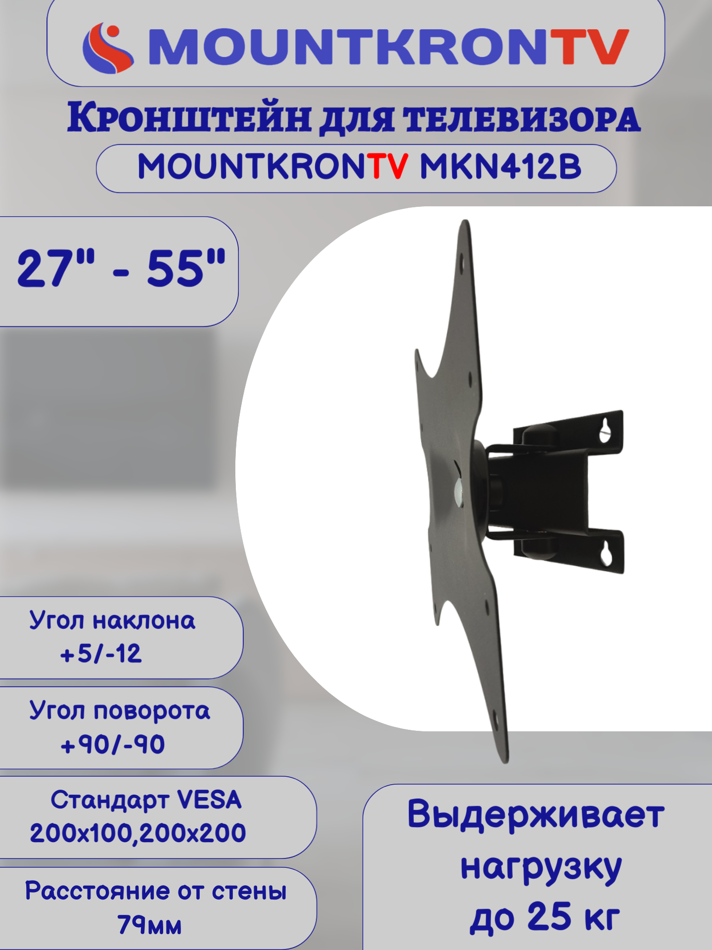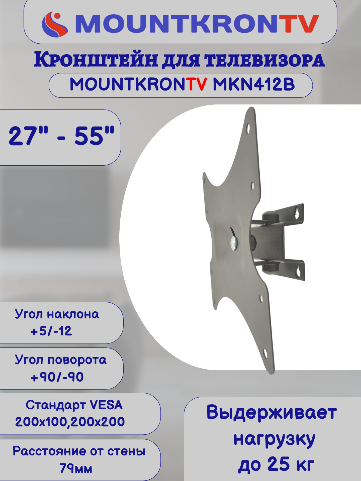 Кронштейн для телевизора MOUNTKRONTV MKN412B на стену, наклонно-поворотный, диагональ 27"-55", черный интересное: