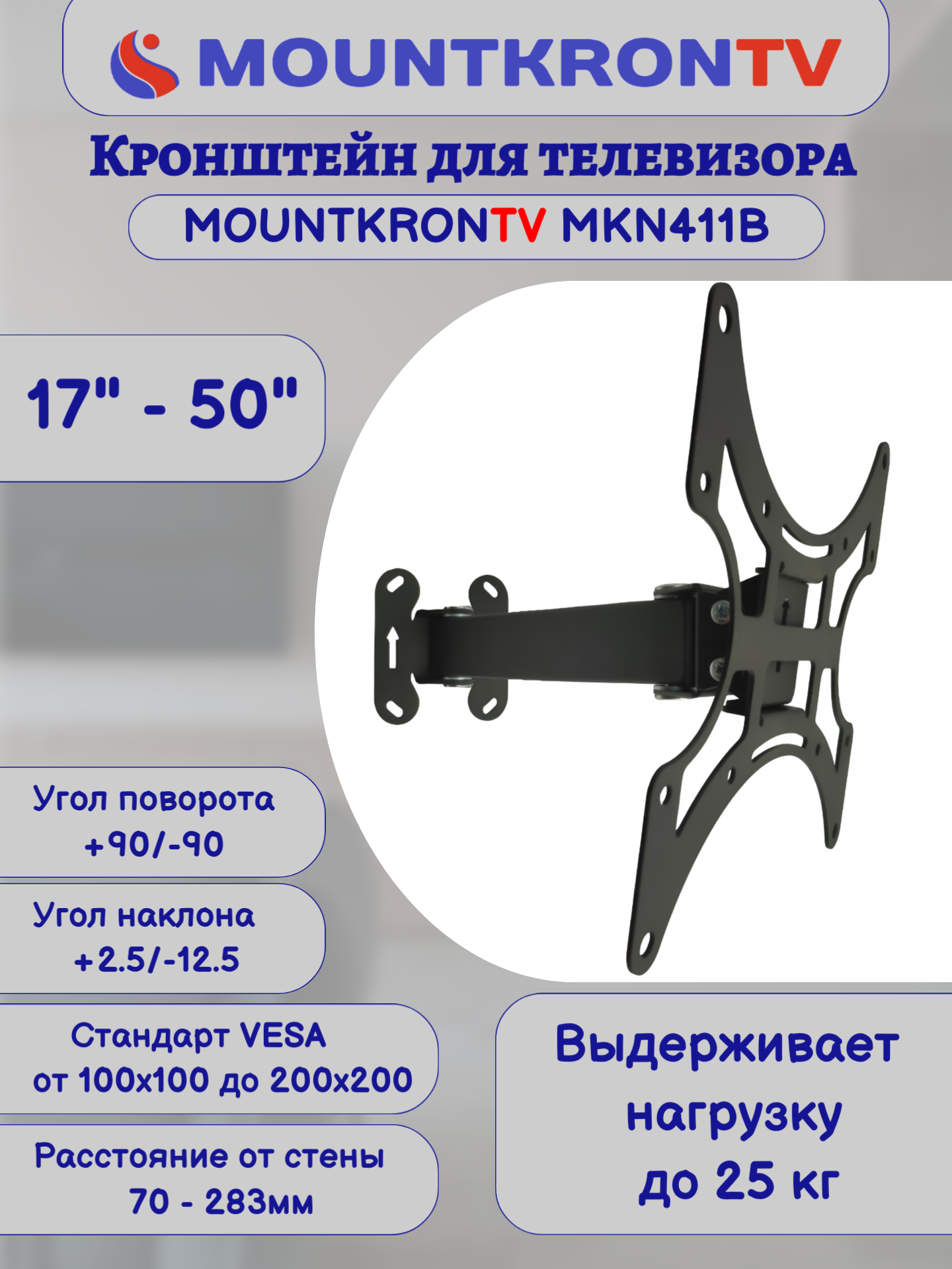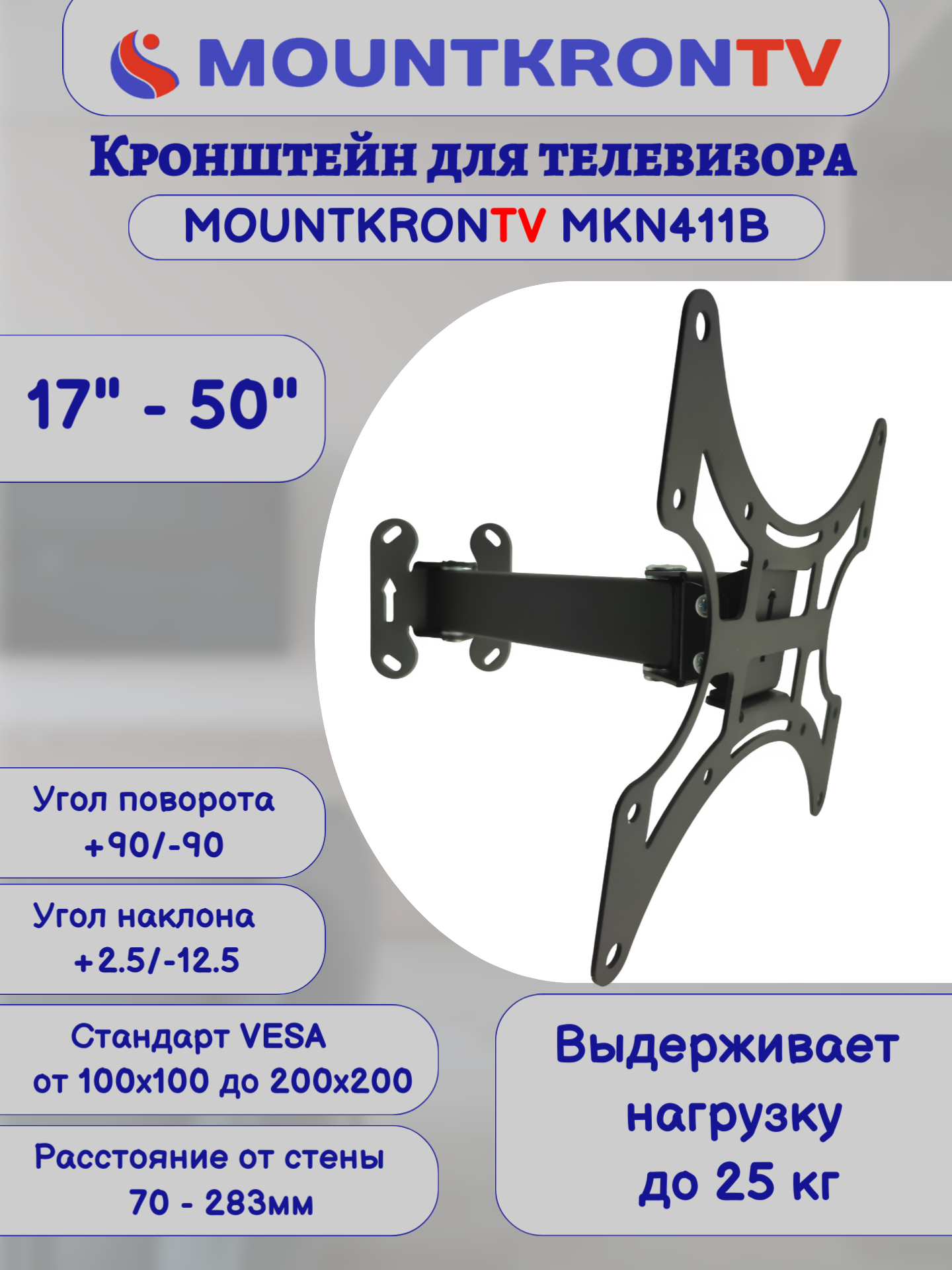 Кронштейн для телевизора MOUNTKRONTV MKN411B на стену, наклонно-поворотный, диагональ 17"-50", черный интересное: