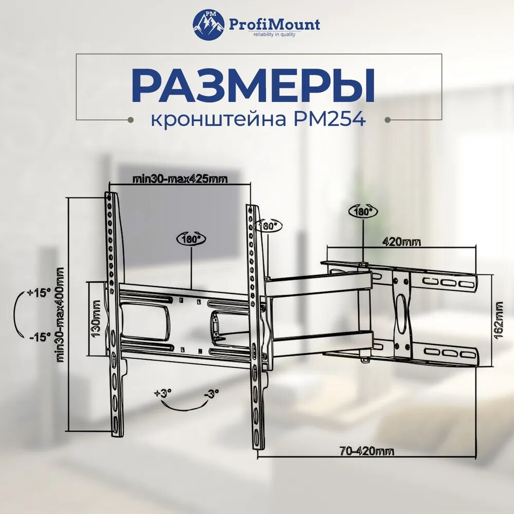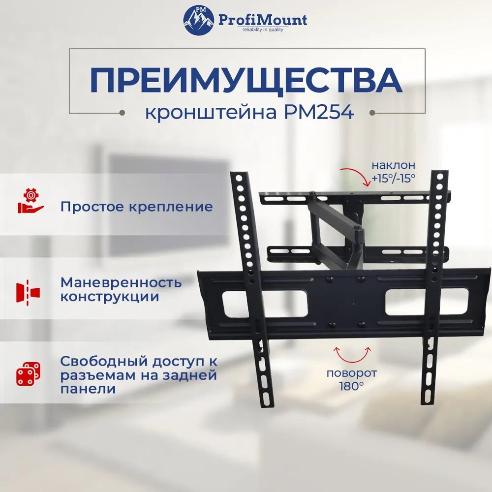 Кронштейн для телевизора ProfiMount PM254 Black (VESA 400x400, 37-55", до 30 кг) интересное: