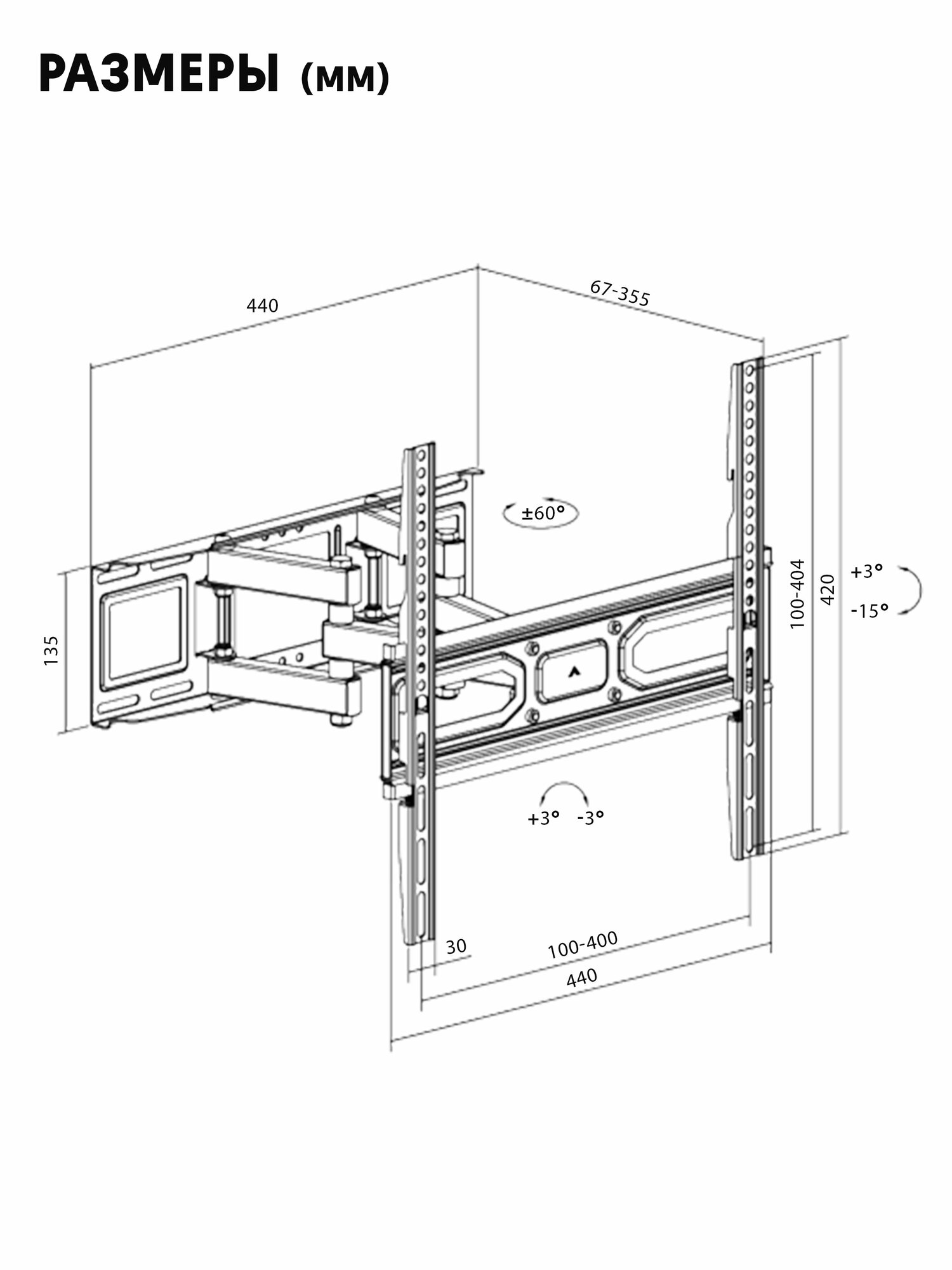 Кронштейн для телевизора на стену поворотный Godoo 32"-70" дюймов GD78-446 интересное: