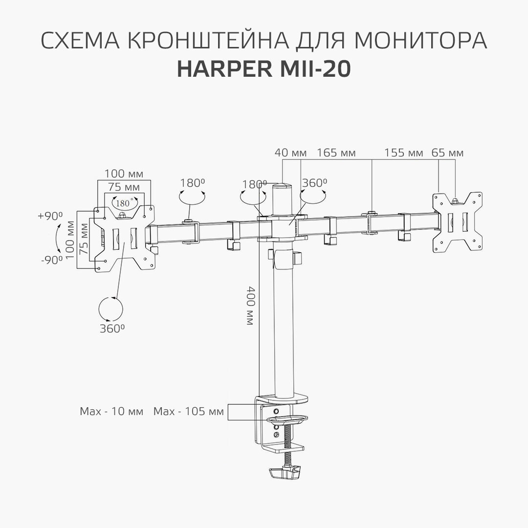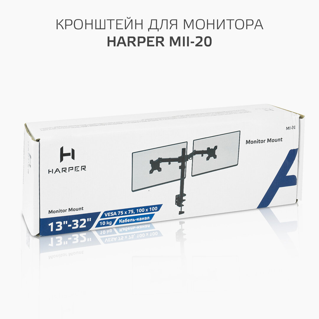 Купить Кронштейн для двух мониторов HARPER MII-20, от 13"-32", черный