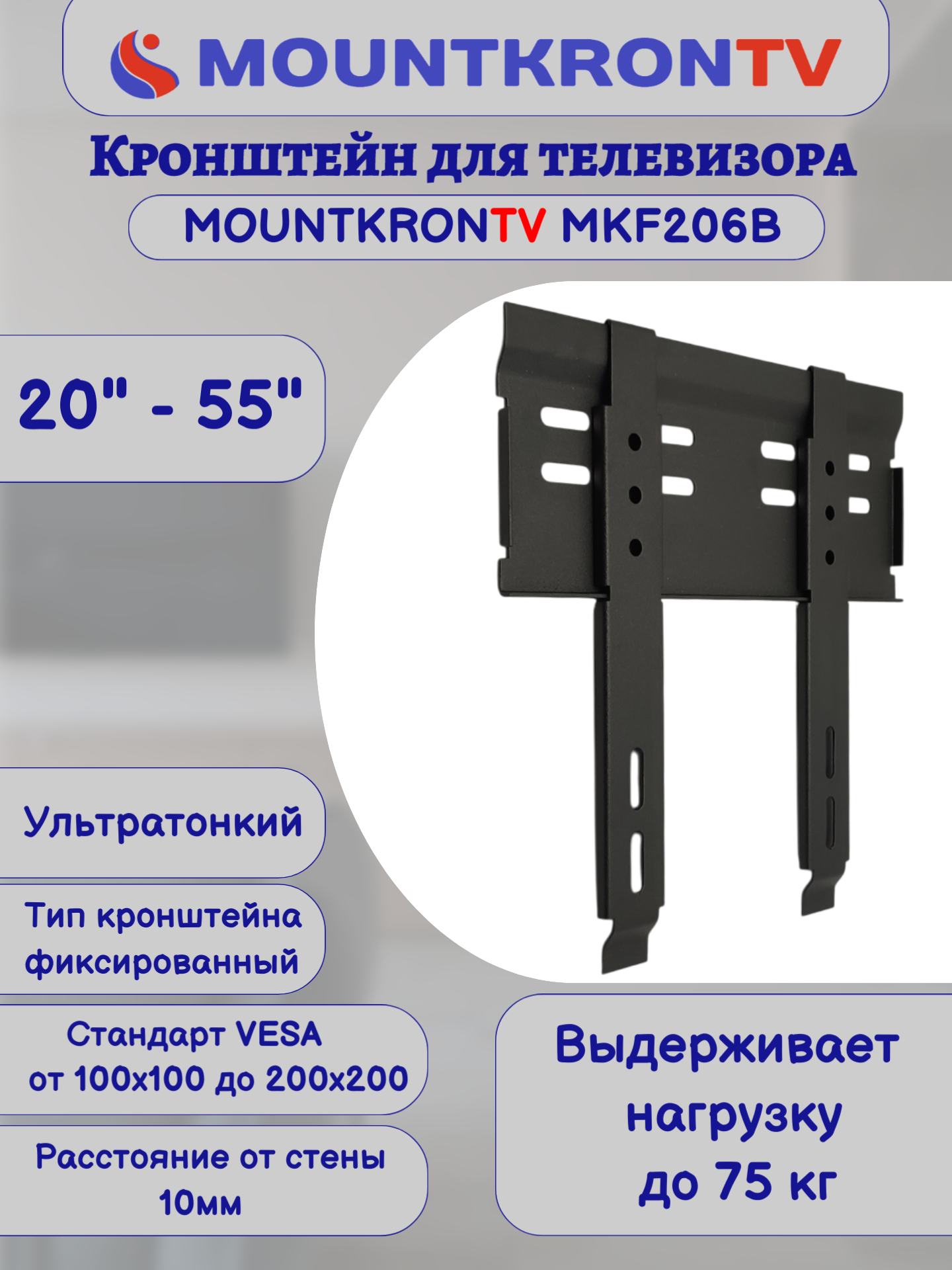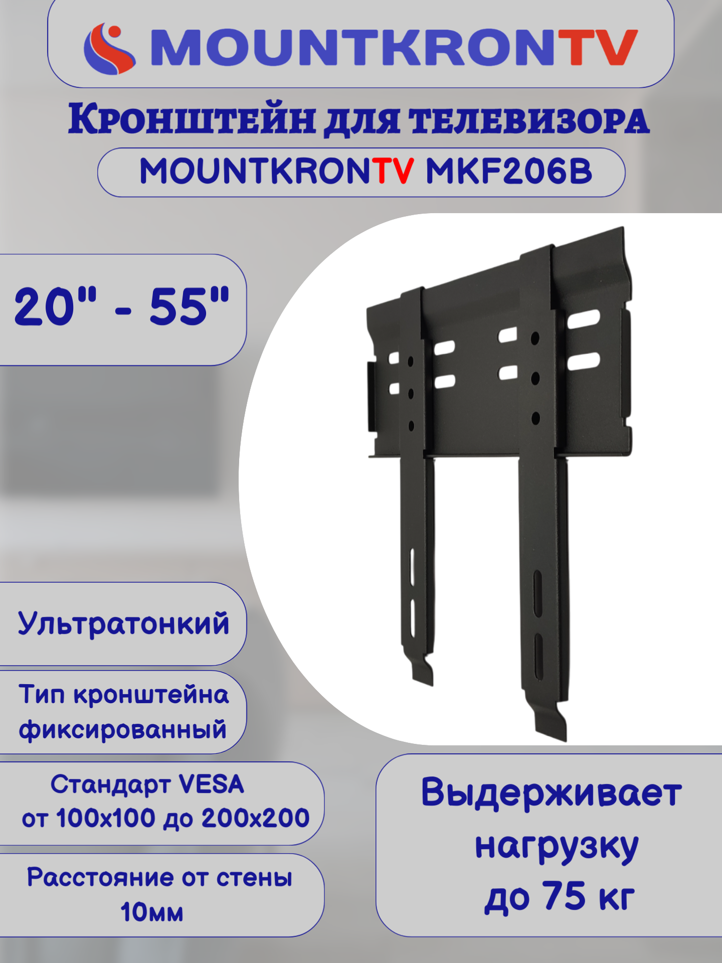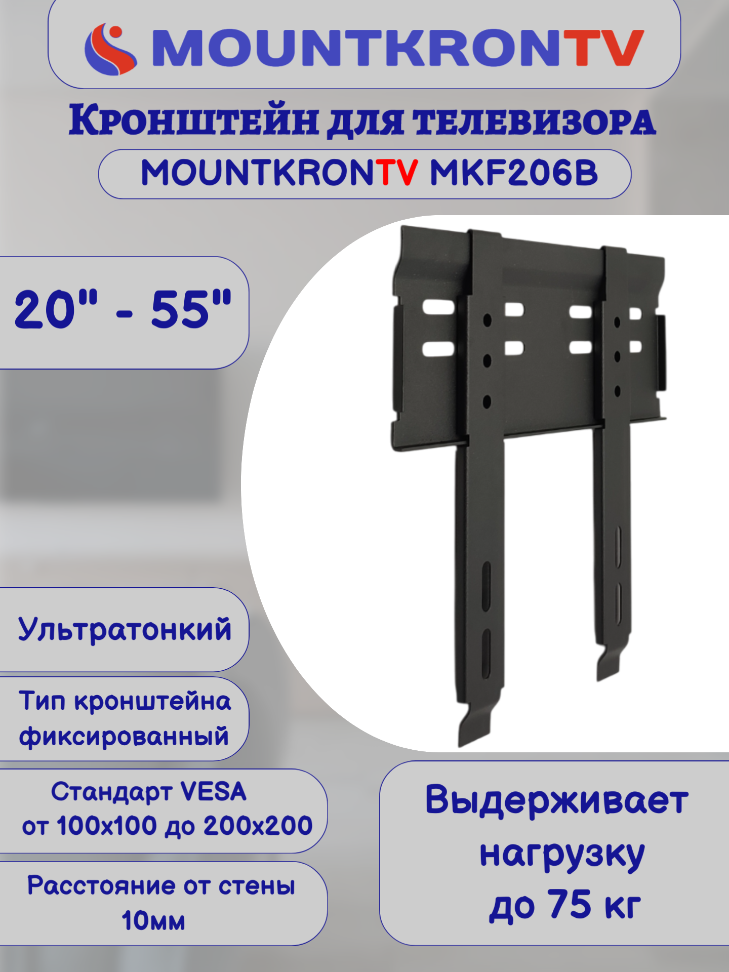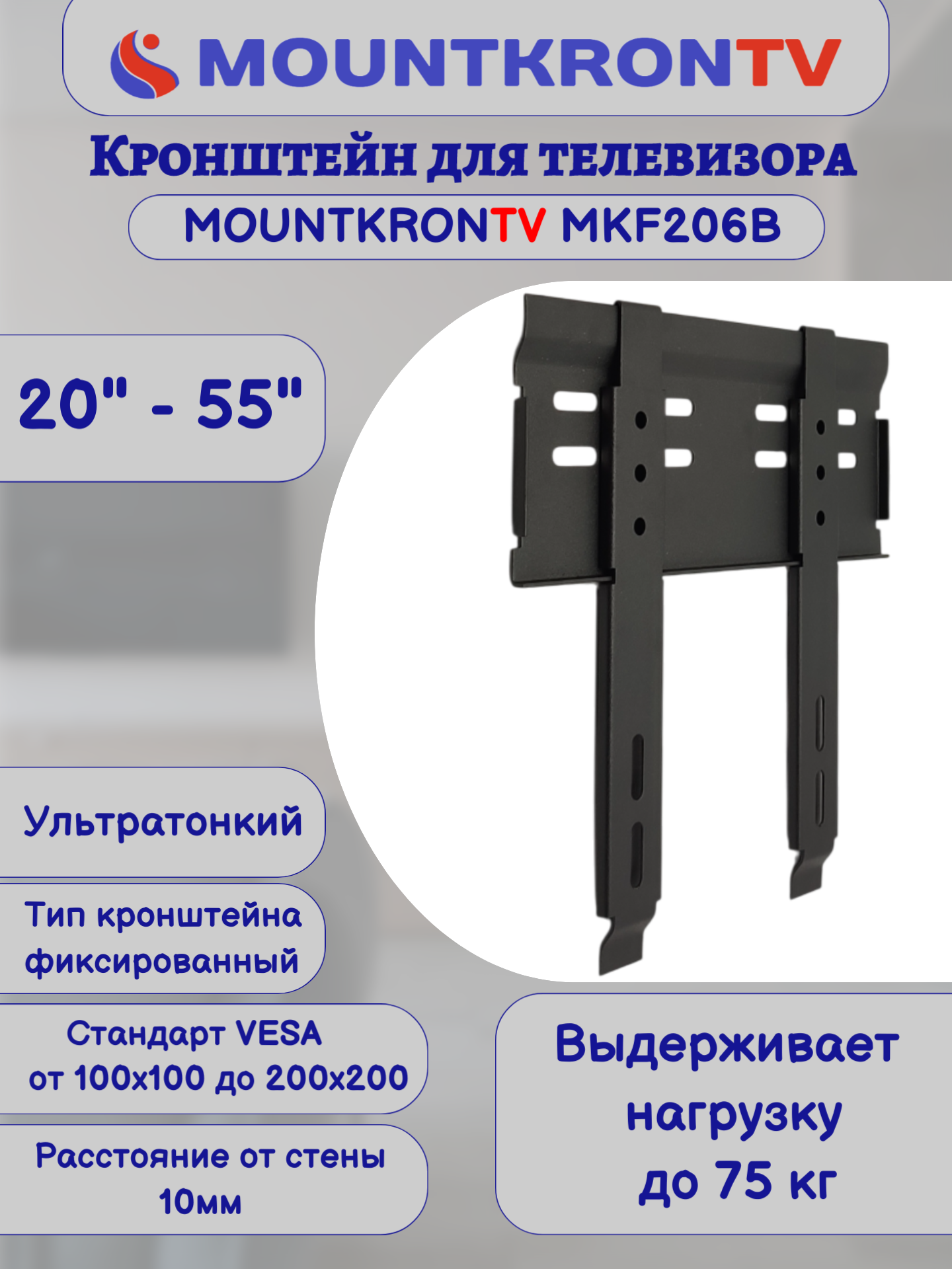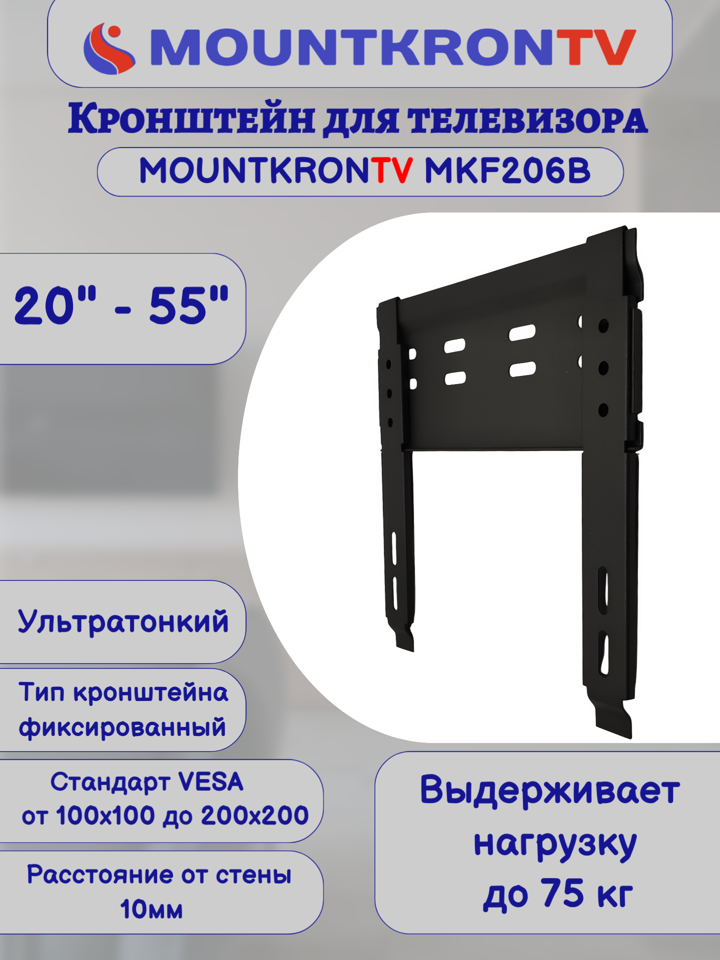 Кронштейн для телевизора MOUNTKRONTV MKF206B черный, на стену, фиксированный, диагональ 20"-55" интересное: