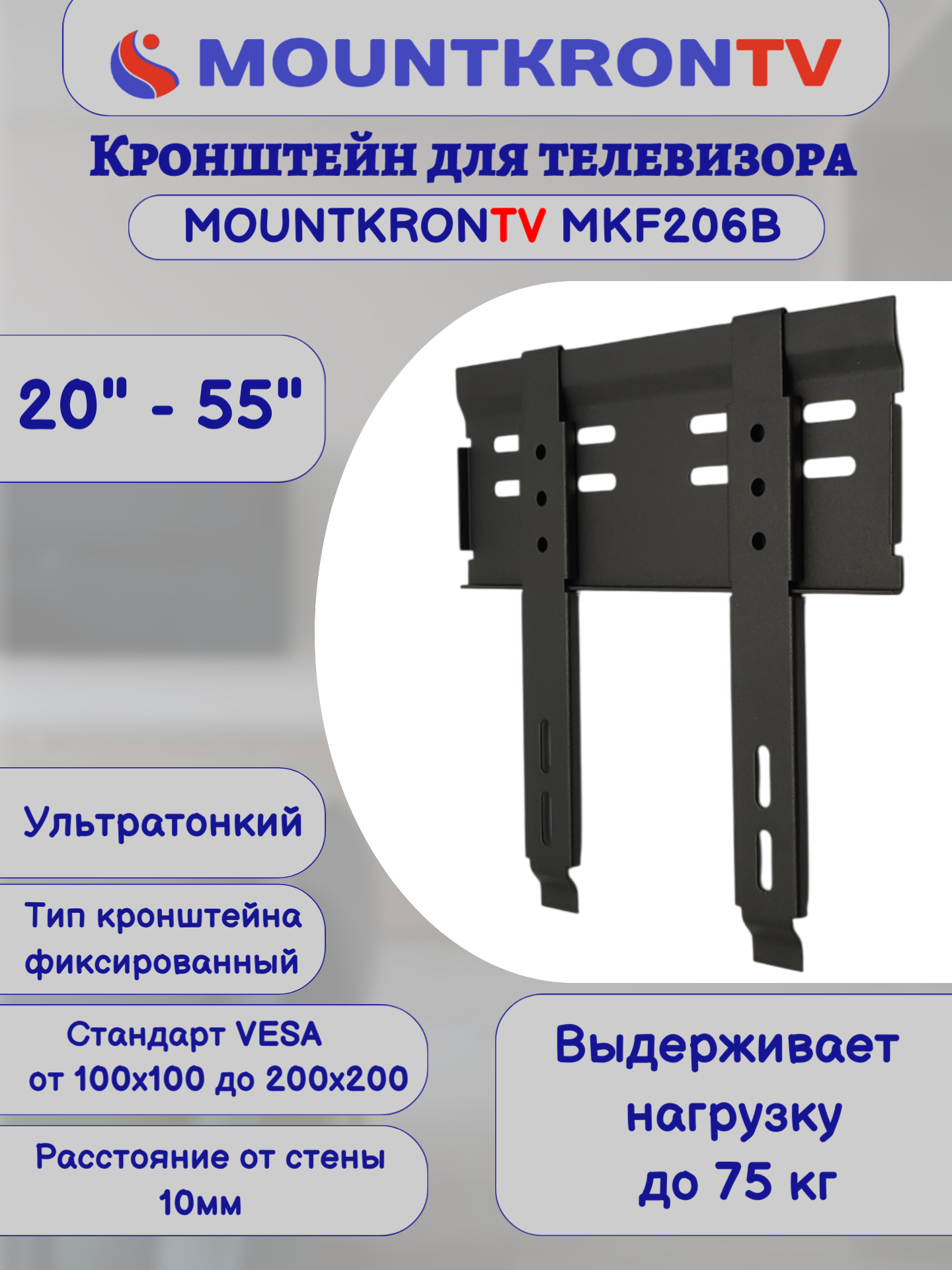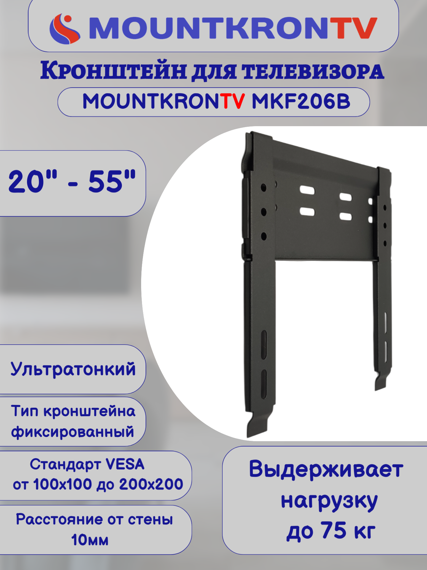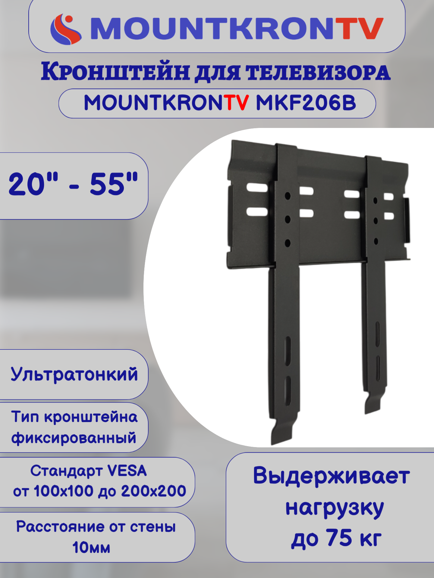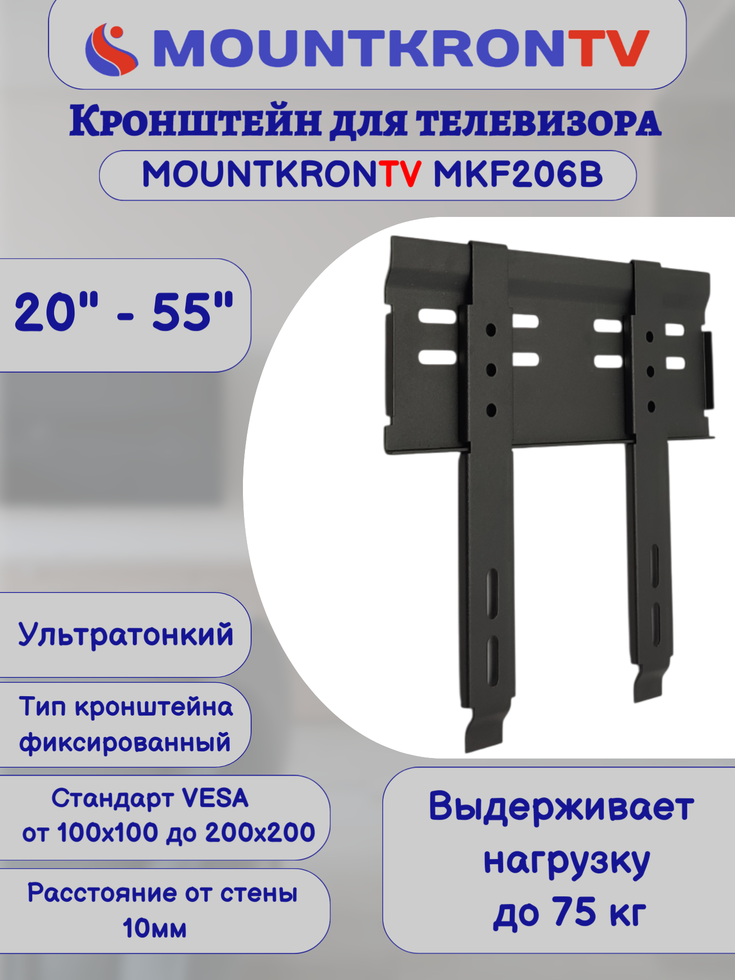 Кронштейн для телевизора MOUNTKRONTV MKF206B черный, на стену, фиксированный, диагональ 20"-55" интересное: