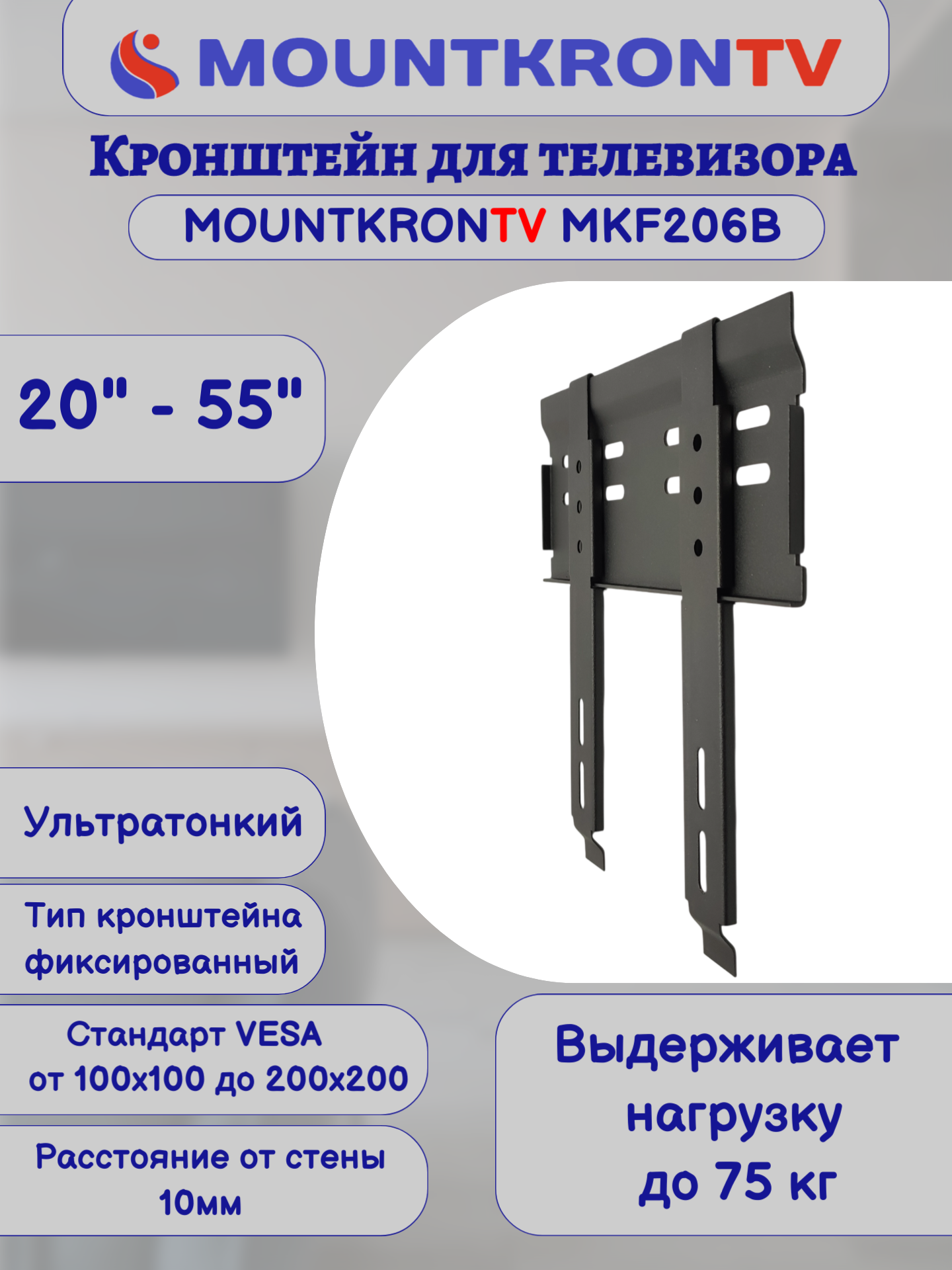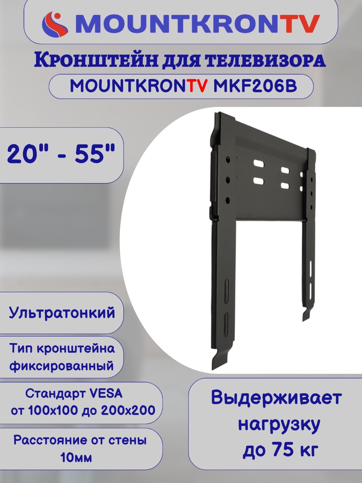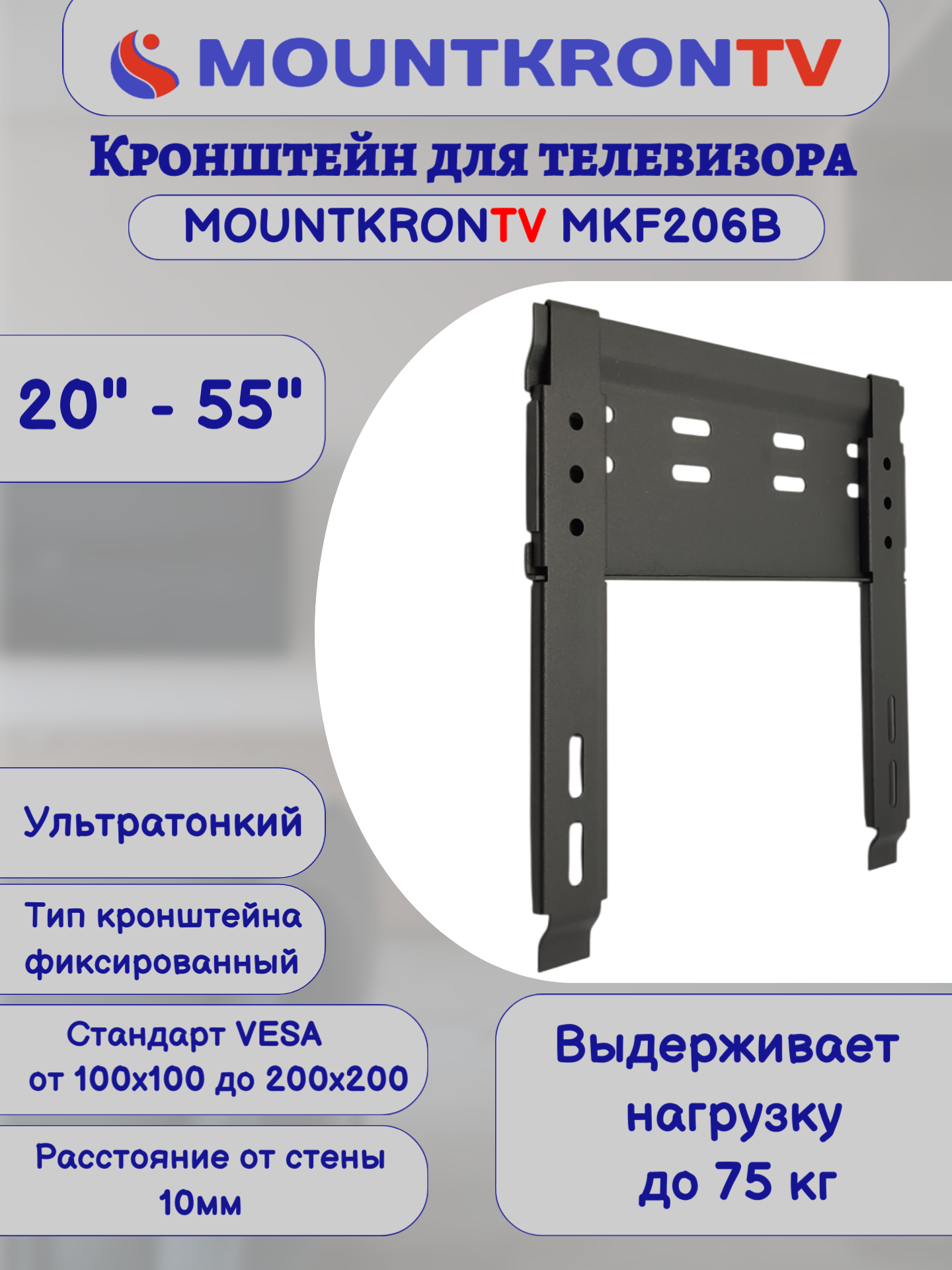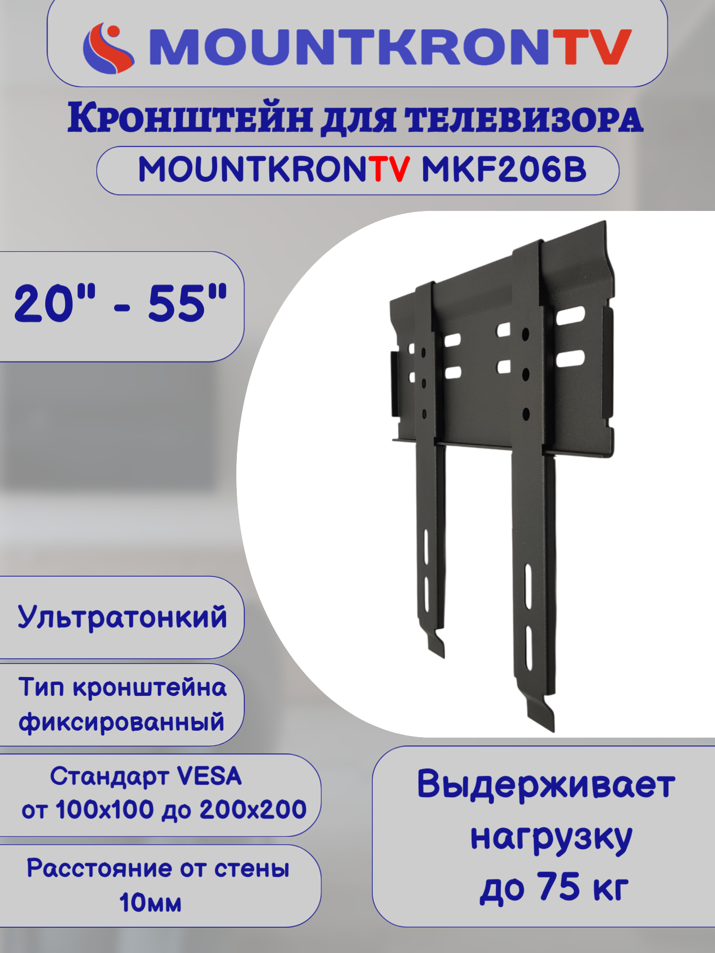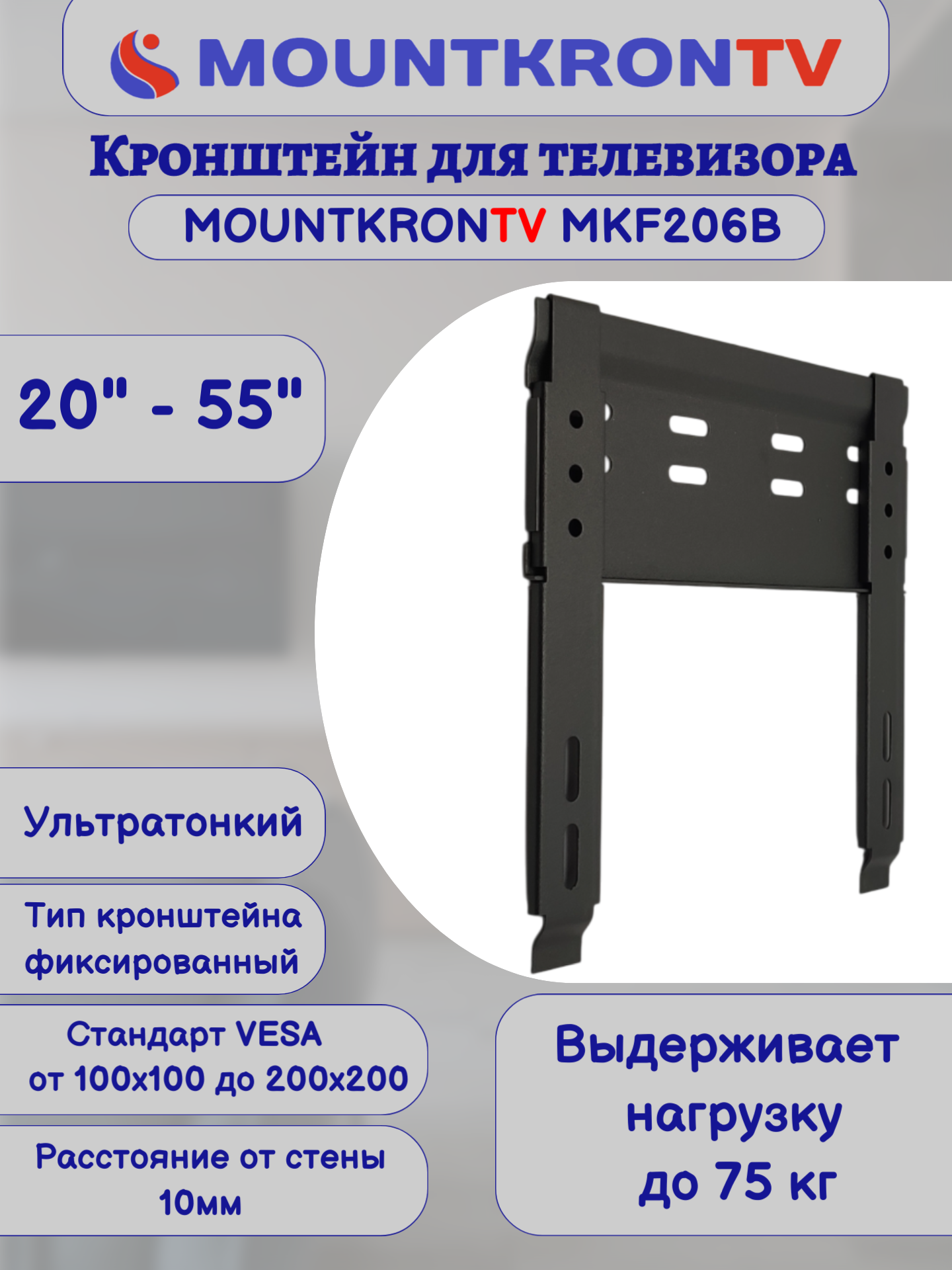 Кронштейн для телевизора MOUNTKRONTV MKF206B черный, на стену, фиксированный, диагональ 20"-55" интересное: