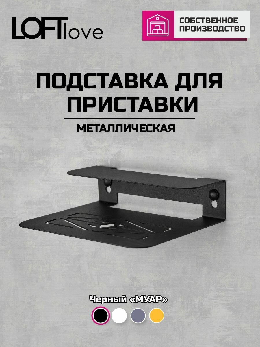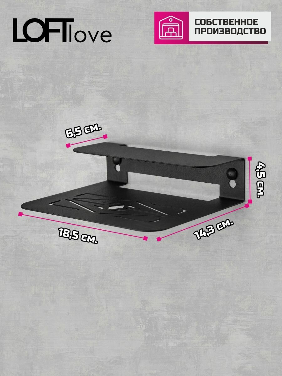 Полка для роутера, подставка для ТВ приставки, колонки 25х15х5 металл чёрная