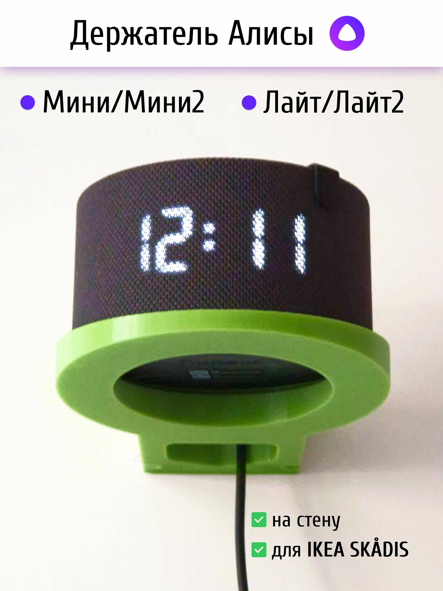 Держатель/кронштейн (салатовый) для Яндекс Станция (Алиса) мини/мини2/лайт (на стену или ikea skadis) интересное: