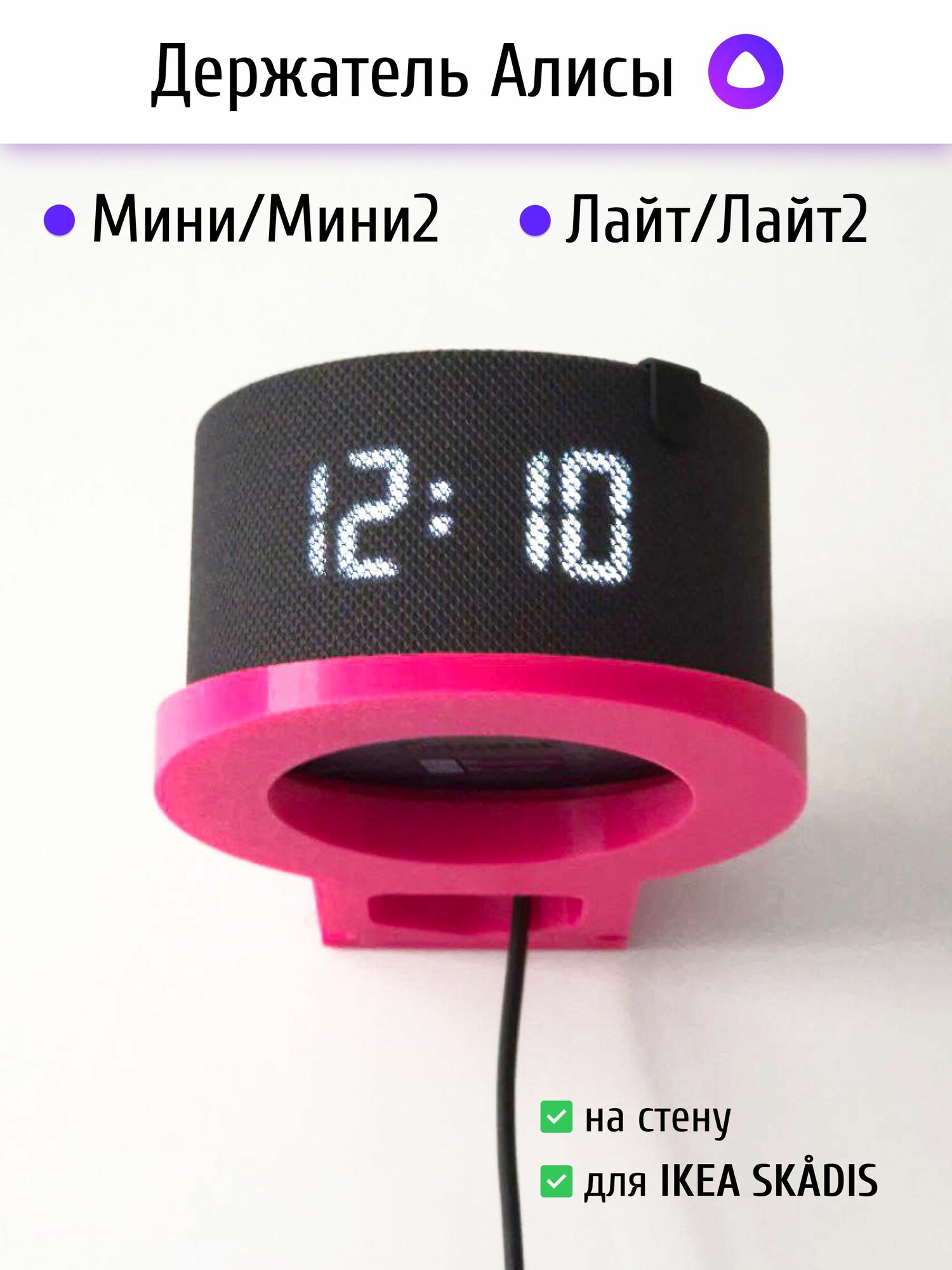 Держатель/кронштейн (розовый) для Яндекс Станция (Алиса) мини/мини2/лайт (на стену или ikea skadis) интересное: