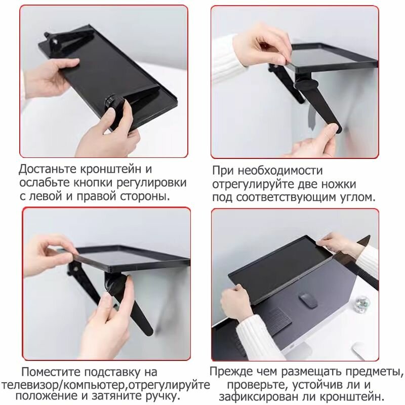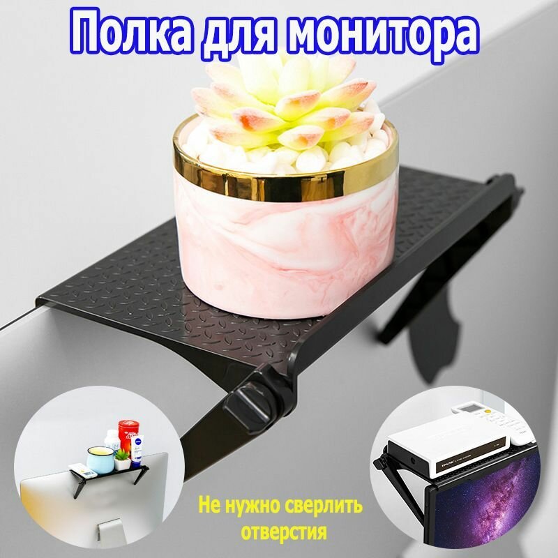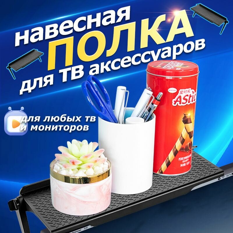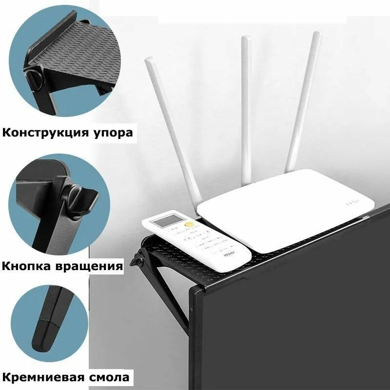 Полка на телевизор для приставки под роутер регулируемая универсальная пластиковая узкая черная подставка, размер MAX 310х12.5х3.5 см интересное: