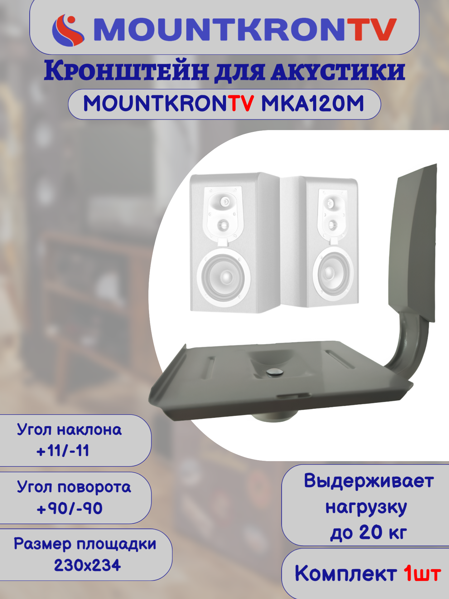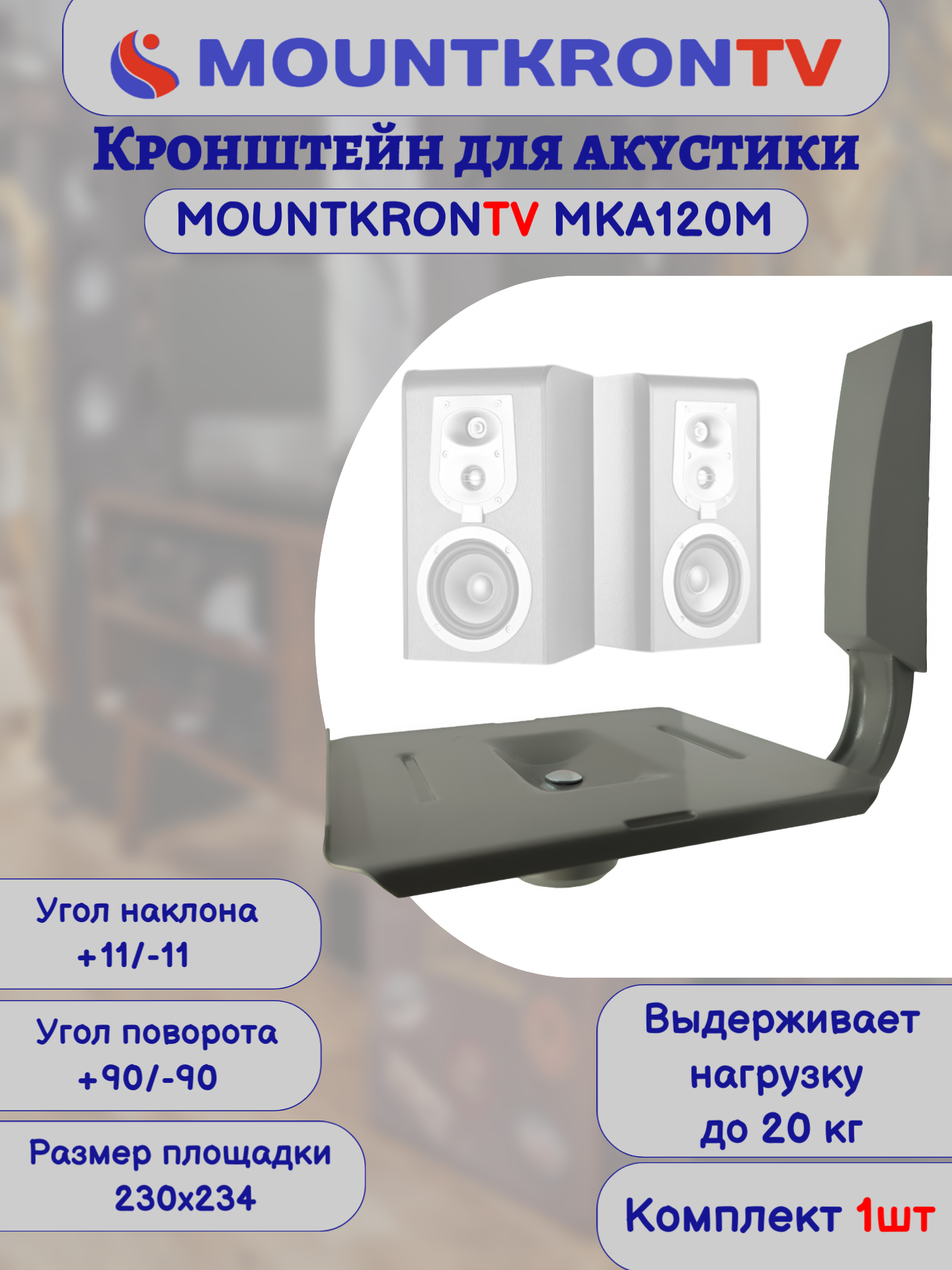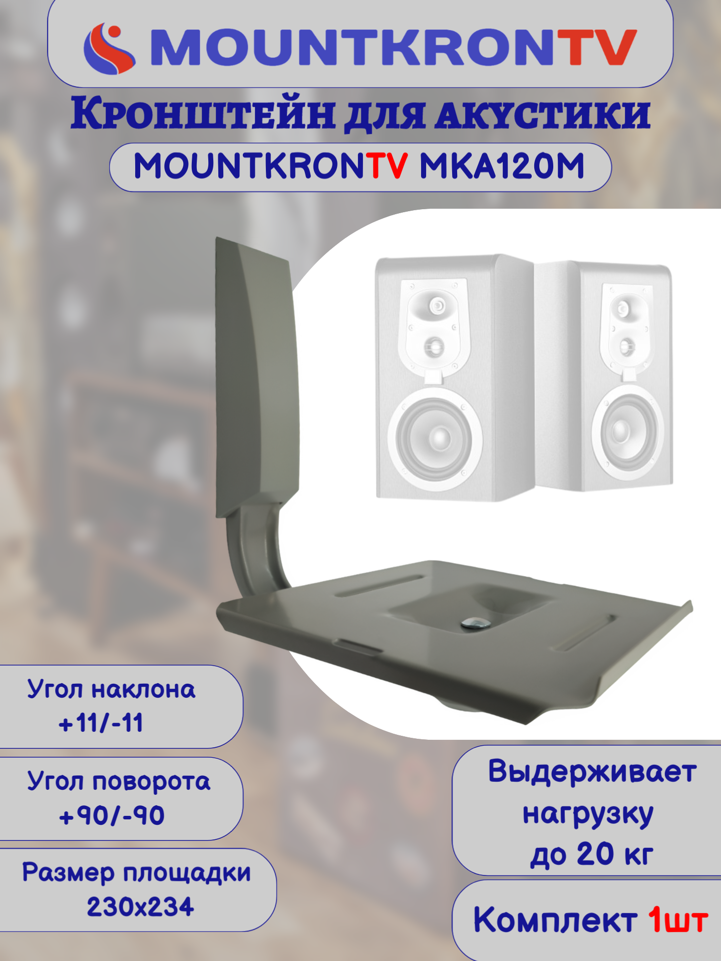 Кронштейн для акустики MOUNTKRONTV MKA120M на стену, наклонно-поворотный, серый металлик интересное: