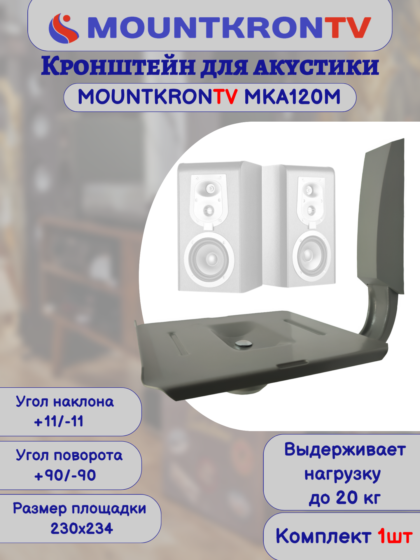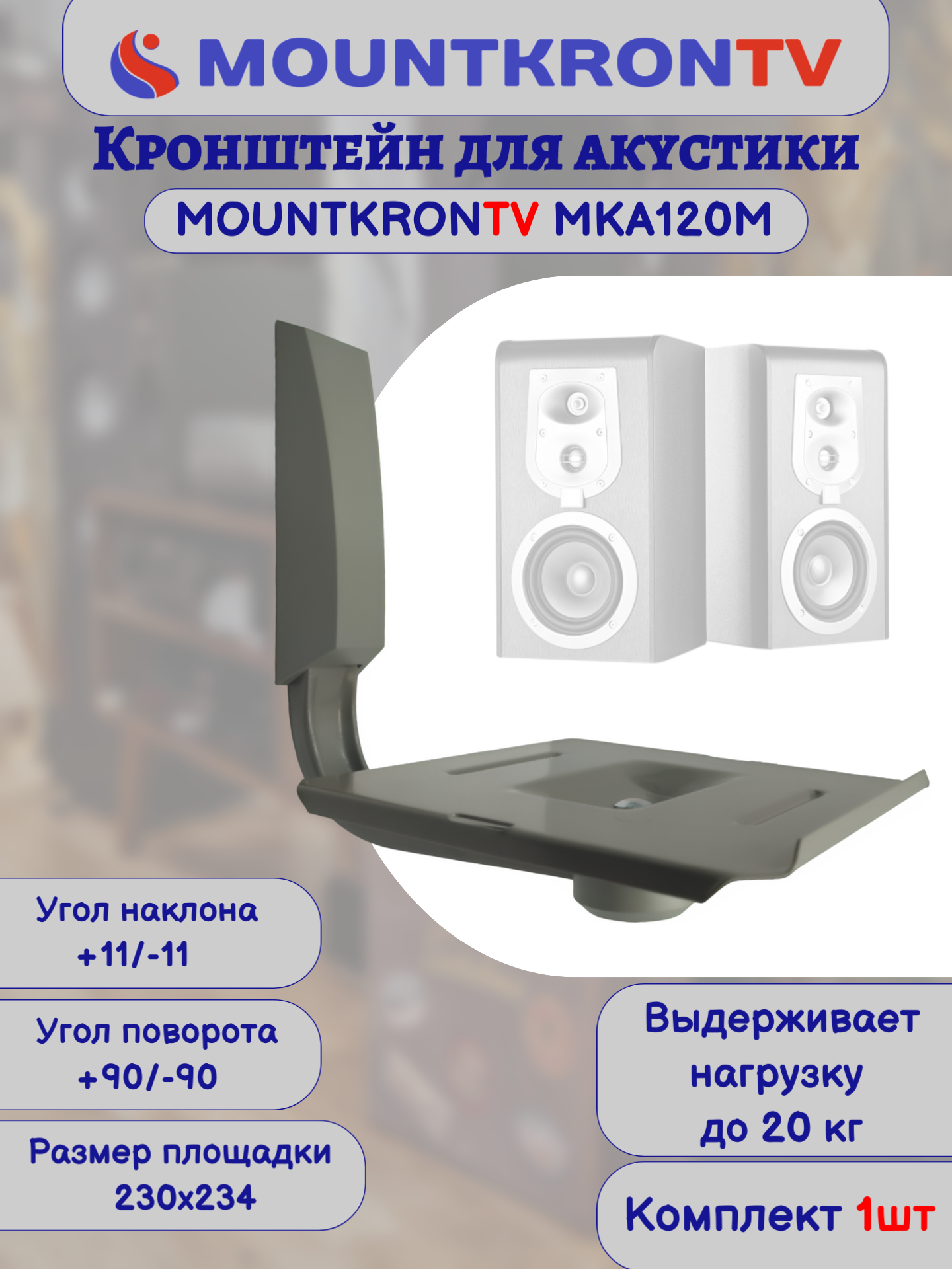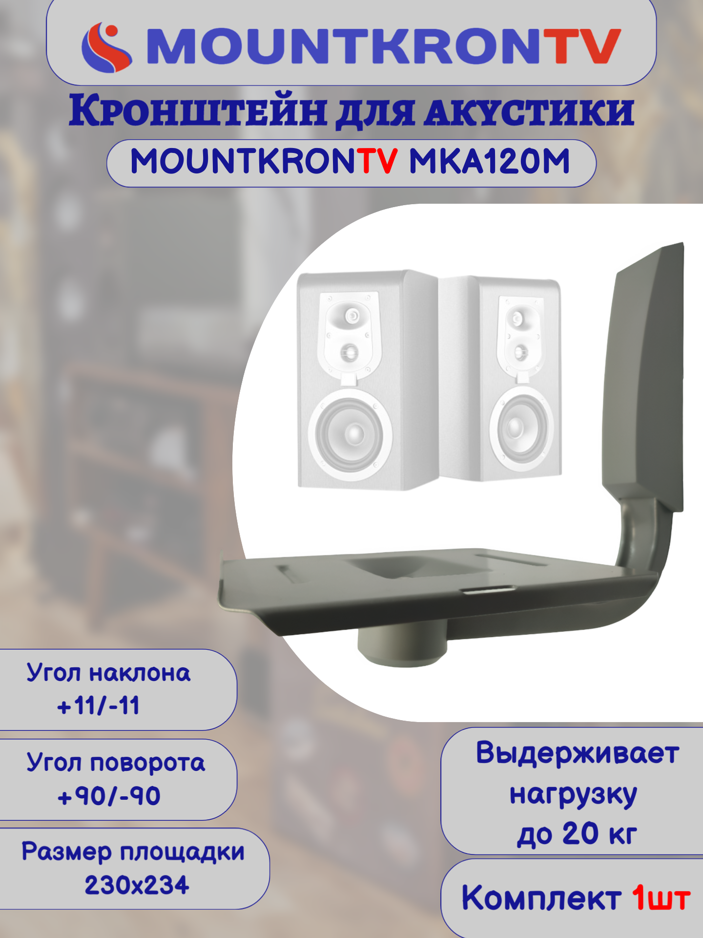Кронштейн для акустики MOUNTKRONTV MKA120M на стену, наклонно-поворотный, серый металлик интересное: