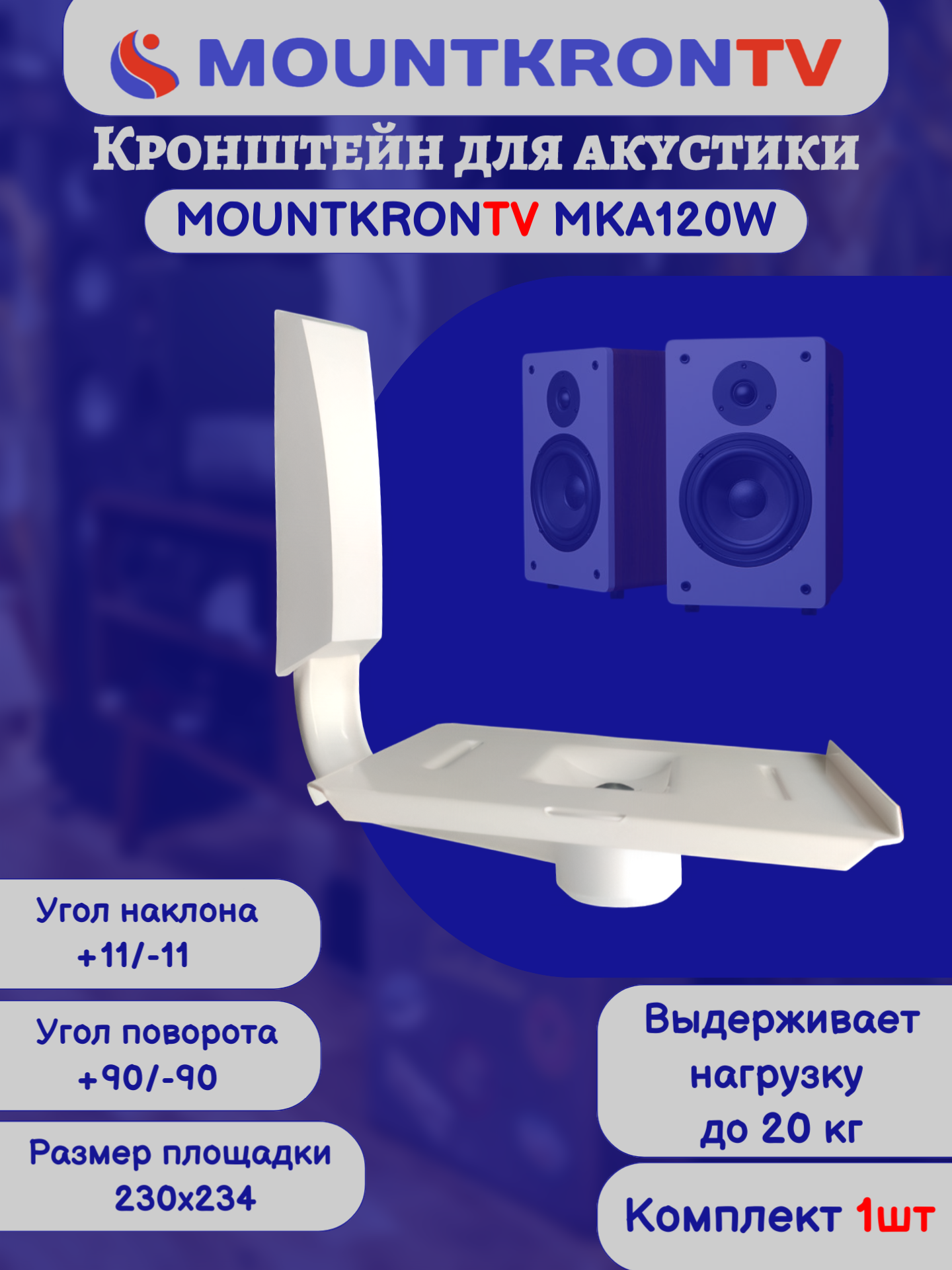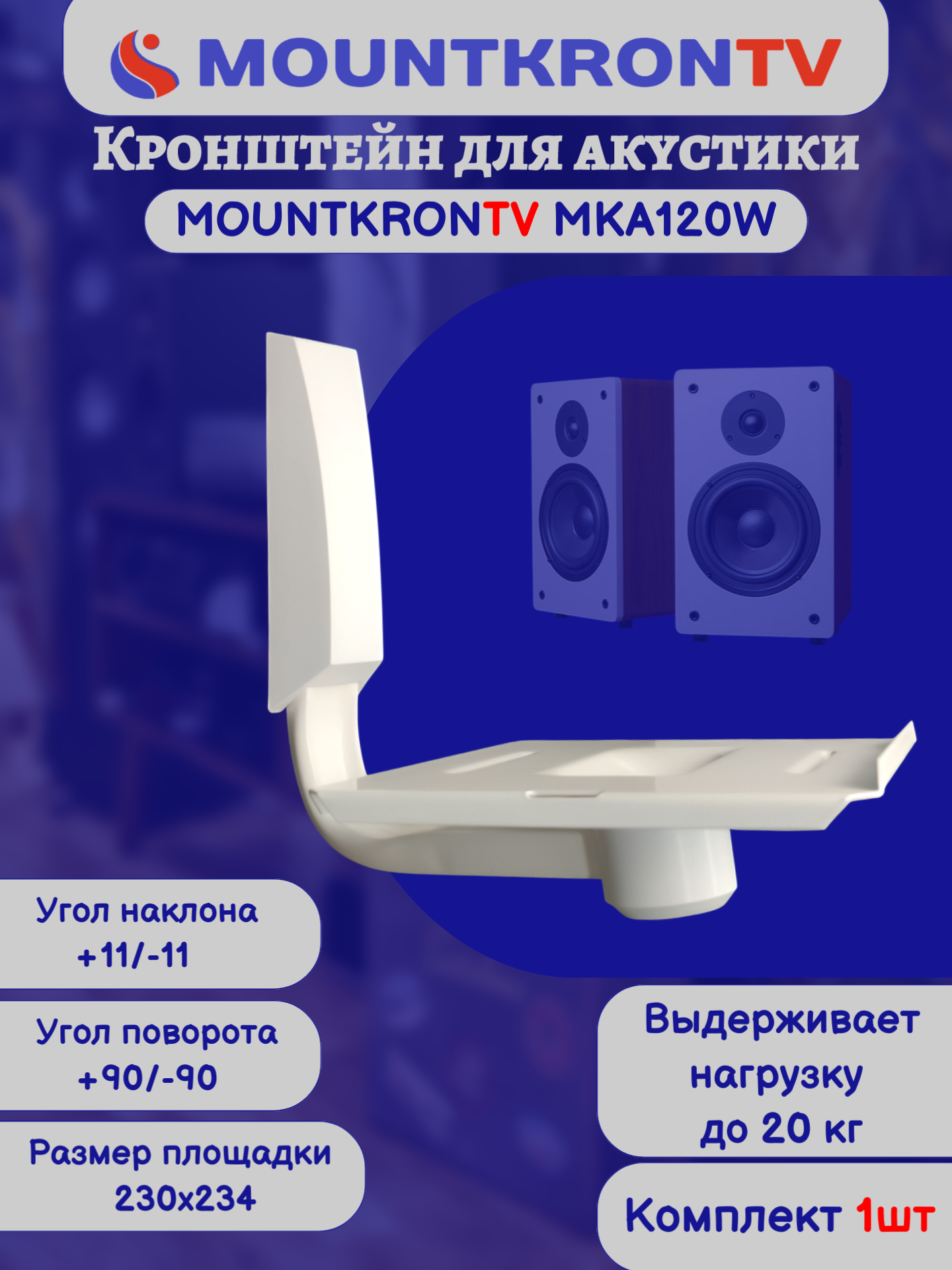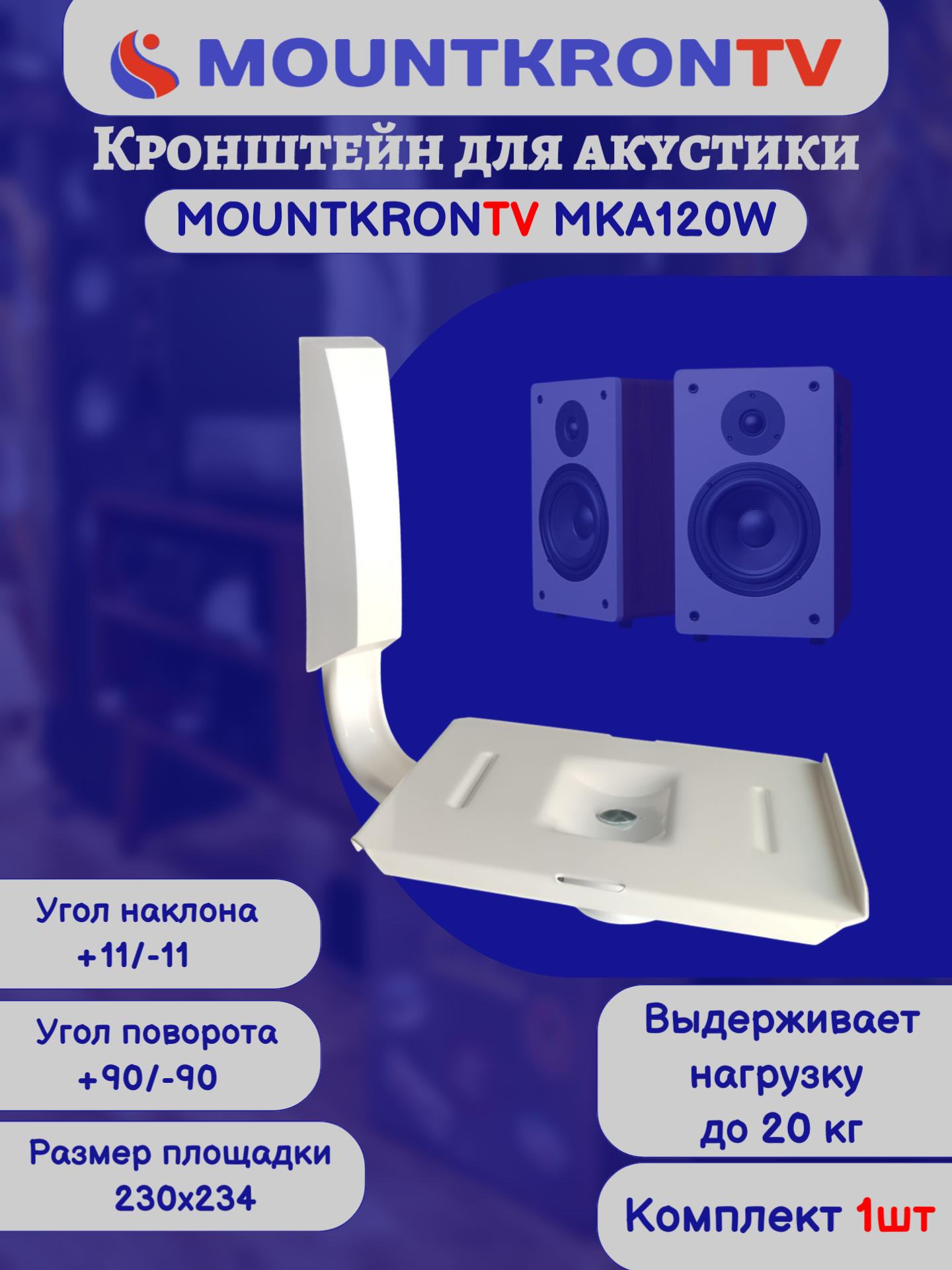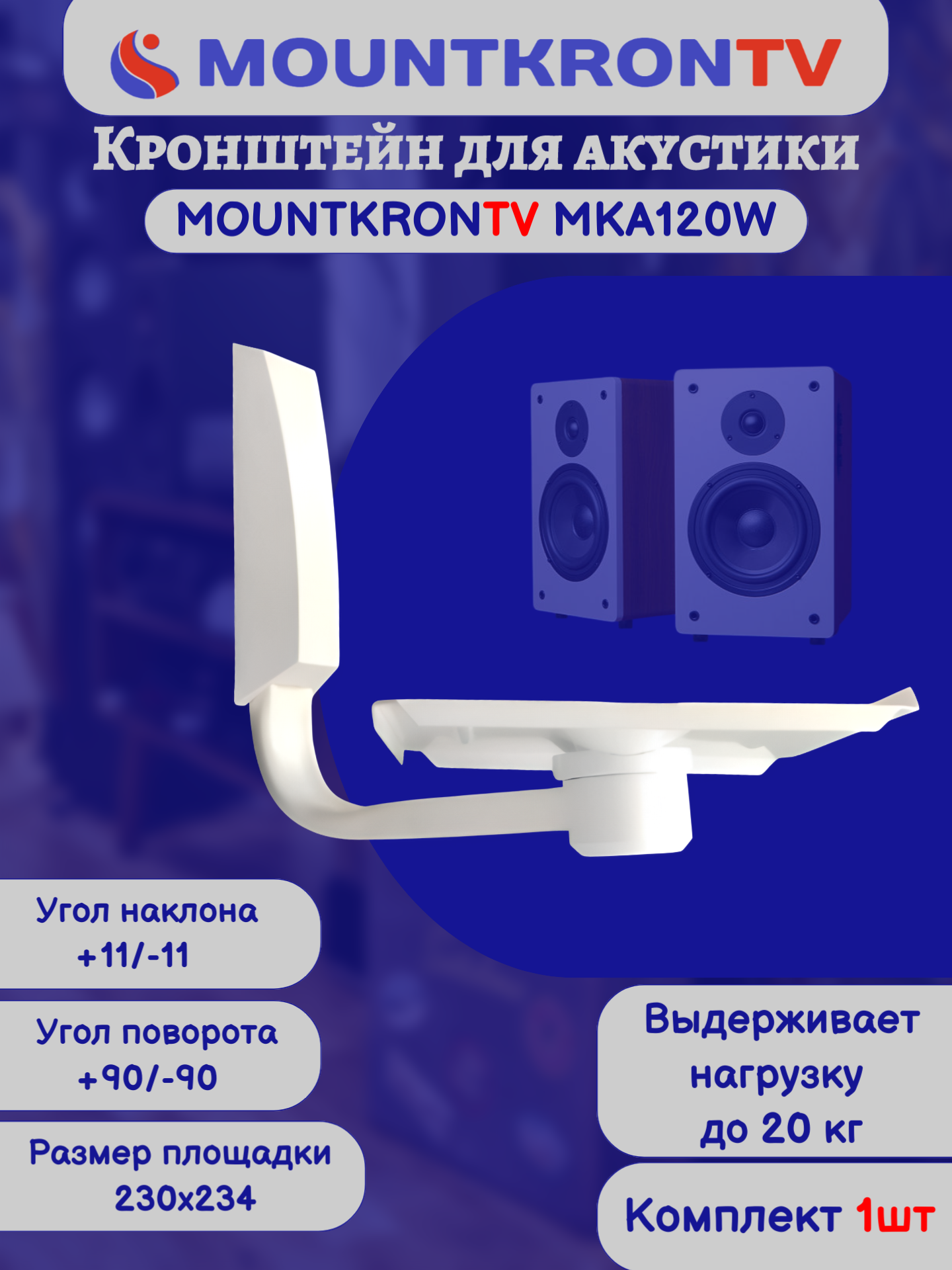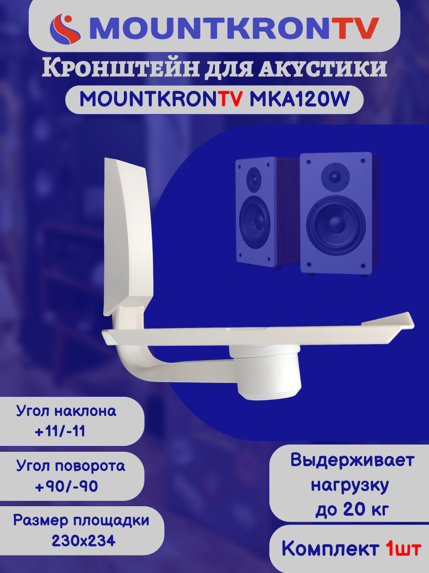 Кронштейн для акустики MOUNTKRONTV MKA120W на стену, наклонно-поворотный, белый интересное: