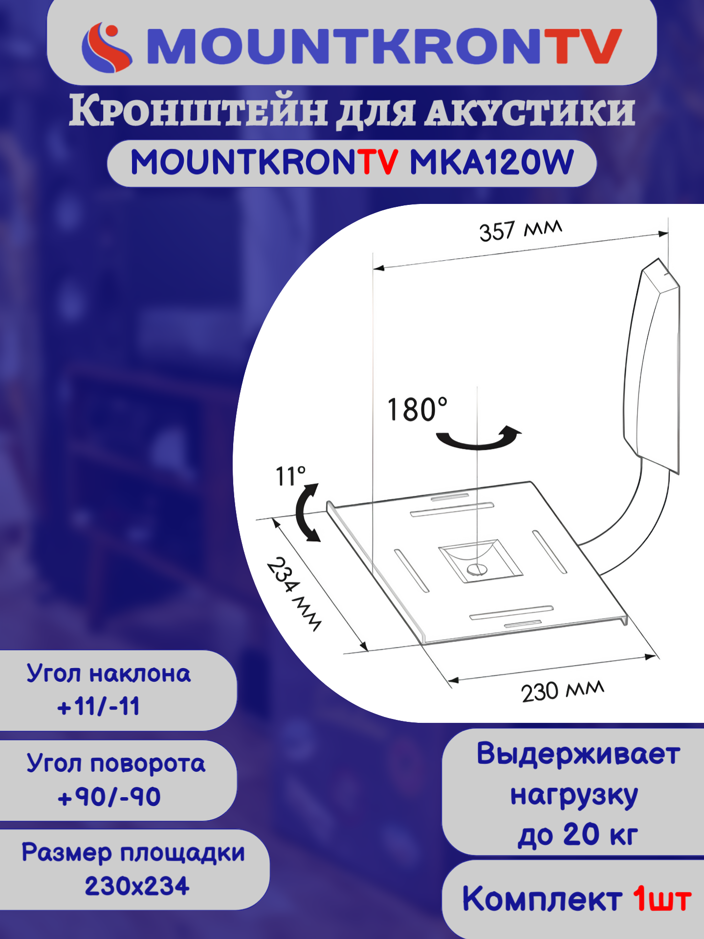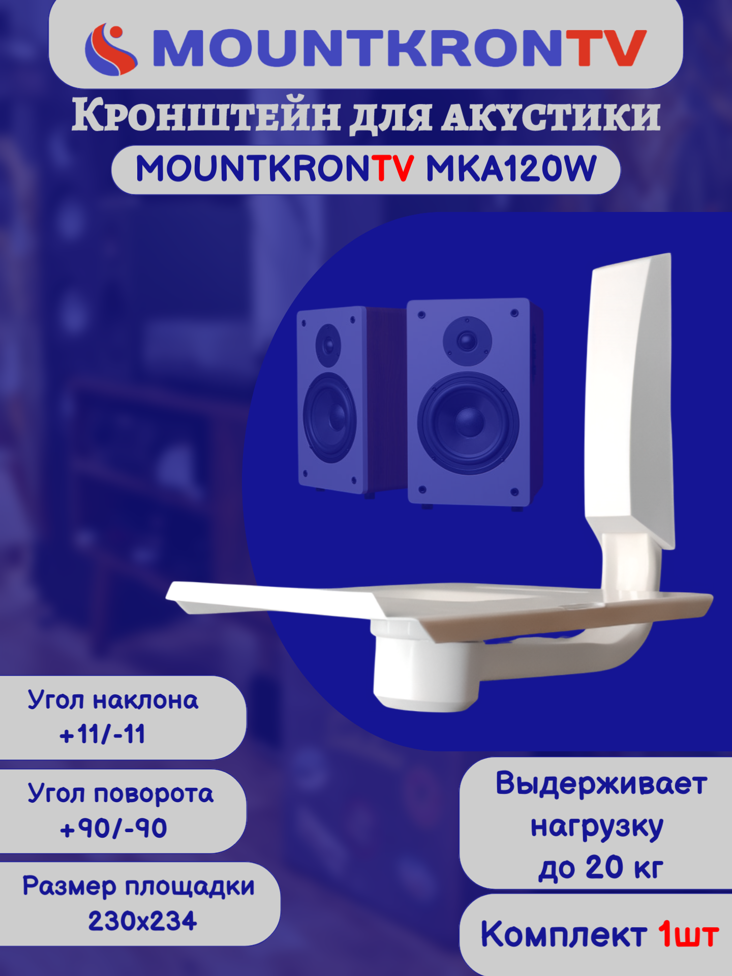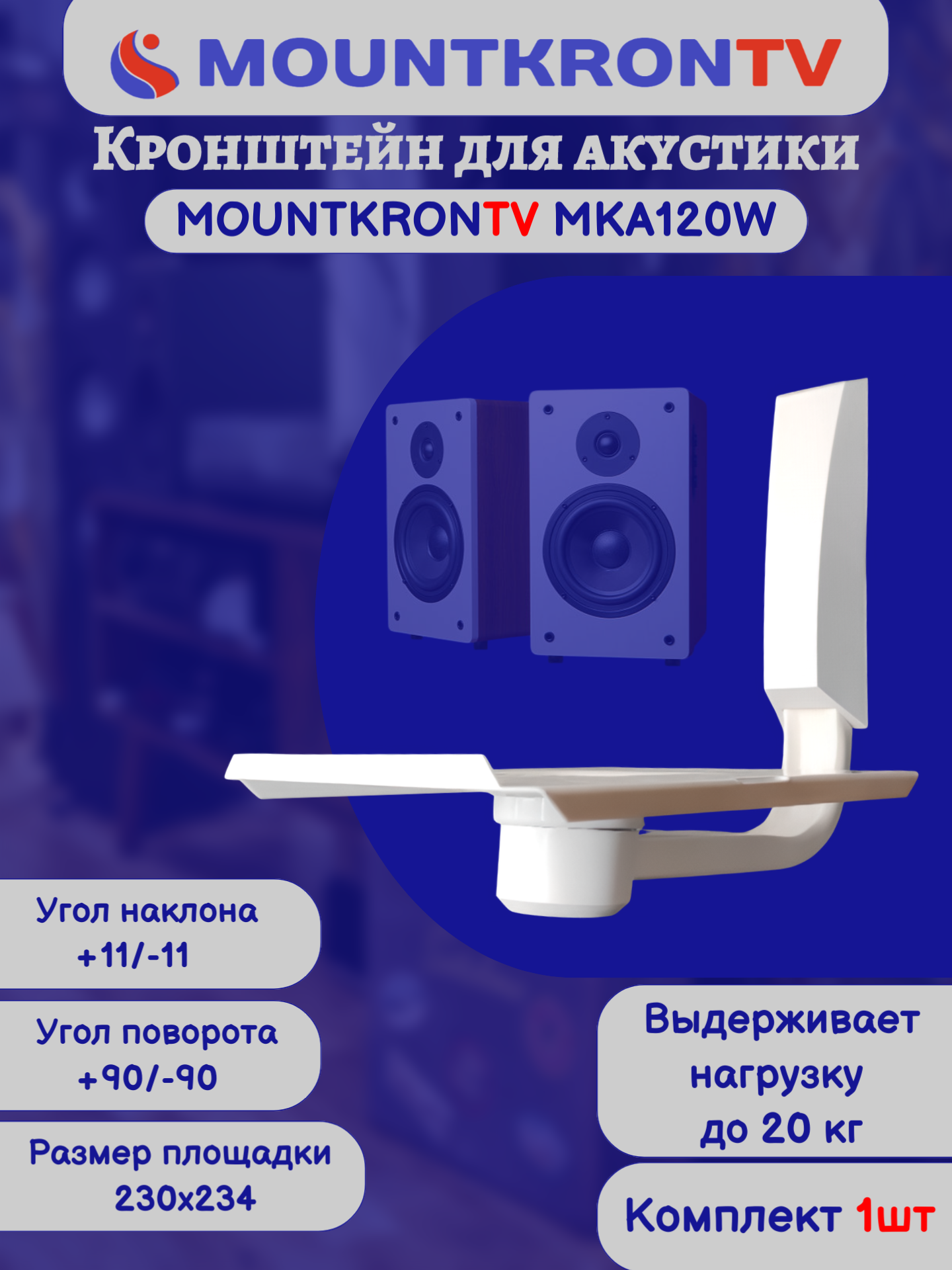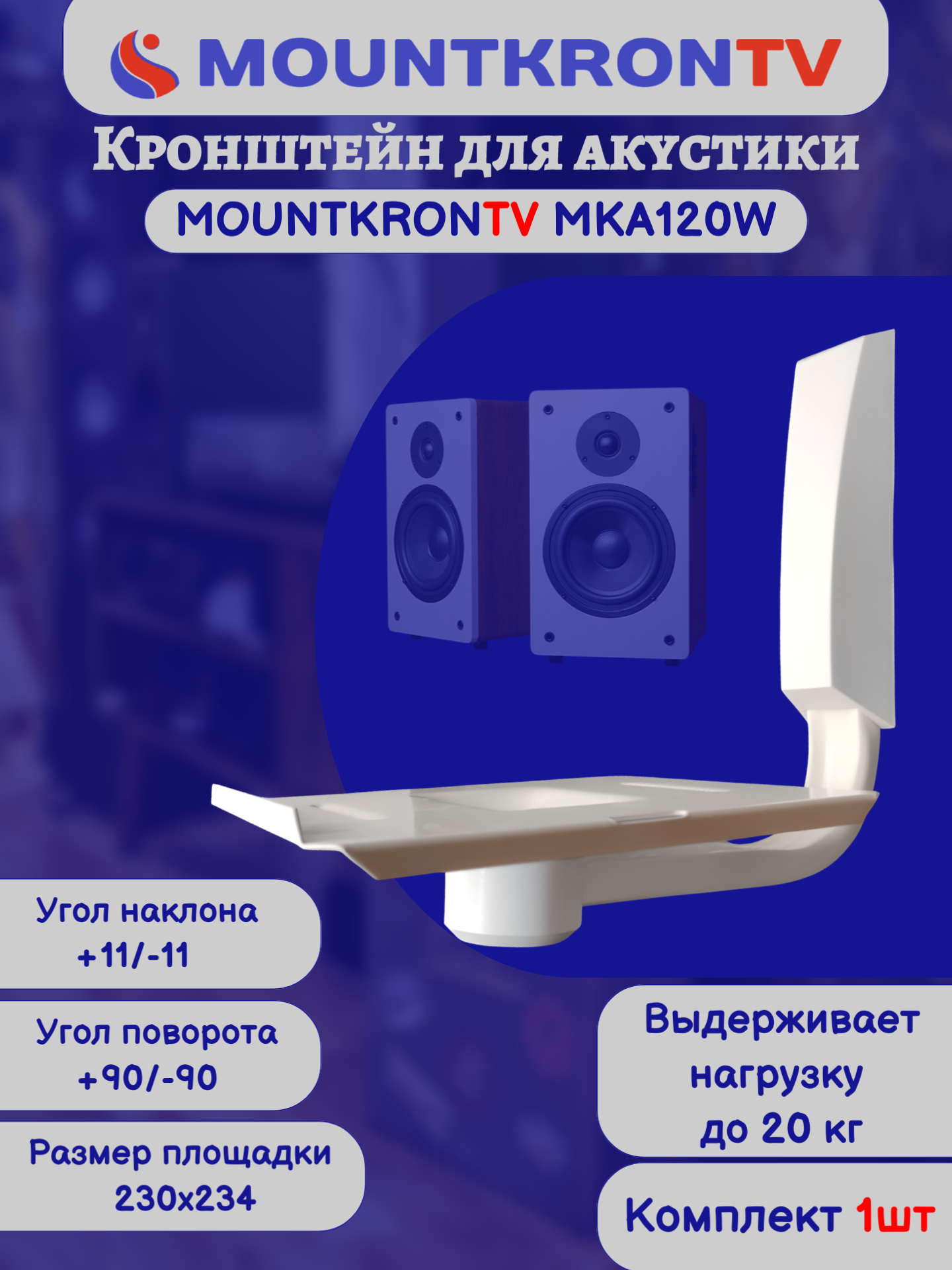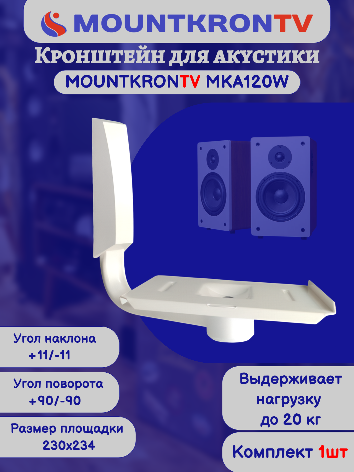 Кронштейн для акустики MOUNTKRONTV MKA120W на стену, наклонно-поворотный, белый интересное: