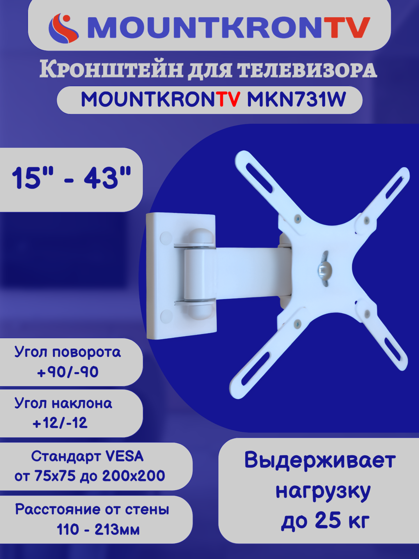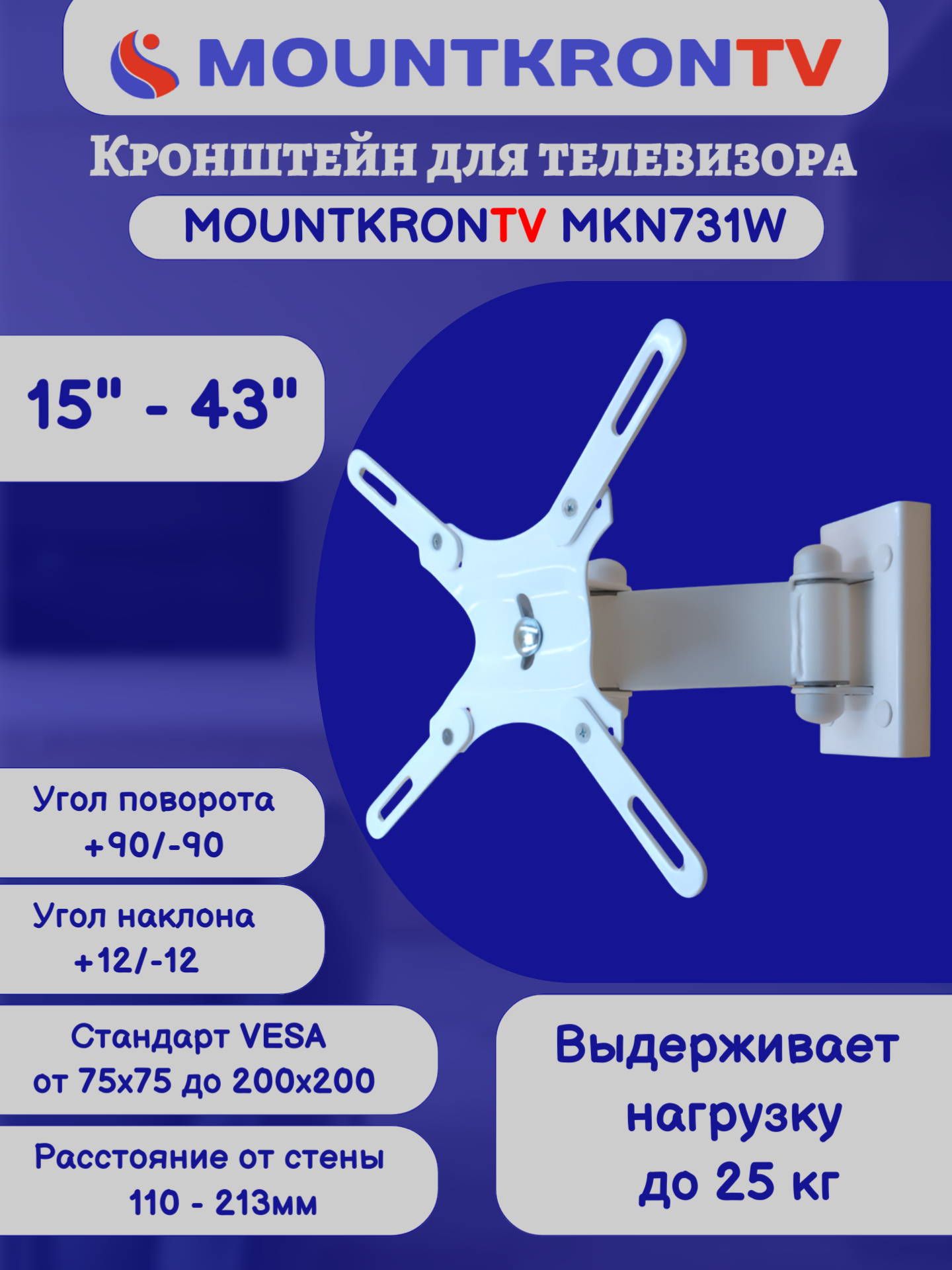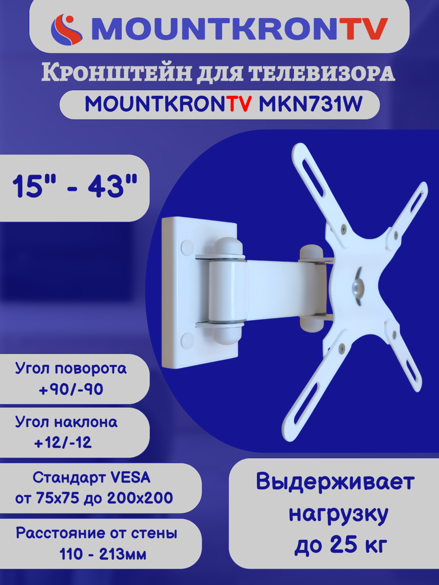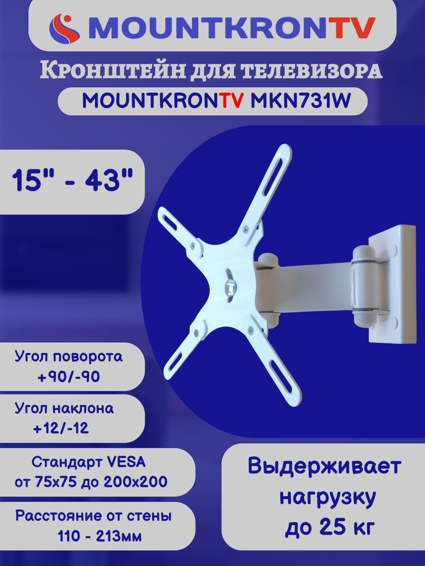 Кронштейн для телевизора MOUNTKRONTV MKN731W на стену, наклонно-поворотный, диагональ 15"-43", белый интересное: