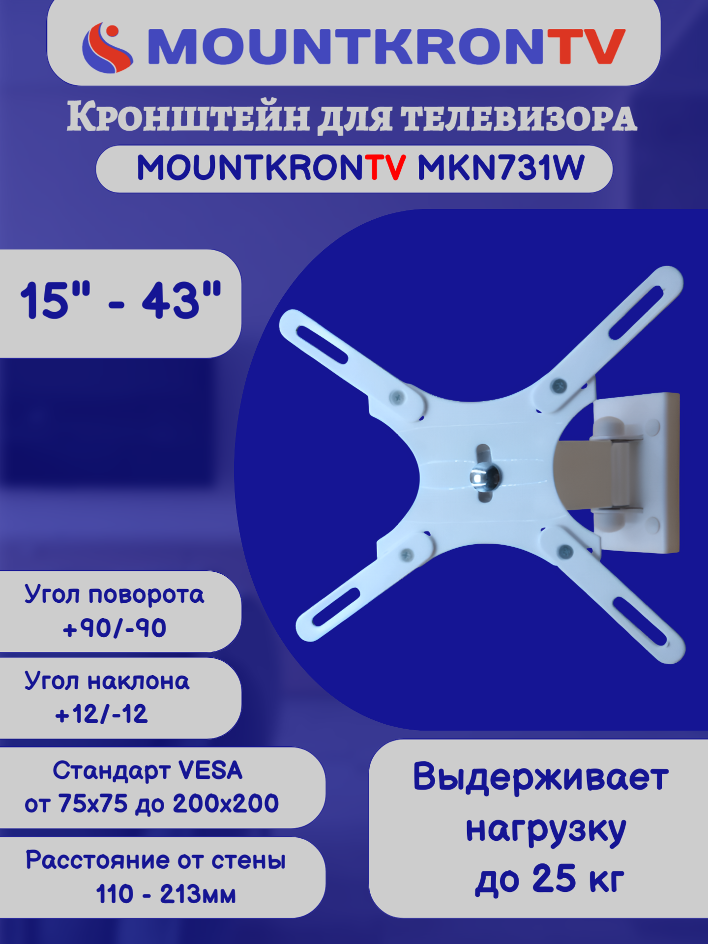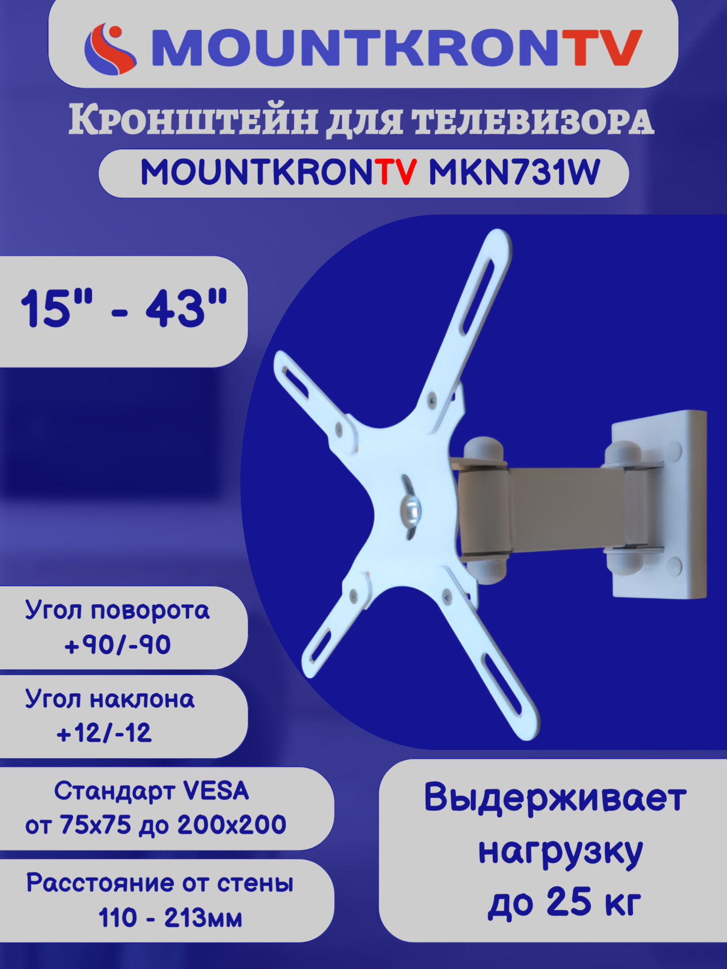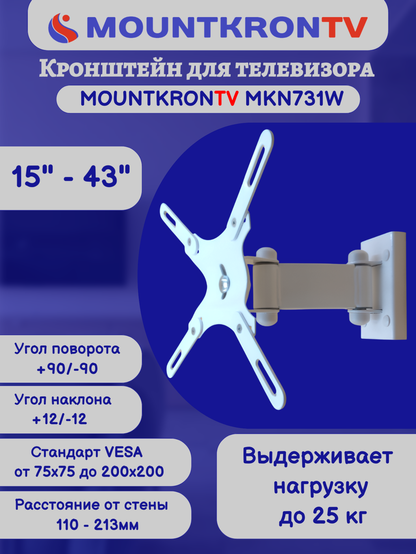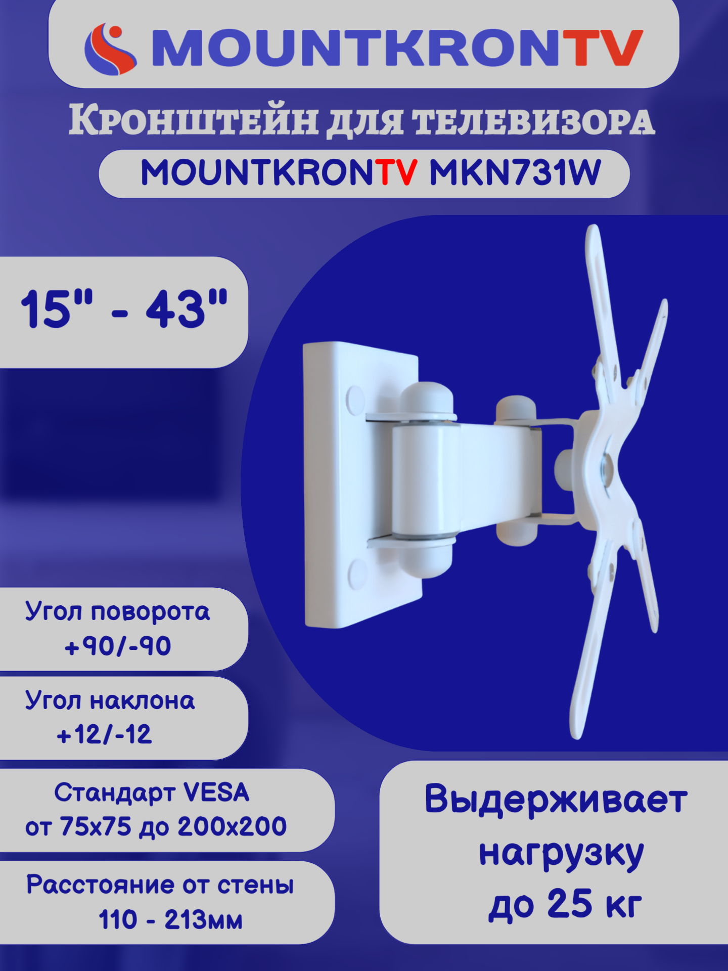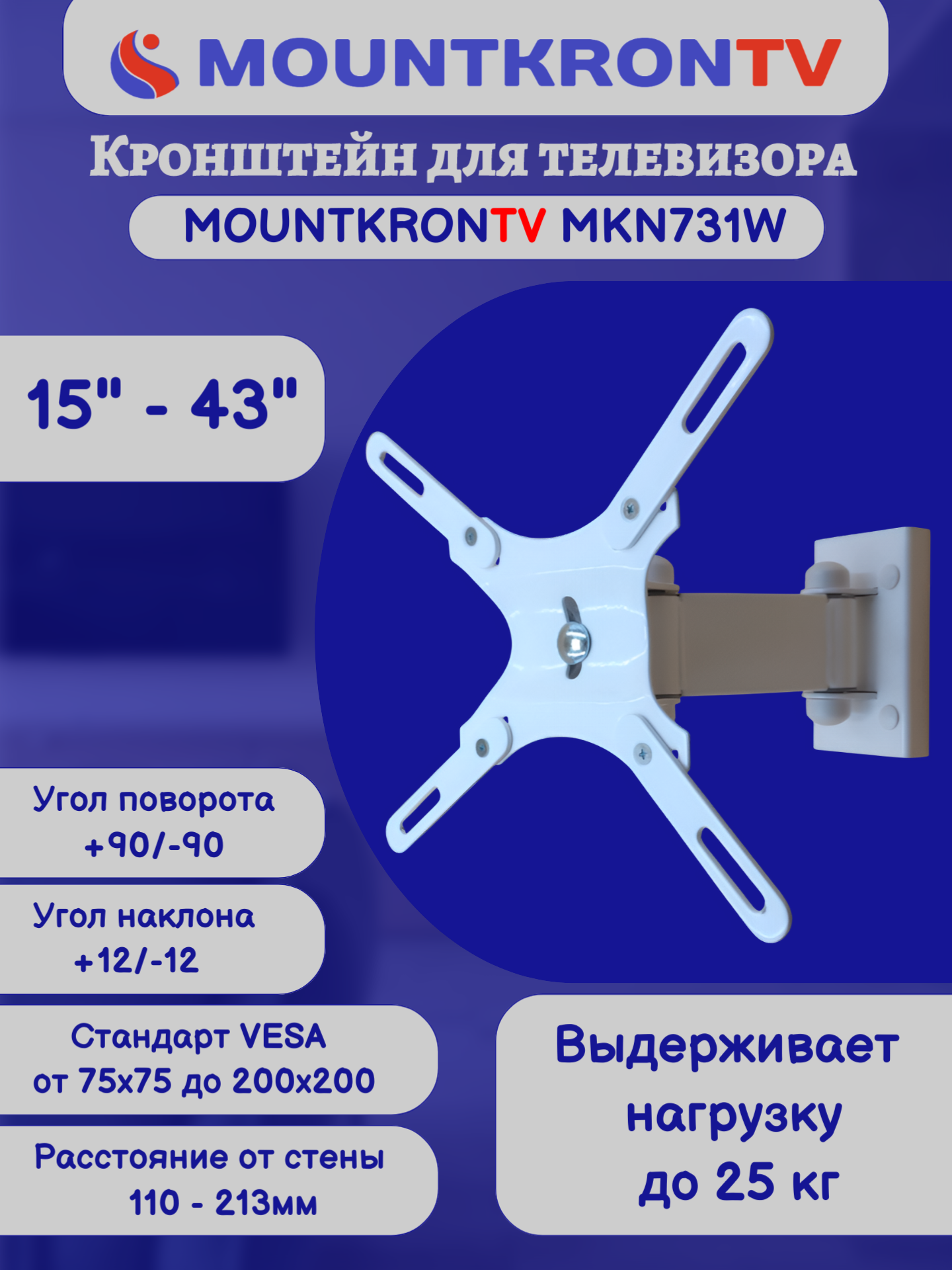 Кронштейн для телевизора MOUNTKRONTV MKN731W на стену, наклонно-поворотный, диагональ 15"-43", белый интересное: