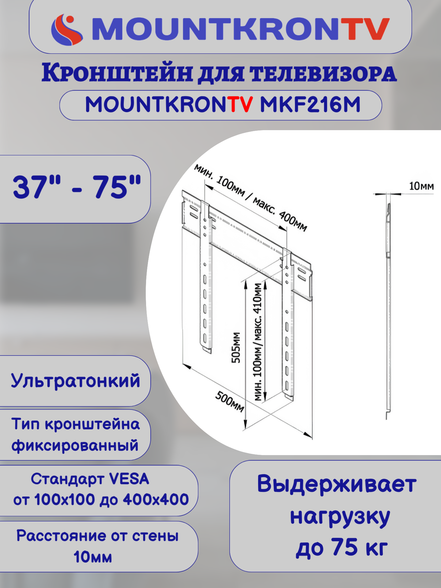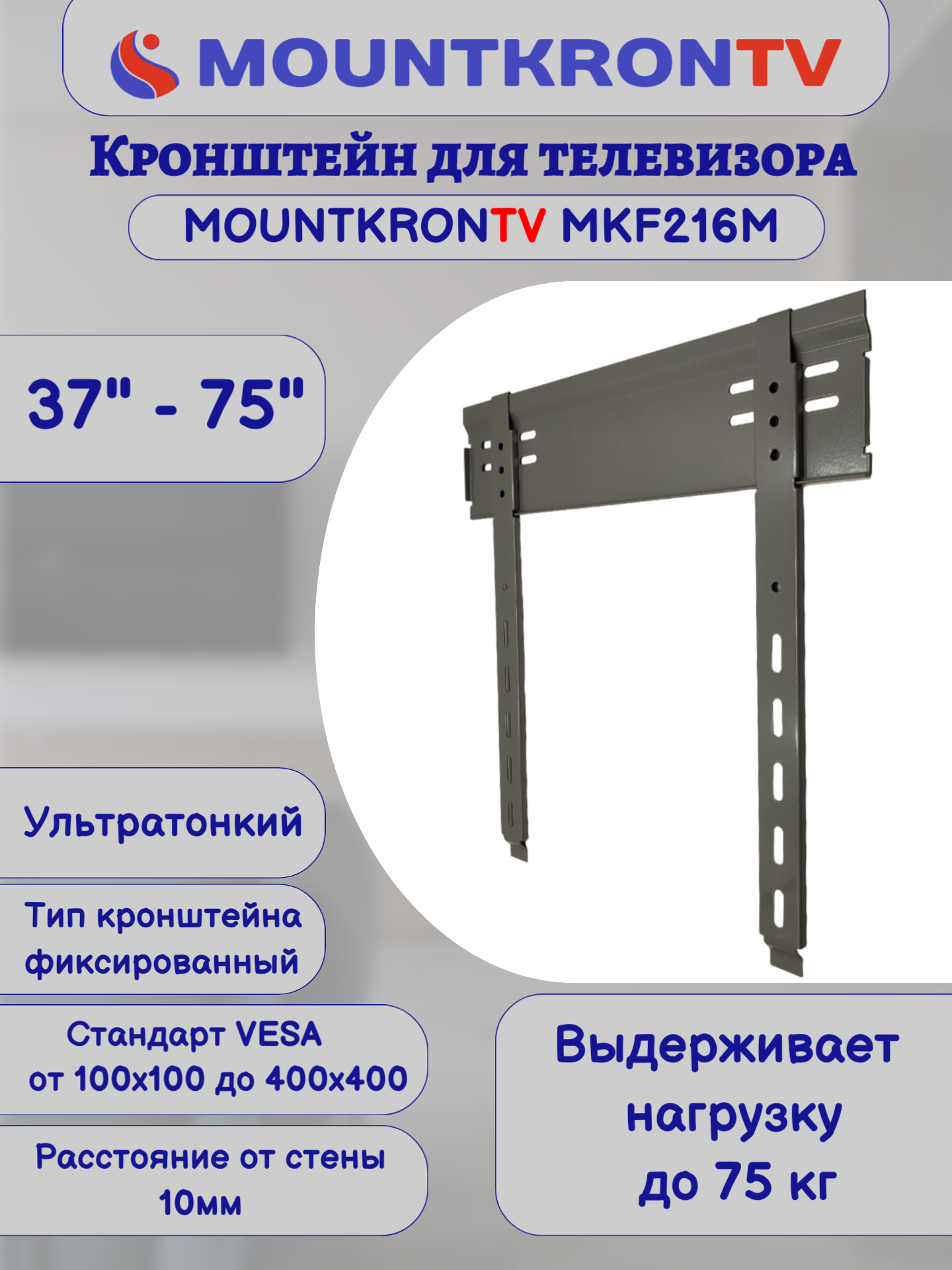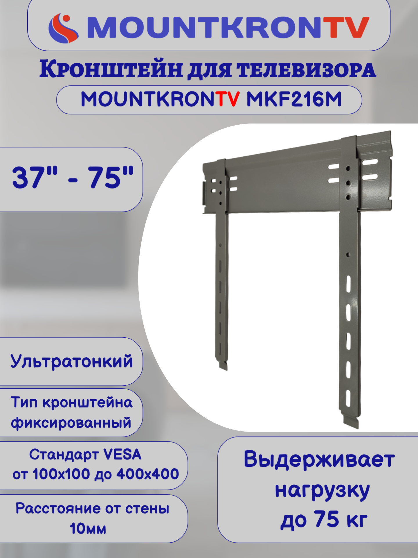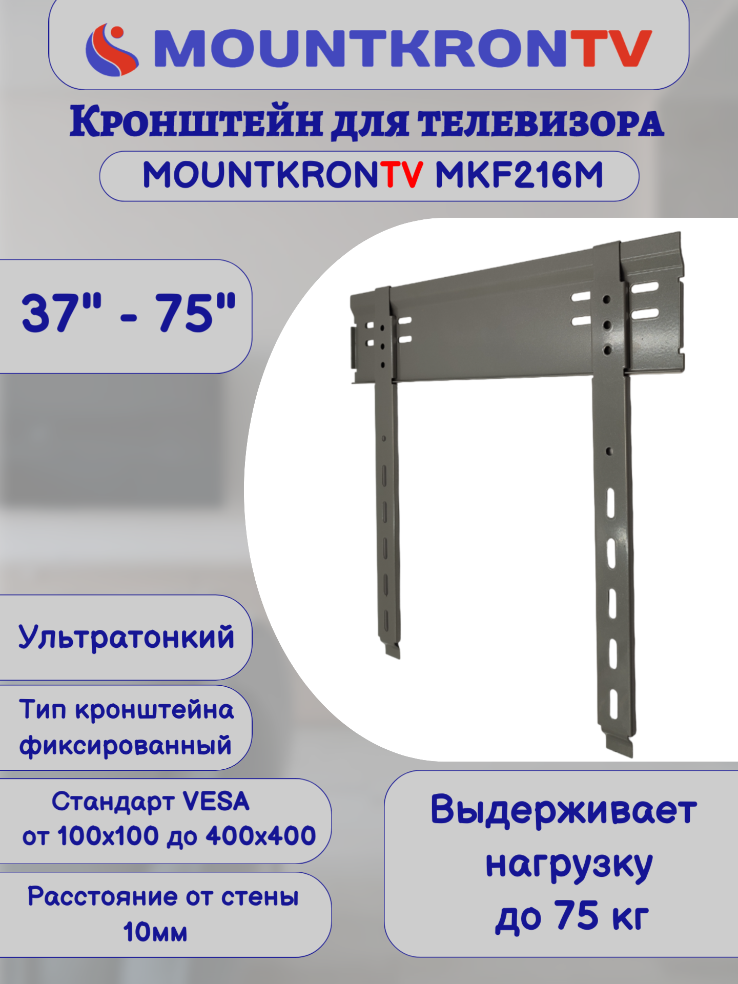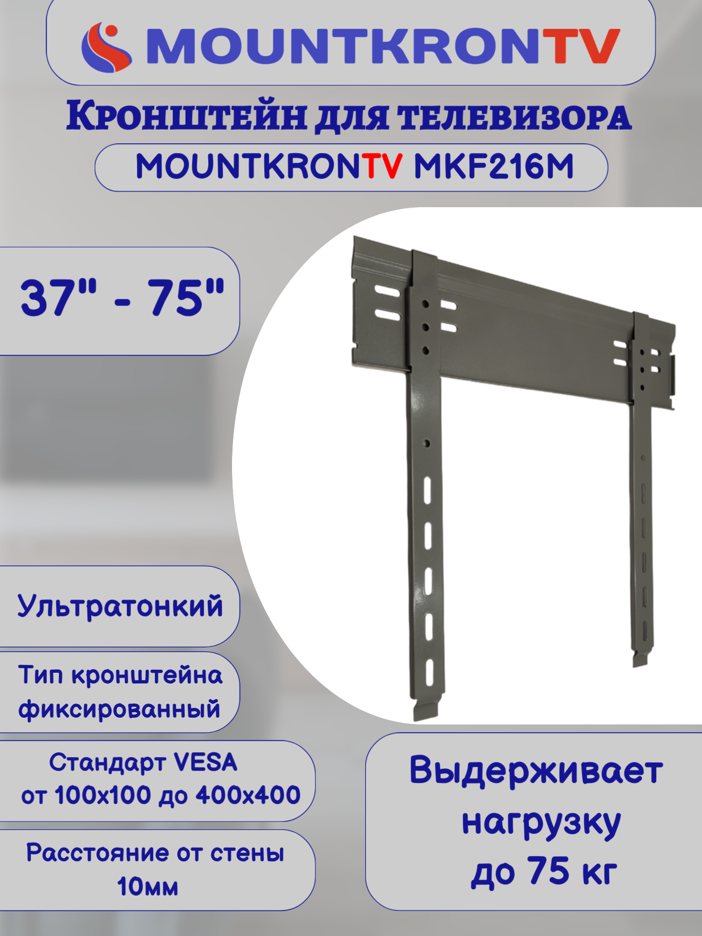 Кронштейн для телевизора MOUNTKRONTV MKF216M серый металлик, на стену, фиксированный, диагональ 37"-75" интересное: