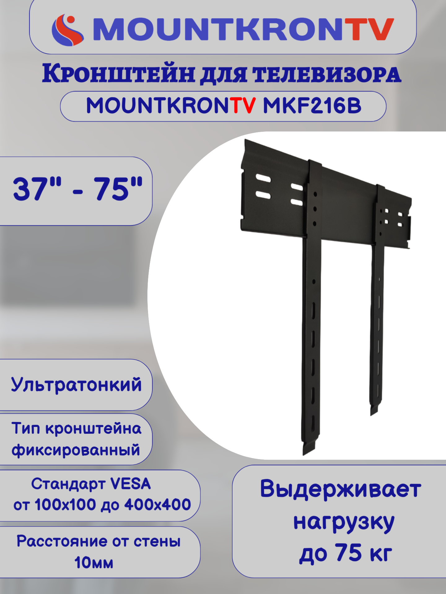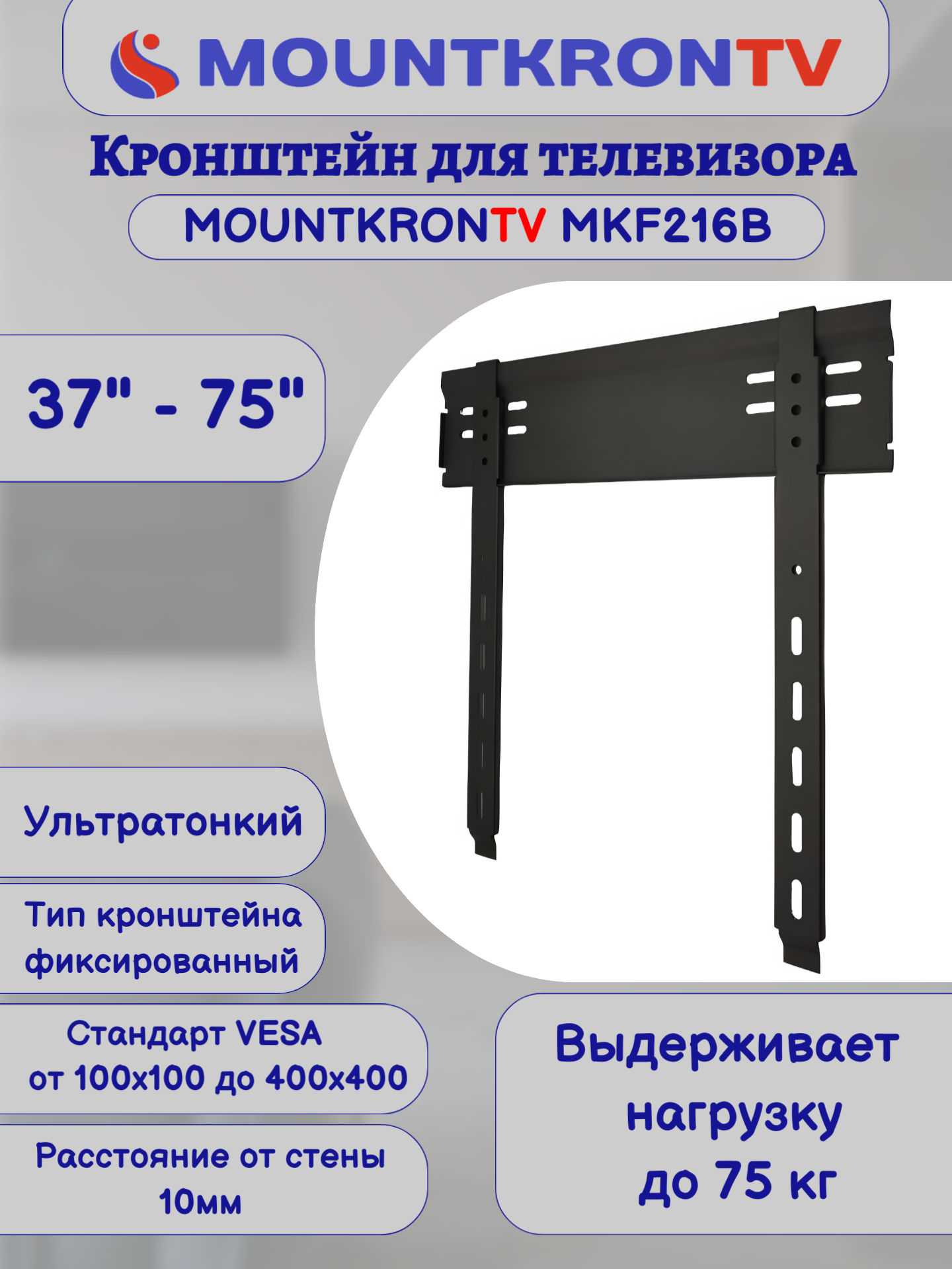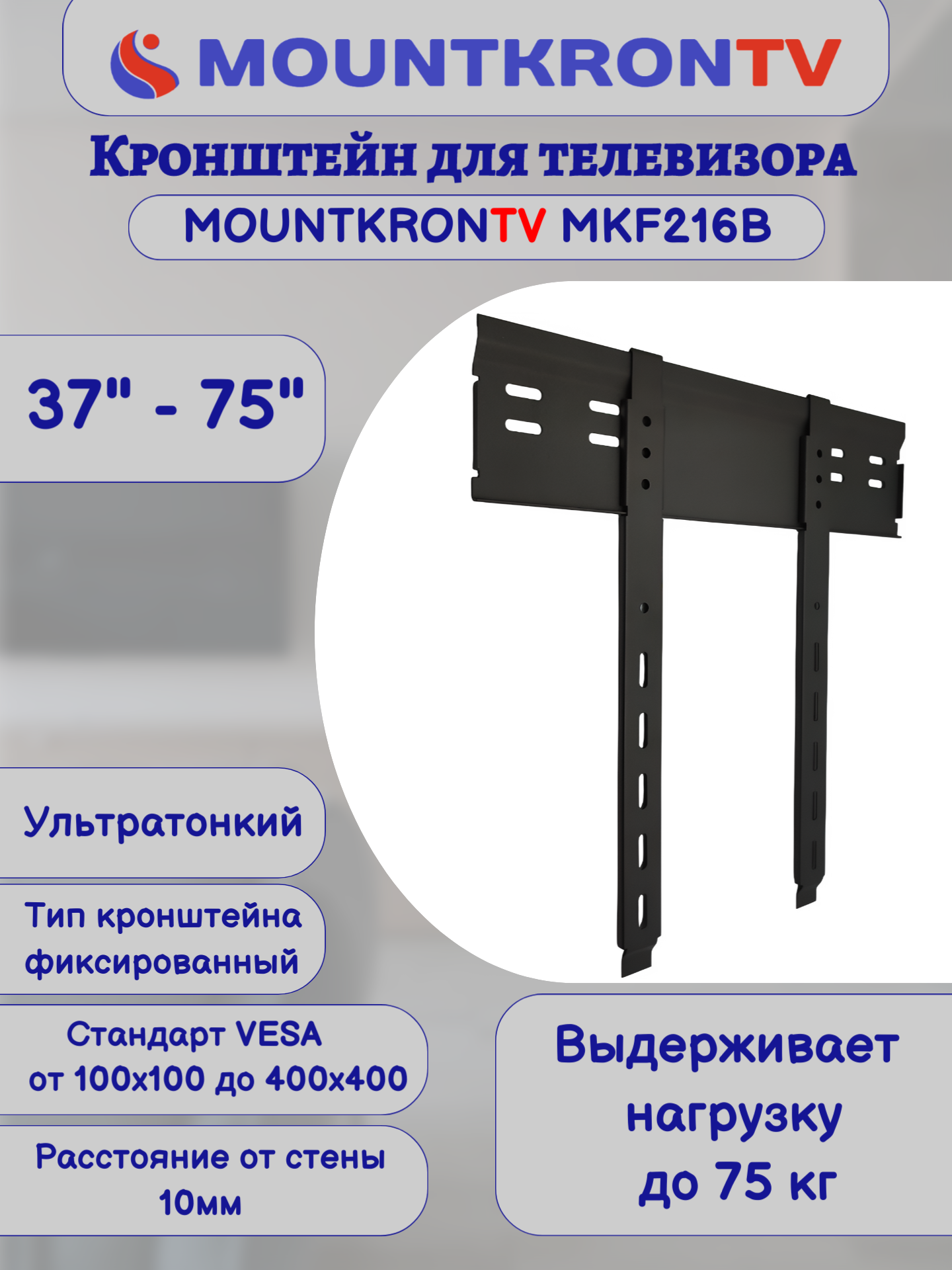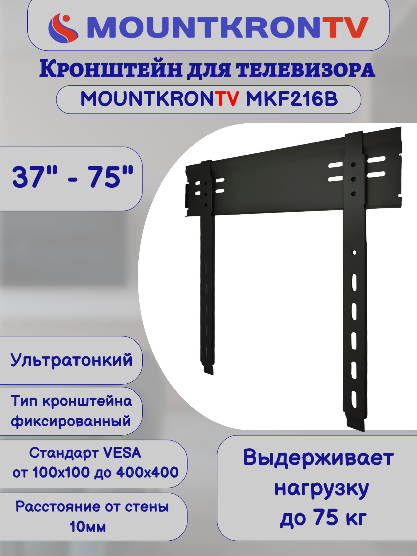 Кронштейн для телевизора MOUNTKRONTV MKF216B черный, на стену, фиксированный, диагональ 37"-75" интересное: