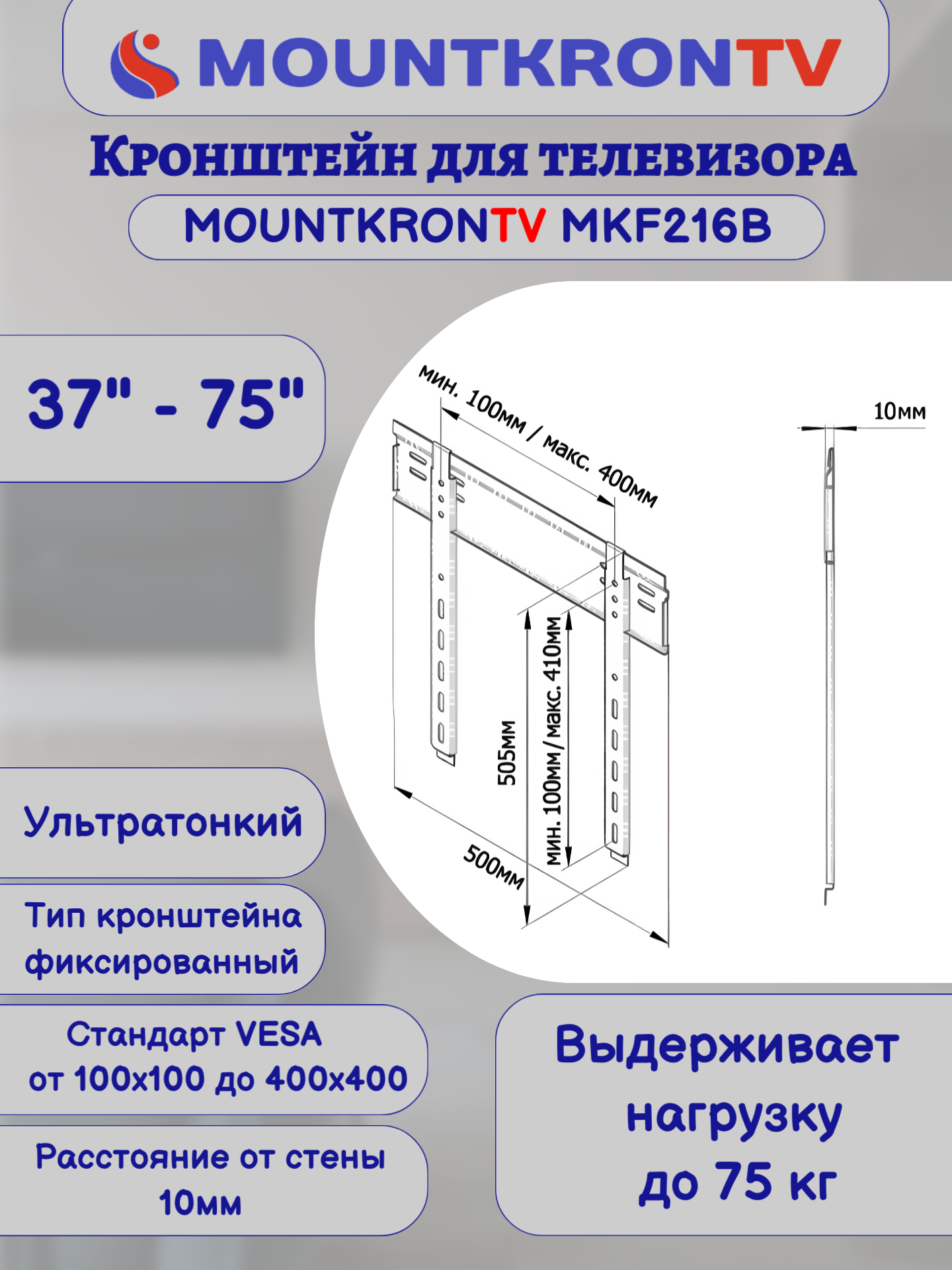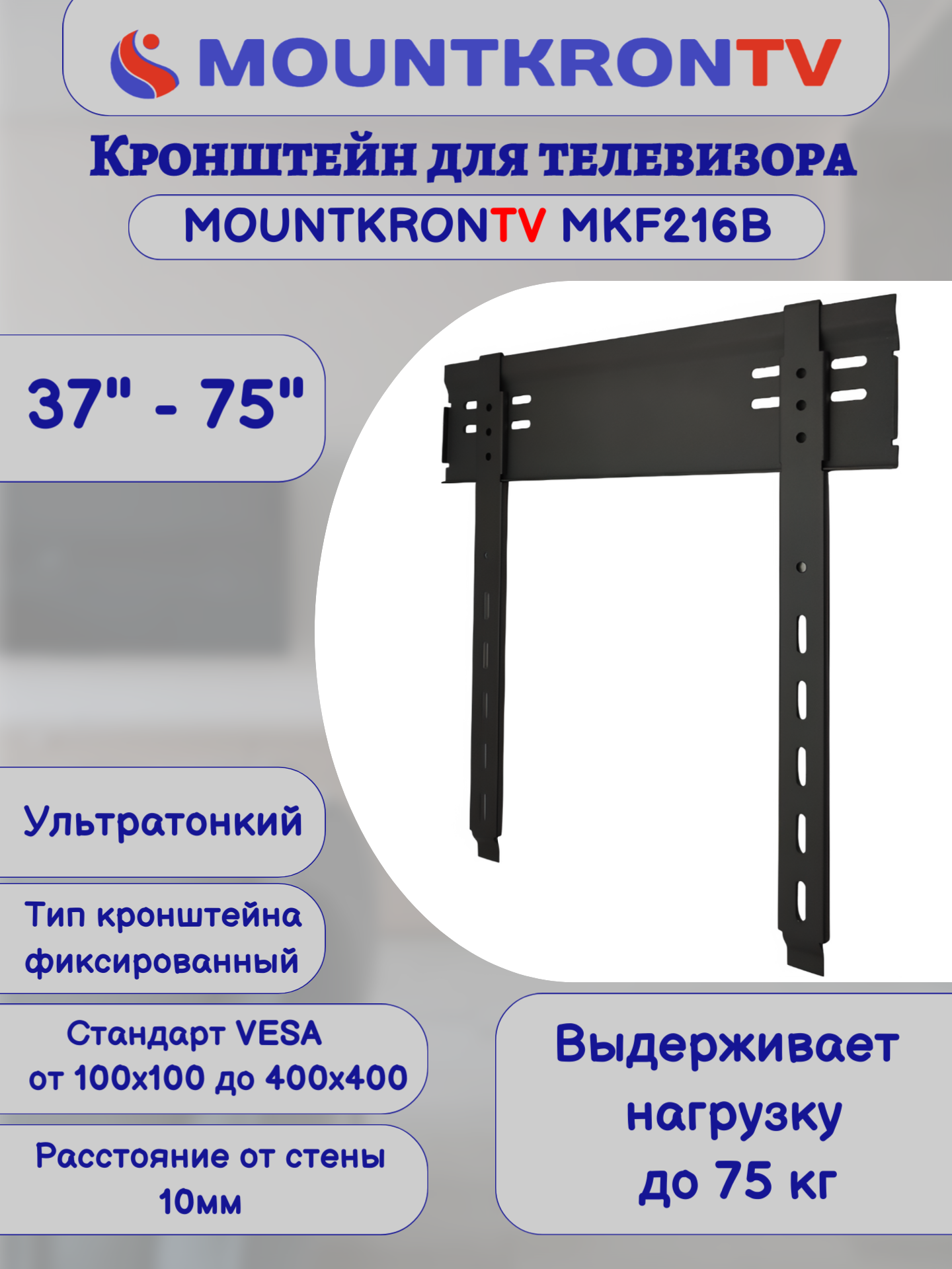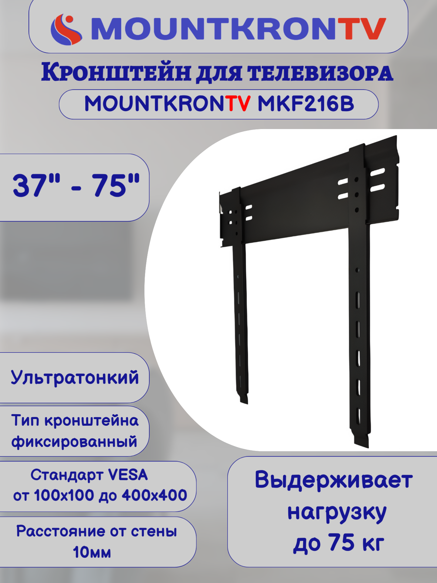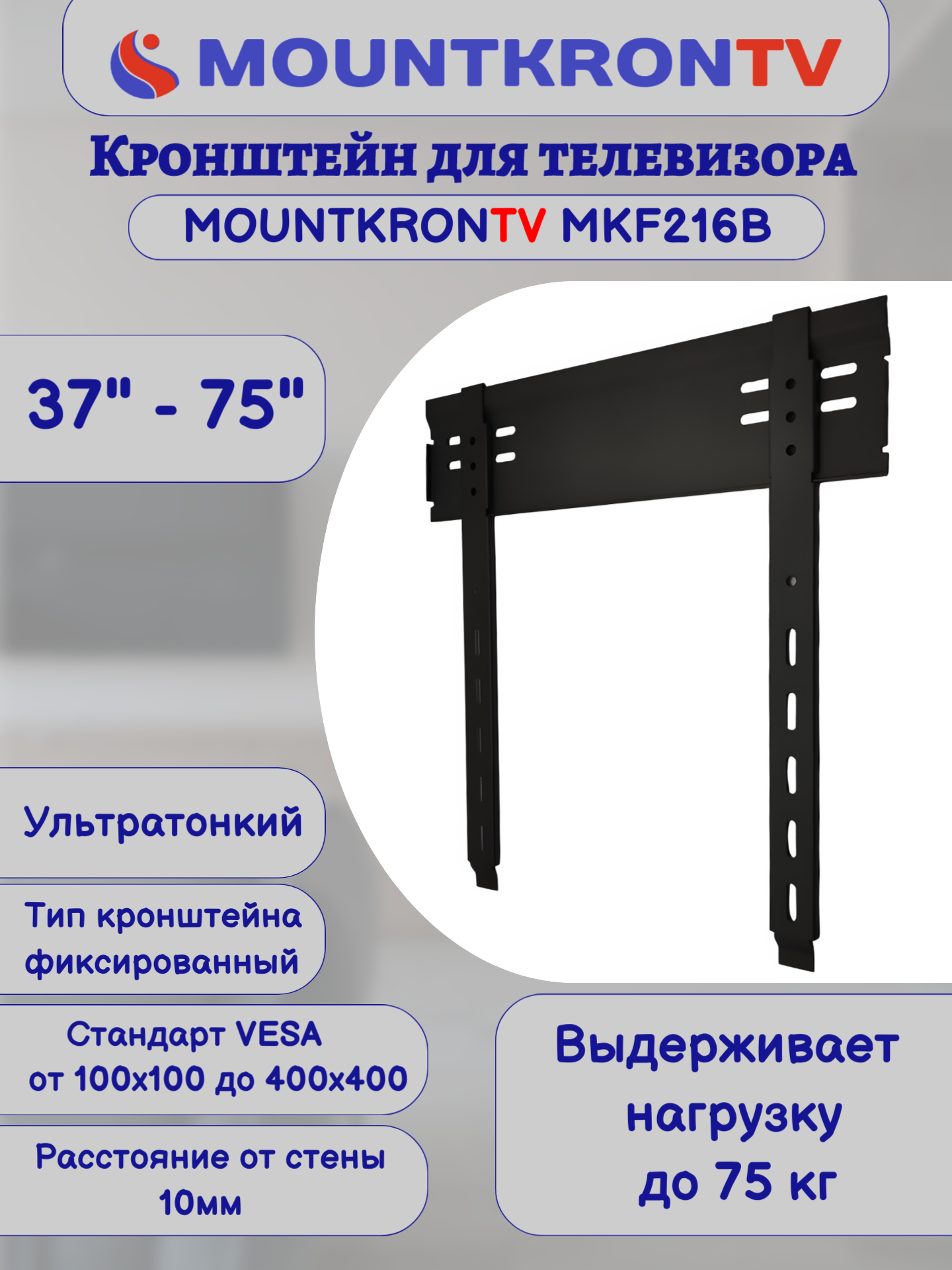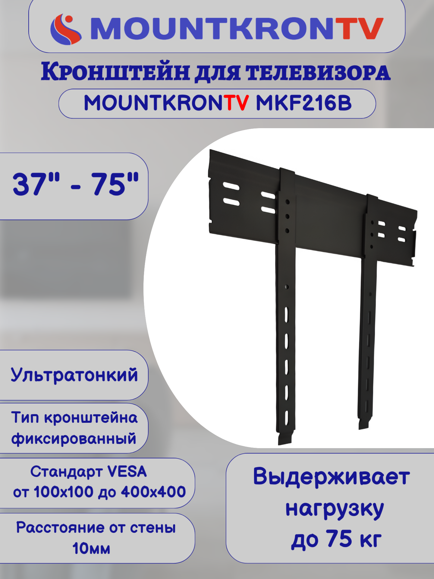 Кронштейн для телевизора MOUNTKRONTV MKF216B черный, на стену, фиксированный, диагональ 37"-75" интересное: