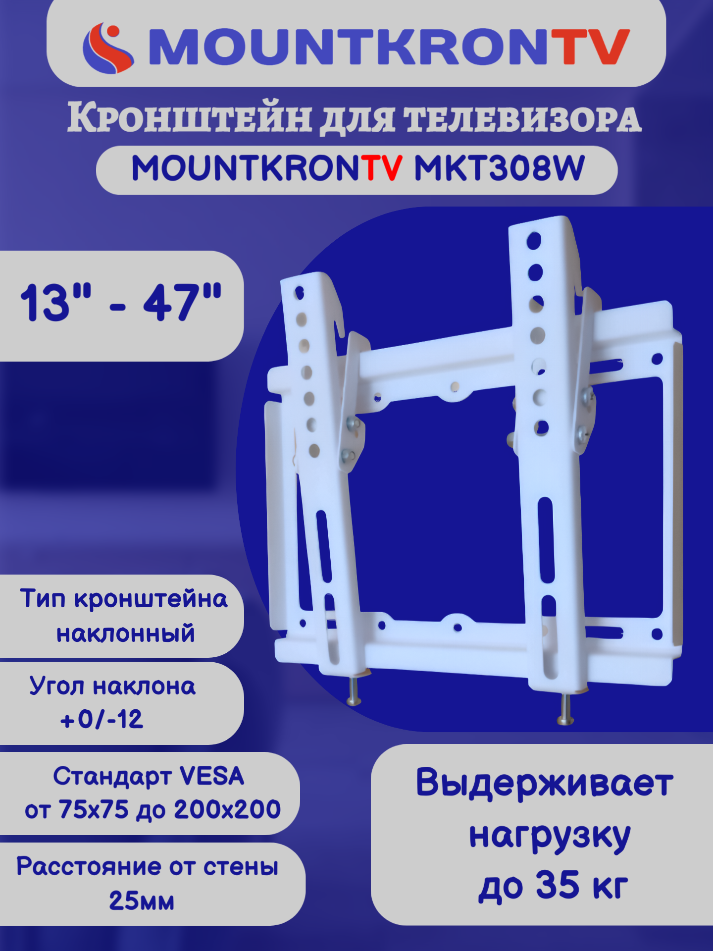 Кронштейн для телевизора MOUNTKRONTV MKT308W на стену, наклонный, диагональ 13"-47", белый интересное: