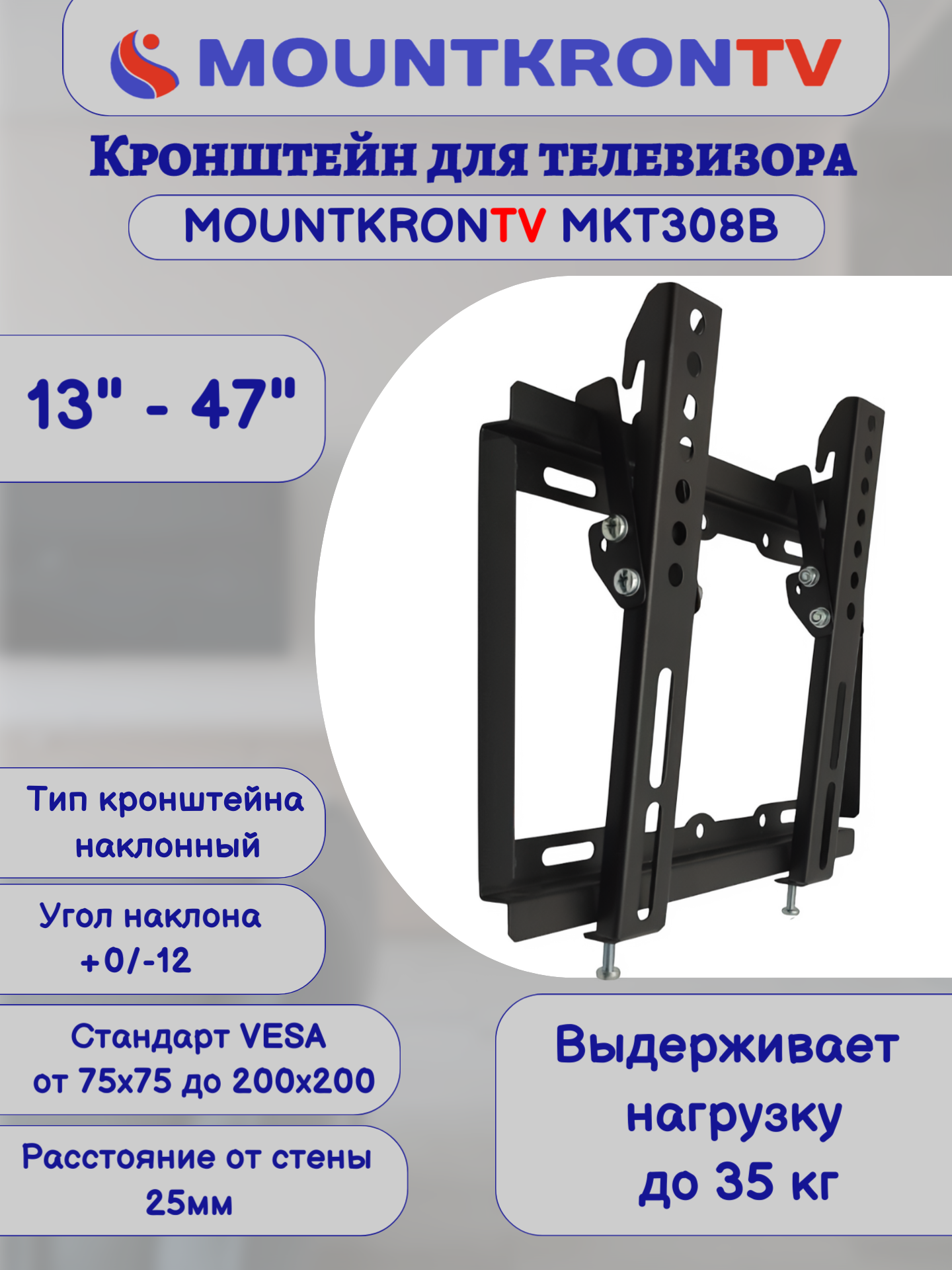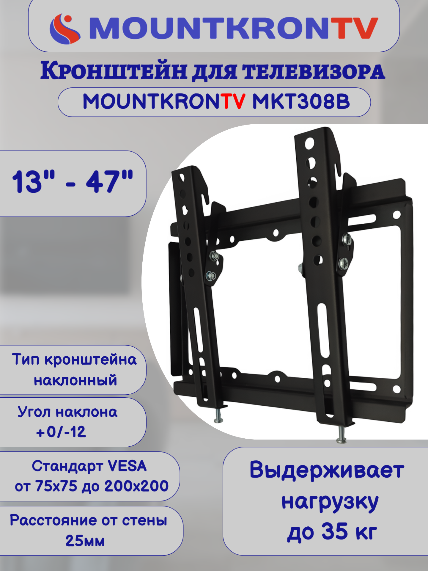 Кронштейн для телевизора MOUNTKRONTV MKT308B на стену, наклонный, диагональ 13"-47", черный интересное: