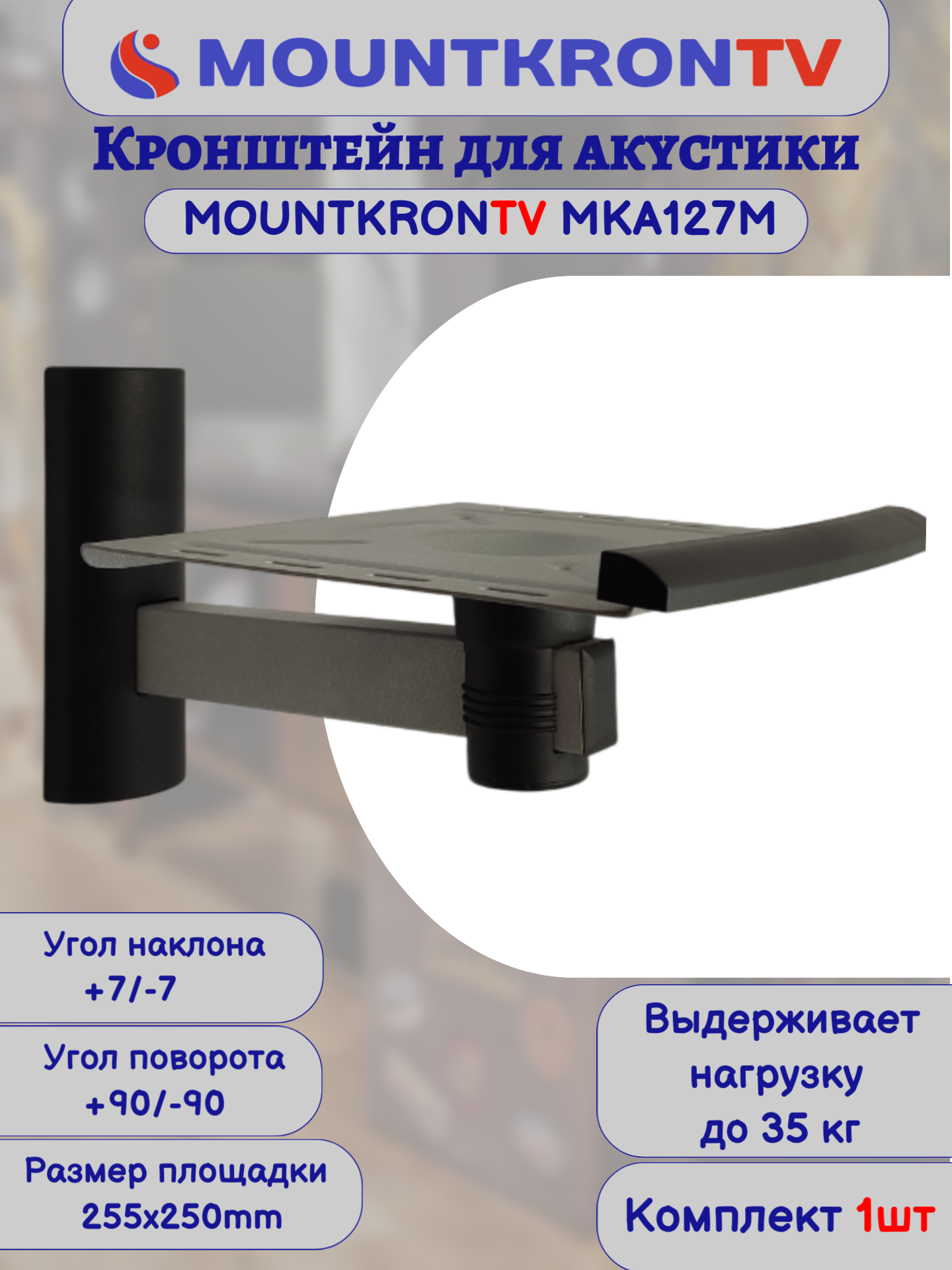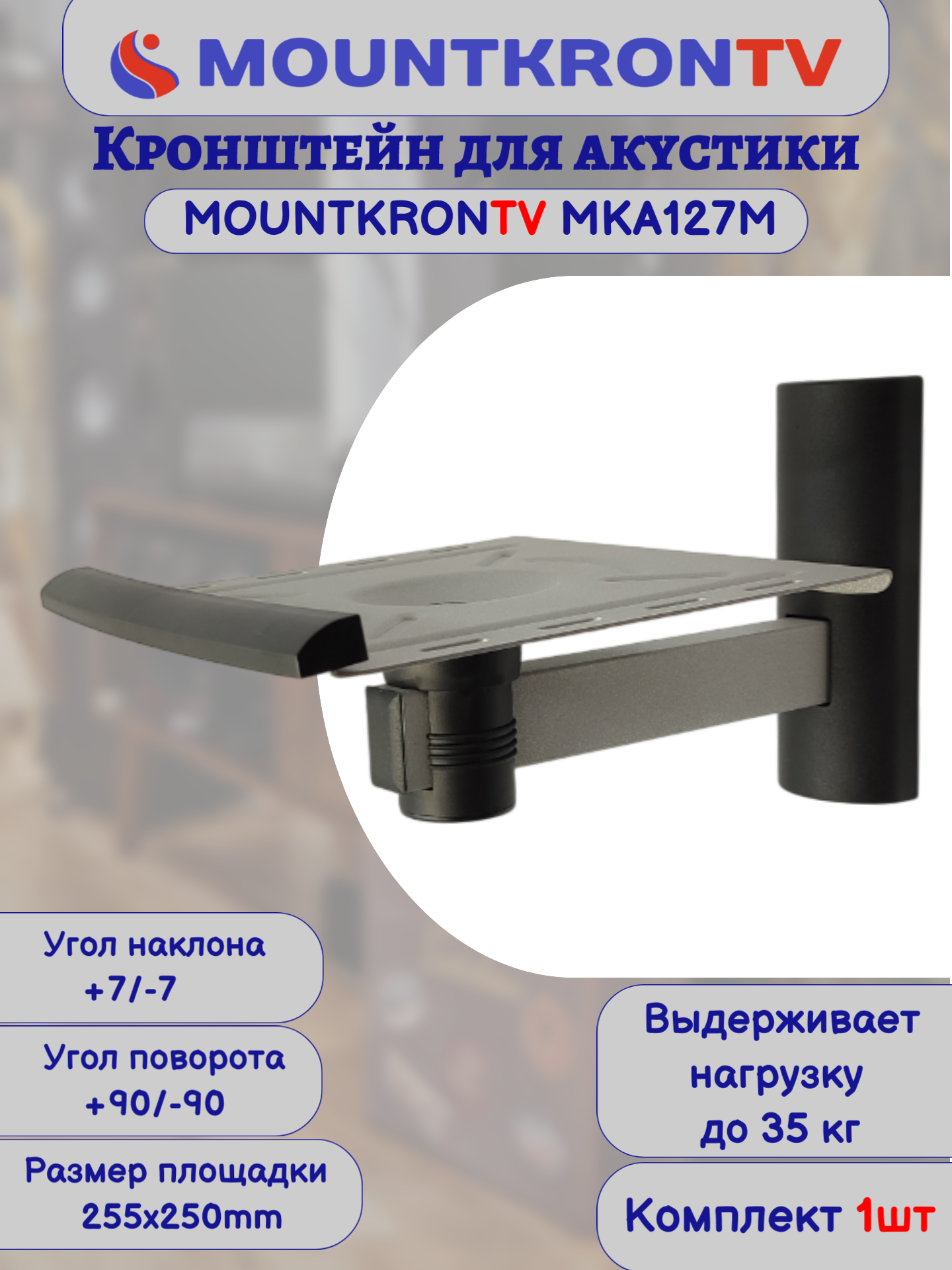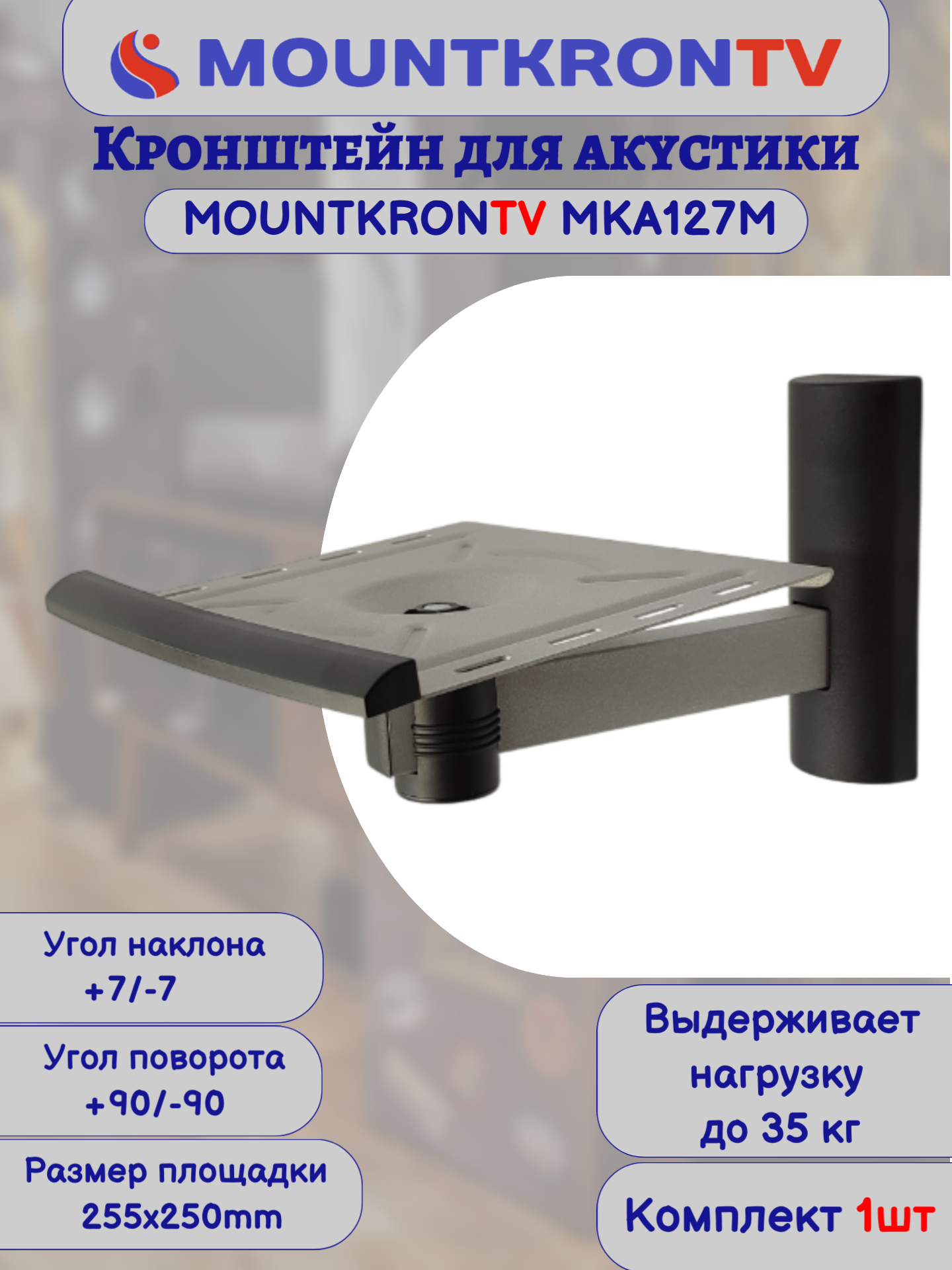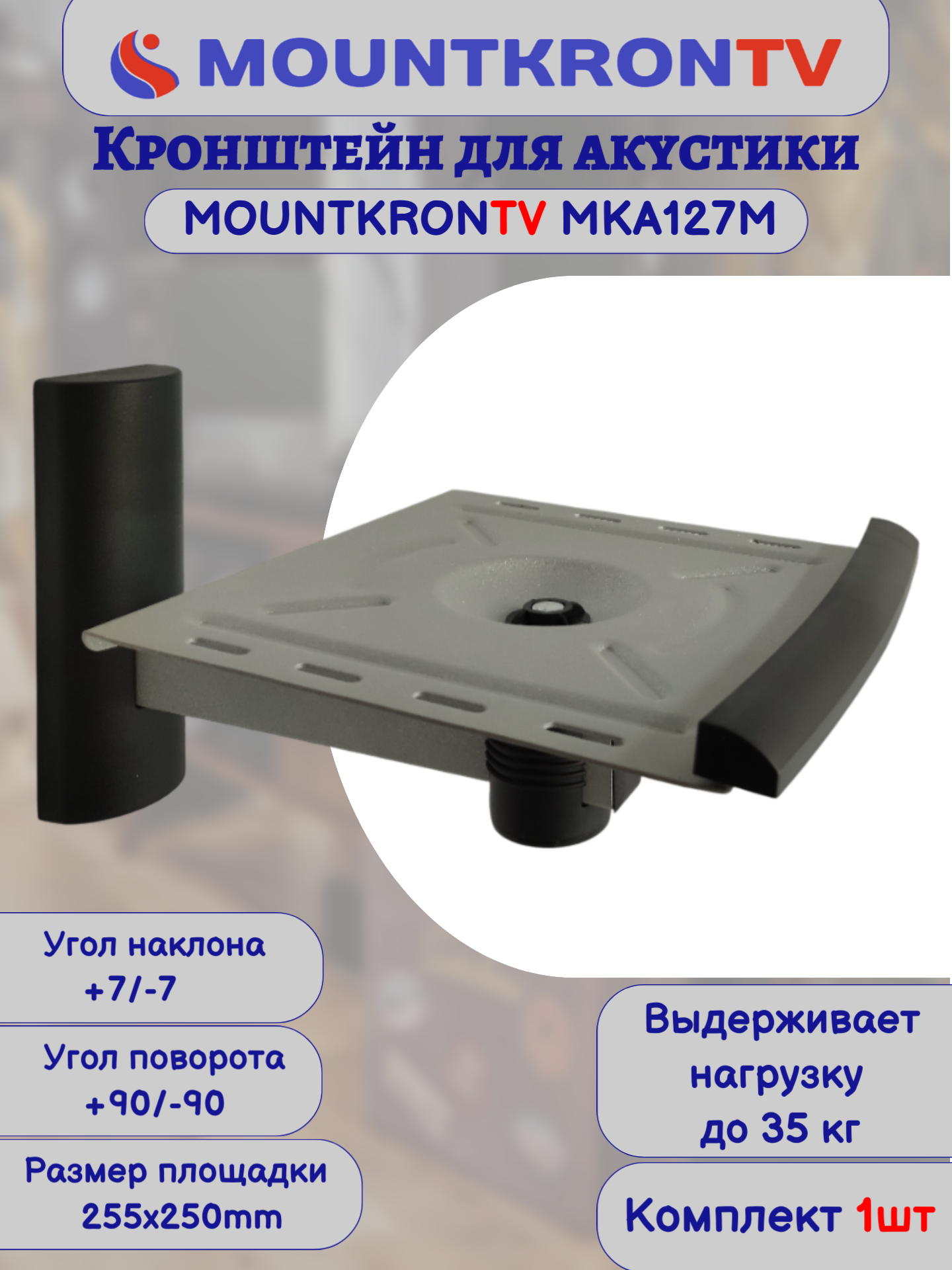 Кронштейн для акустики MOUNTKRONTV MKA127M серый металлик, на стену, наклонно-поворотный интересное: