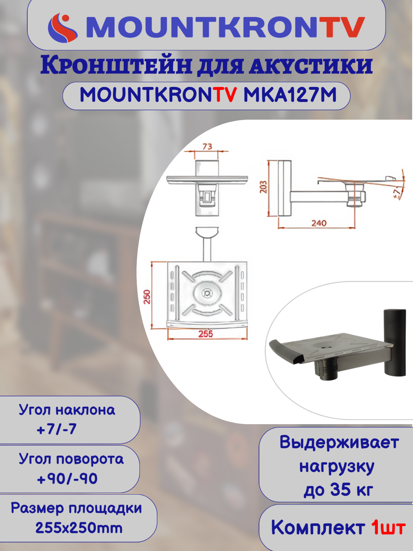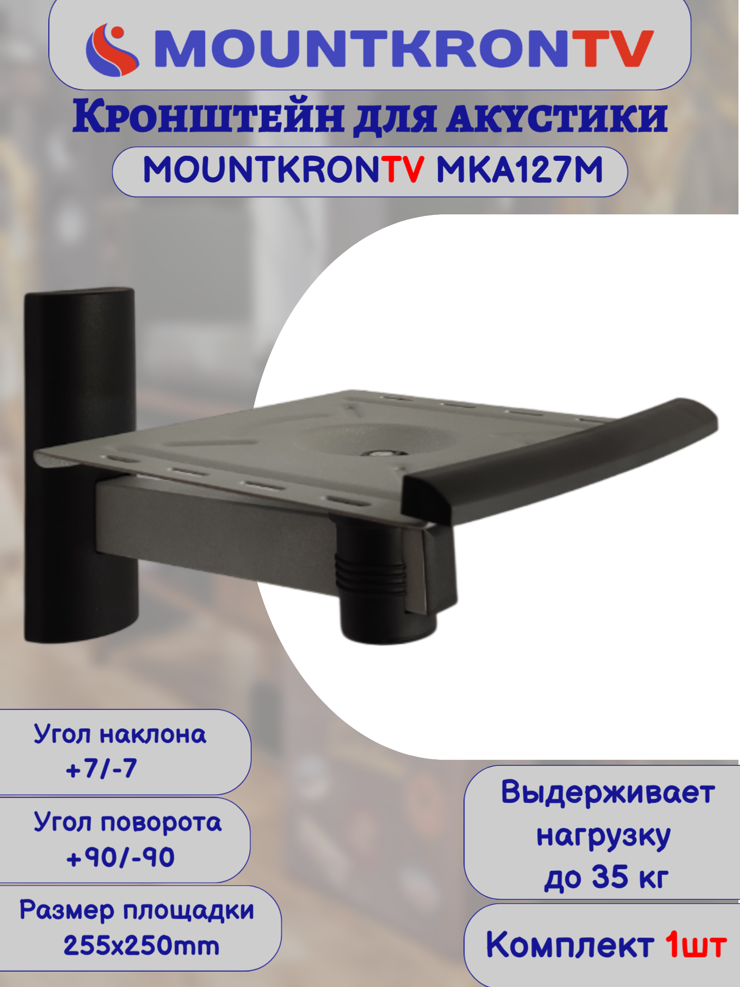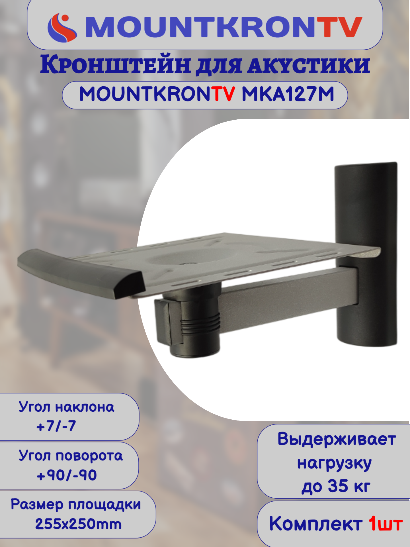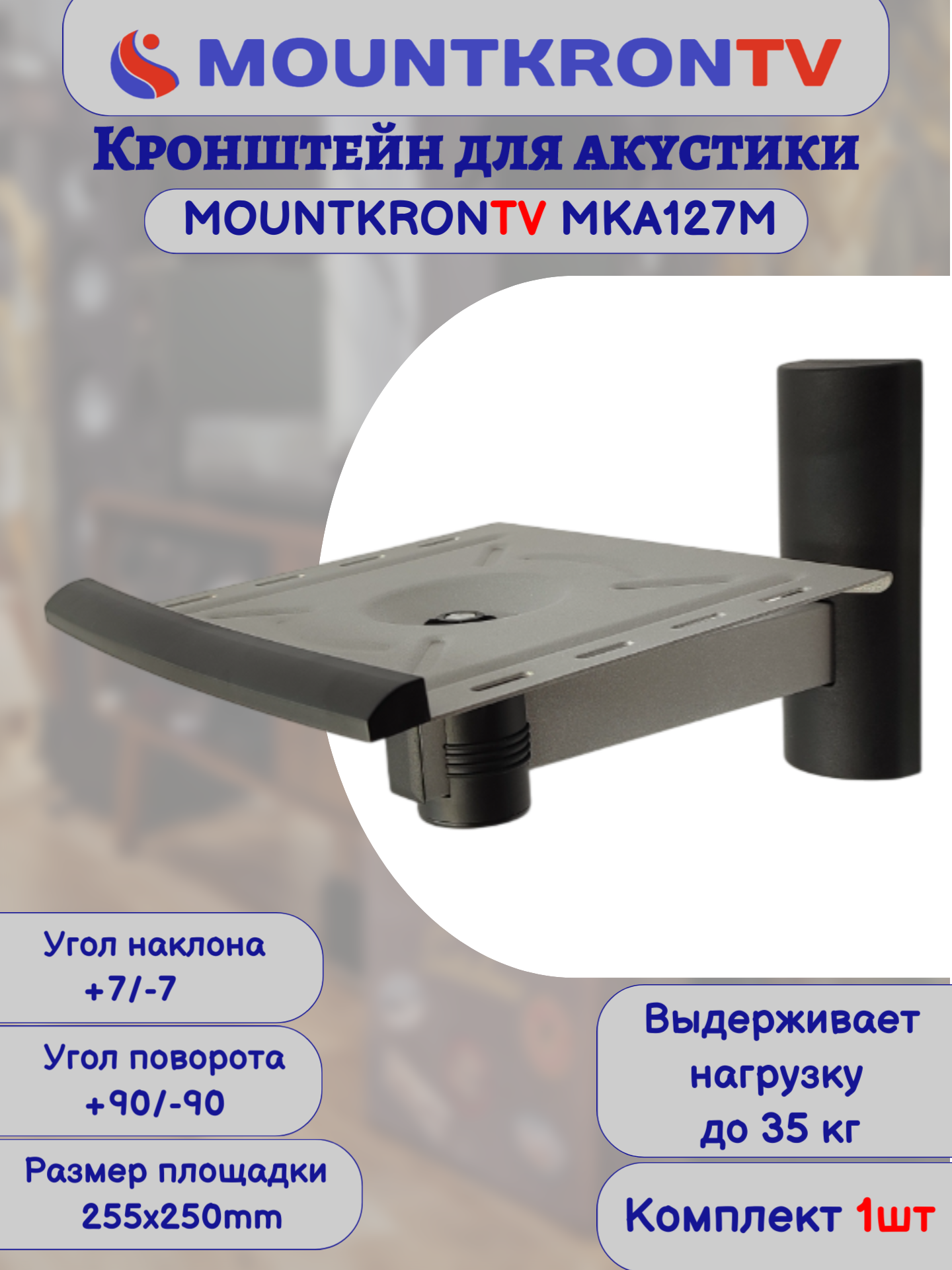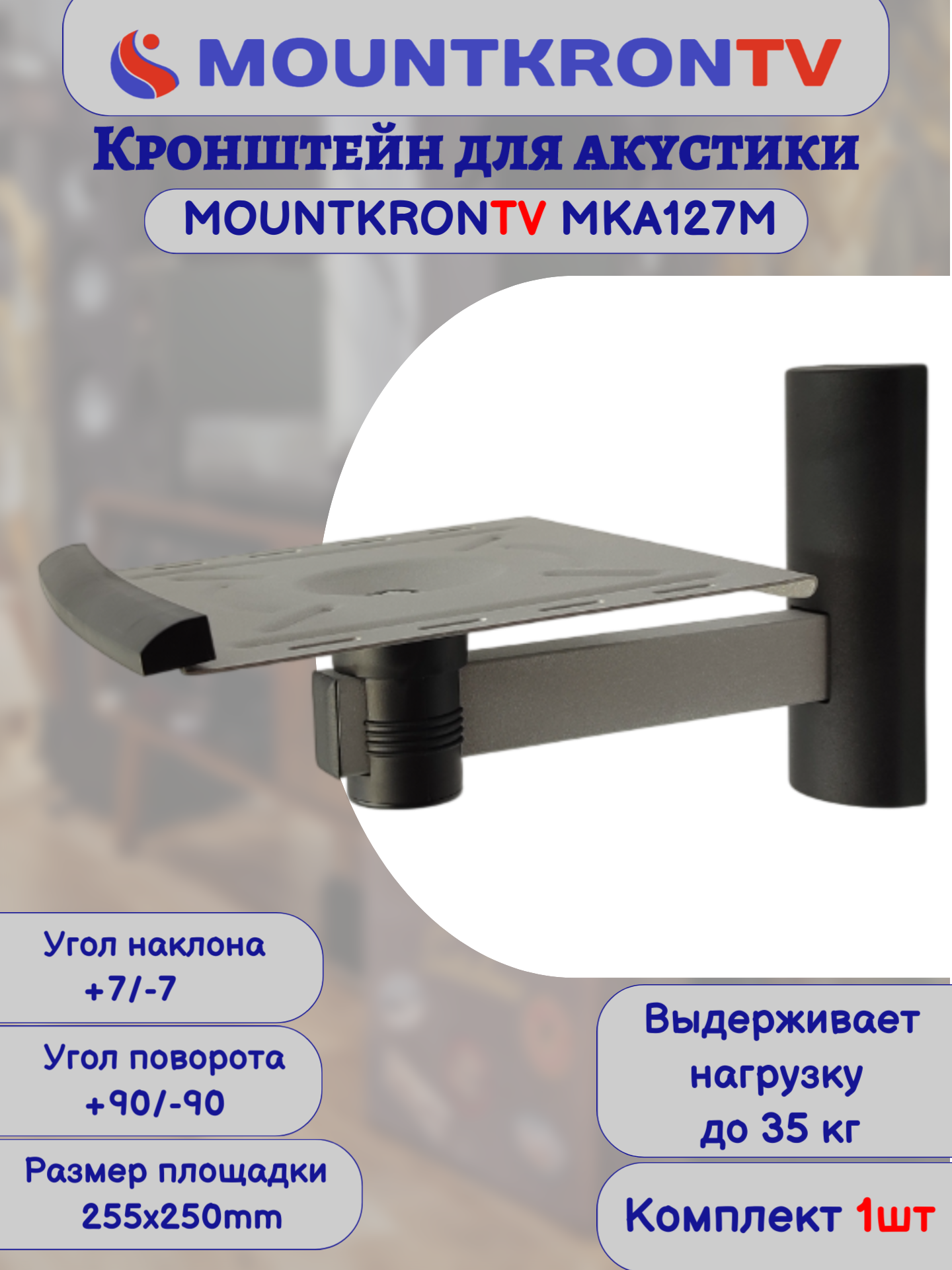 Кронштейн для акустики MOUNTKRONTV MKA127M серый металлик, на стену, наклонно-поворотный интересное: