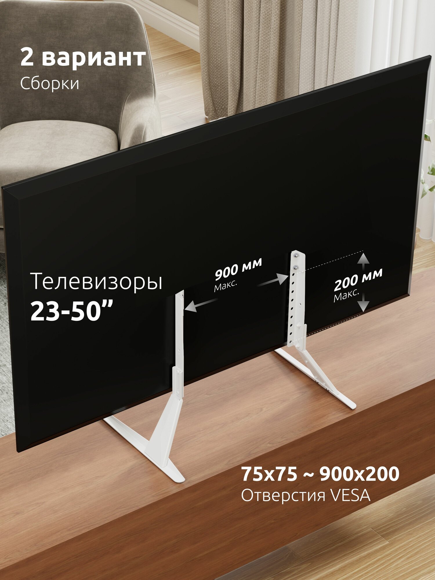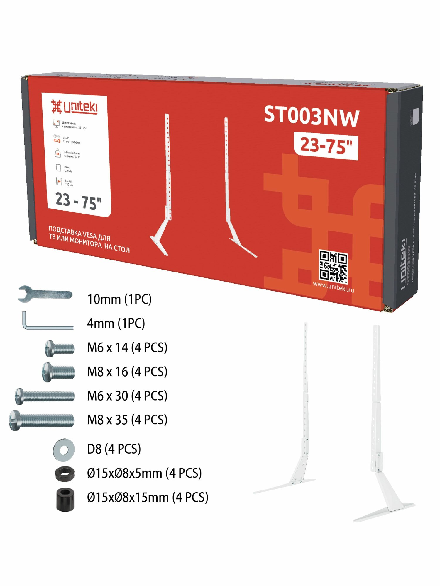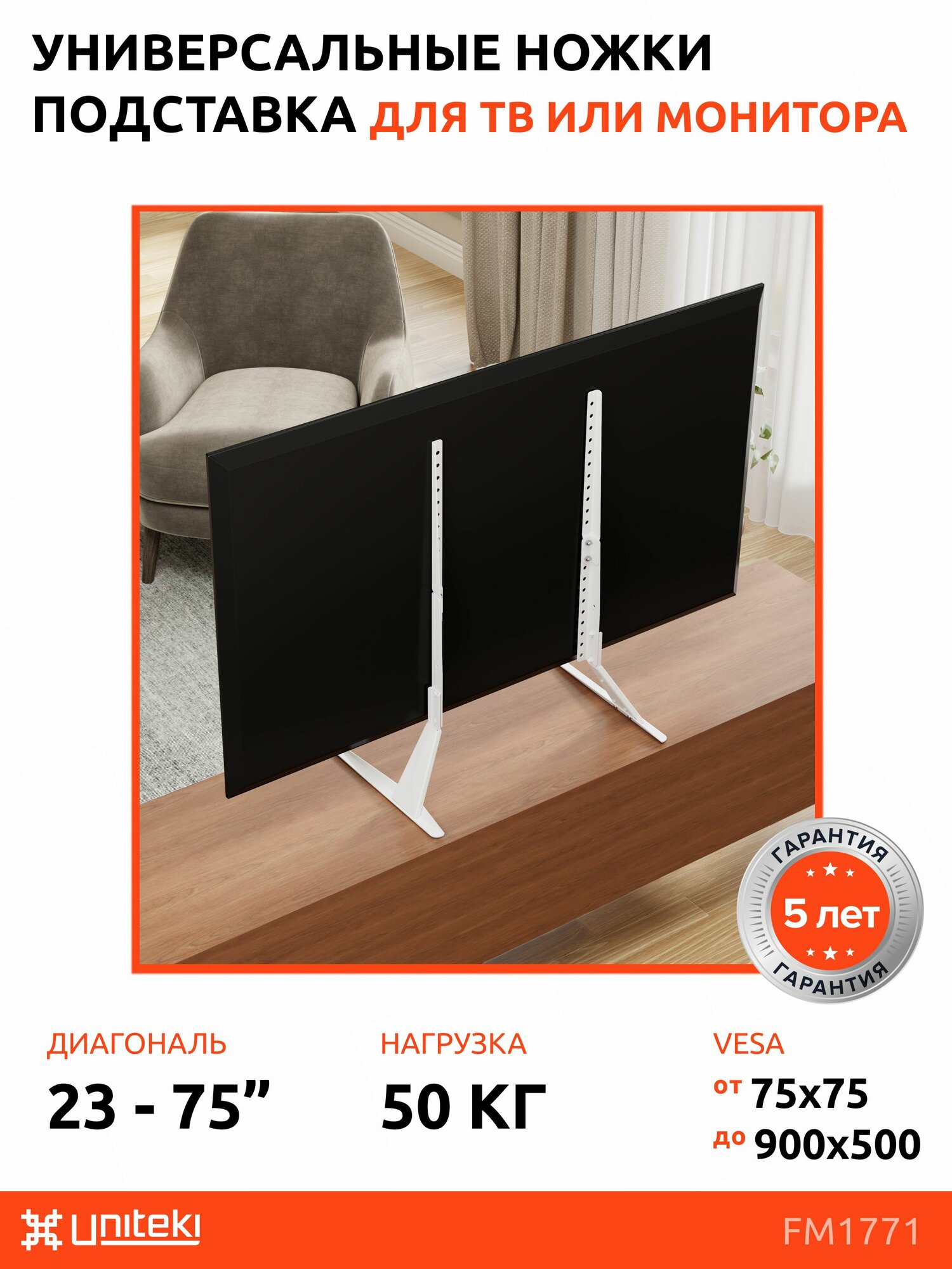 Подставка для телевизора 23-75 дюймов на стол UNITEKI ST003NW, крепление для монитора, стойка настольная для Тв до 40 кг. интересное: