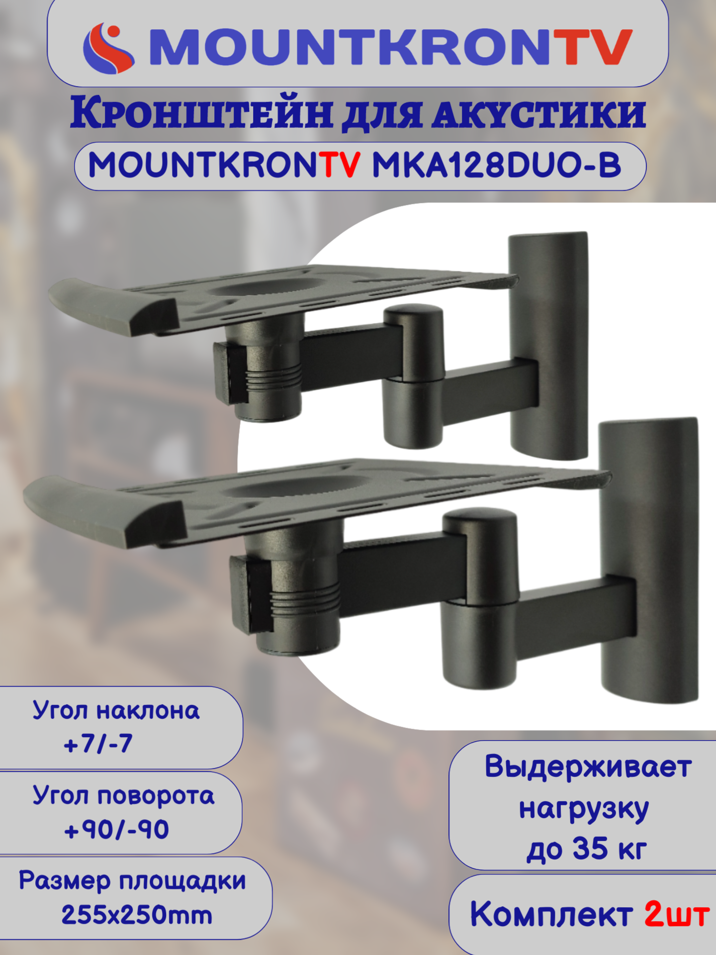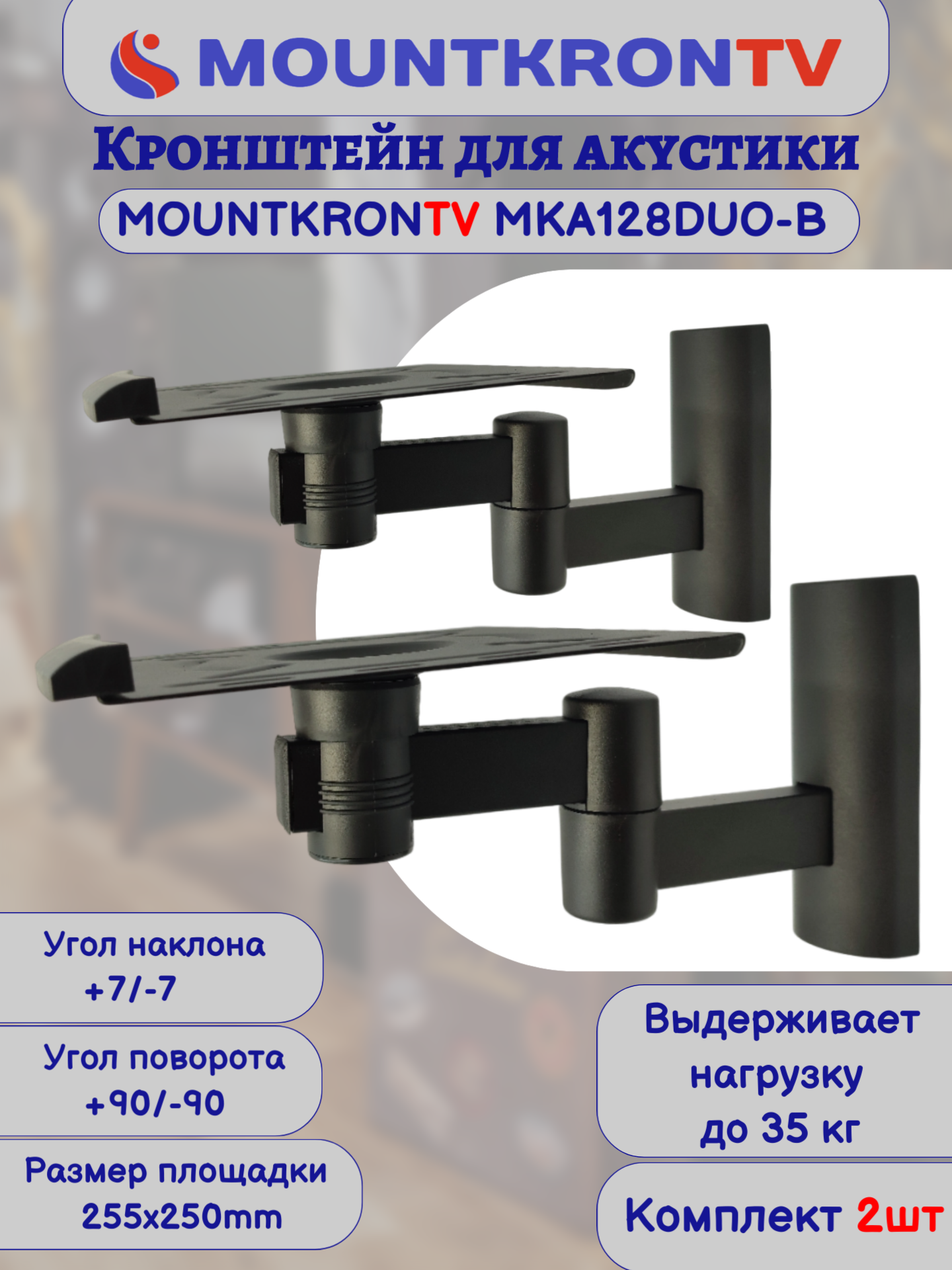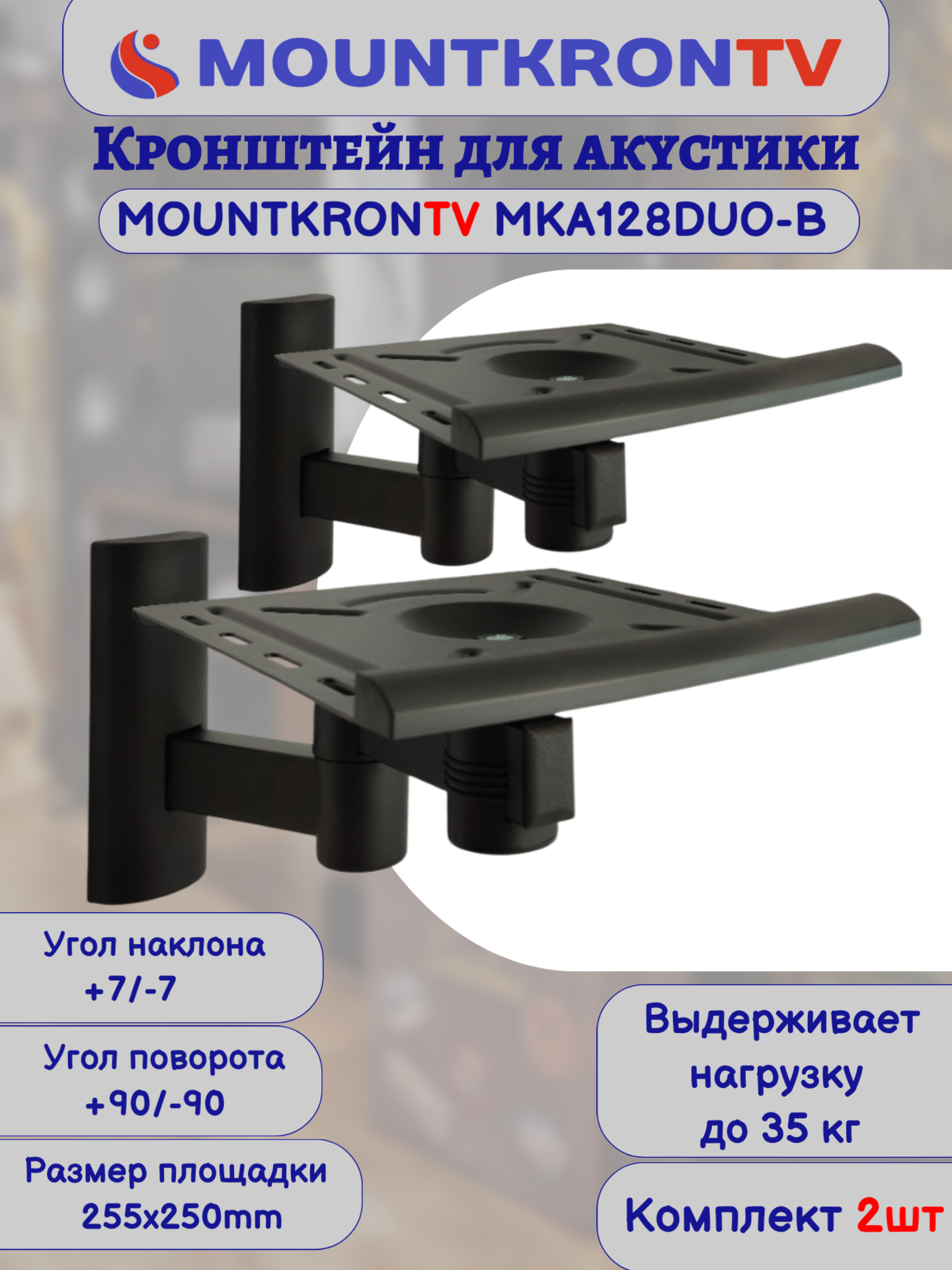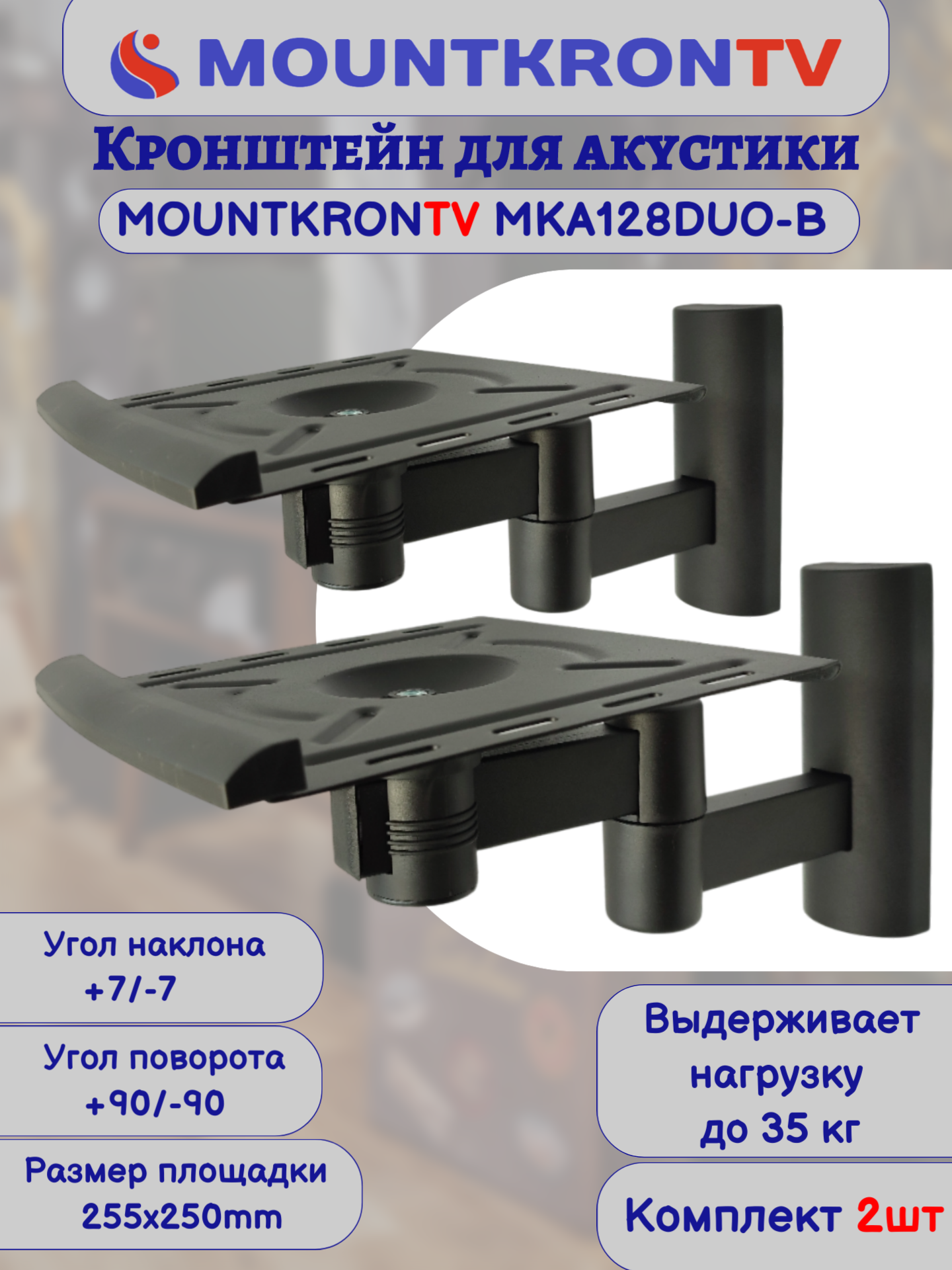 Кронштейн для акустики MOUNTKRONTV MKA128DUO-B черный, комплект 2шт, на стену, наклонно-поворотный интересное: