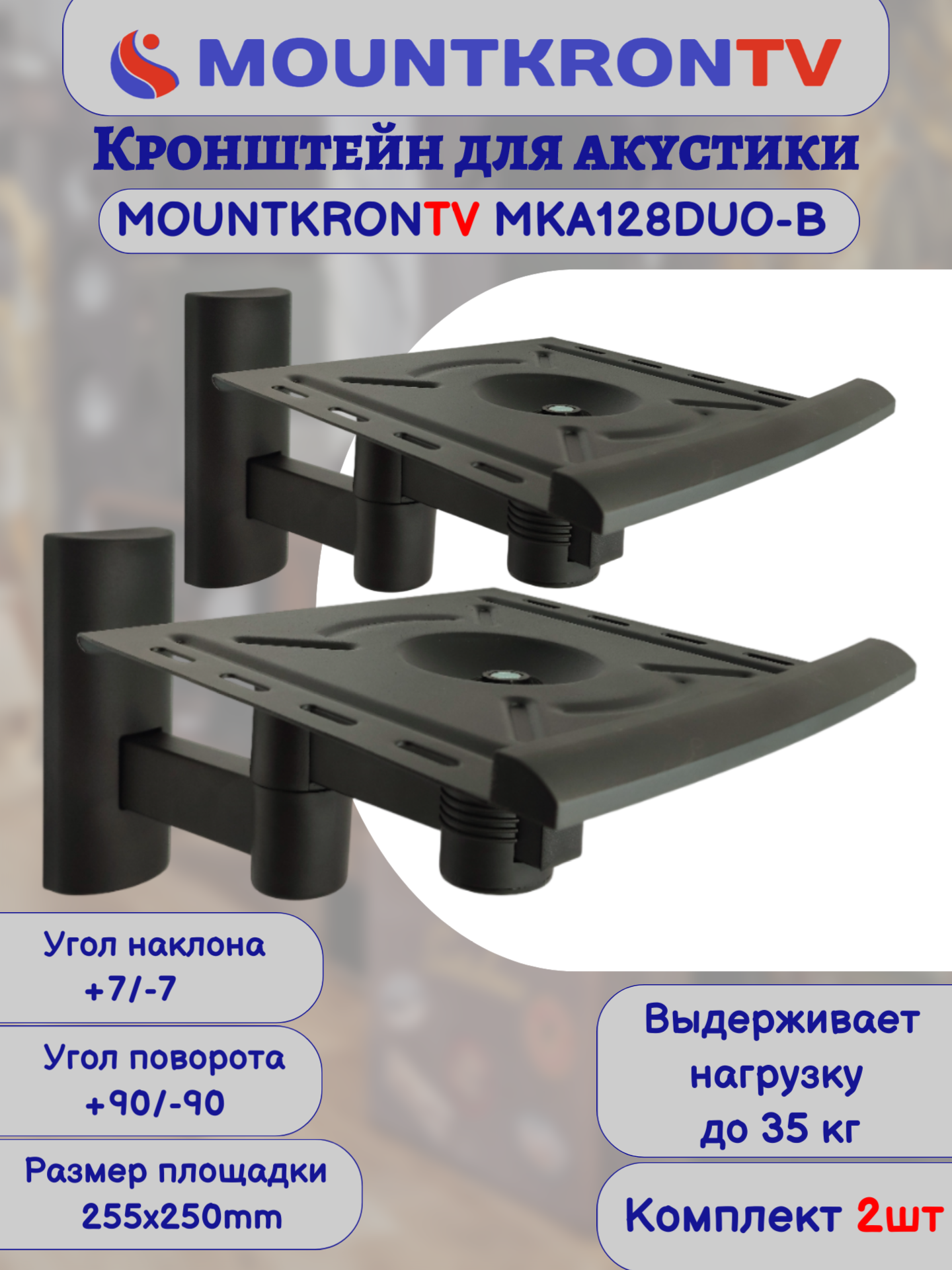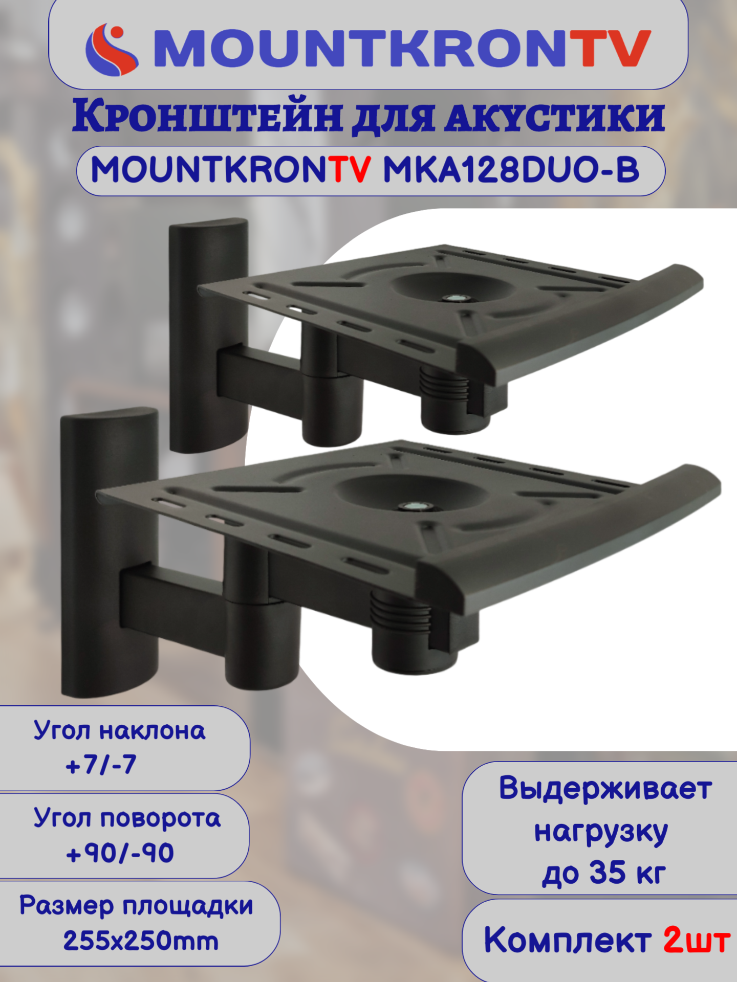Купить Кронштейн для акустики MOUNTKRONTV MKA128DUO-B черный, комплект 2шт, на стену, наклонно-поворотный